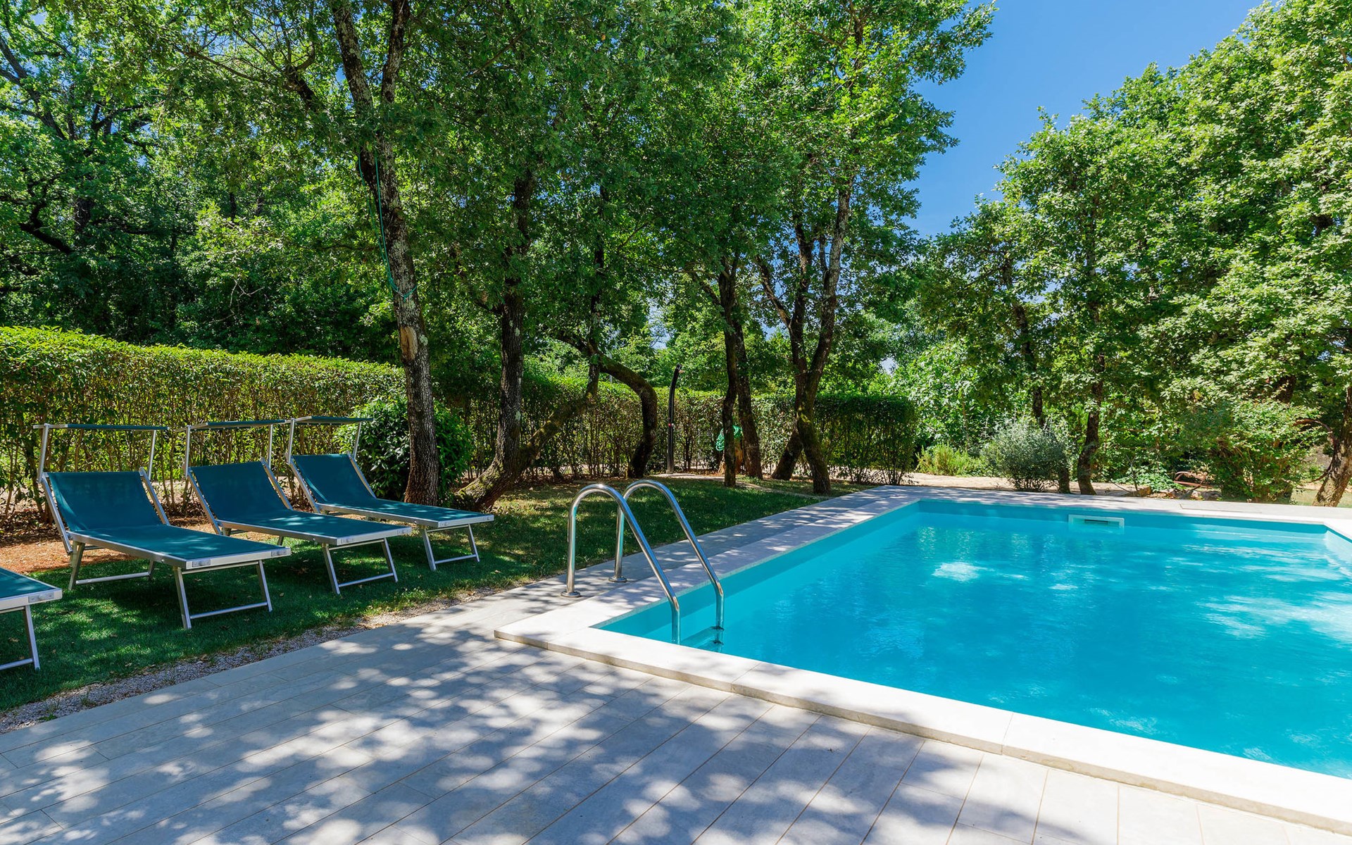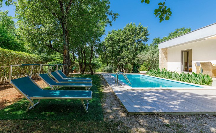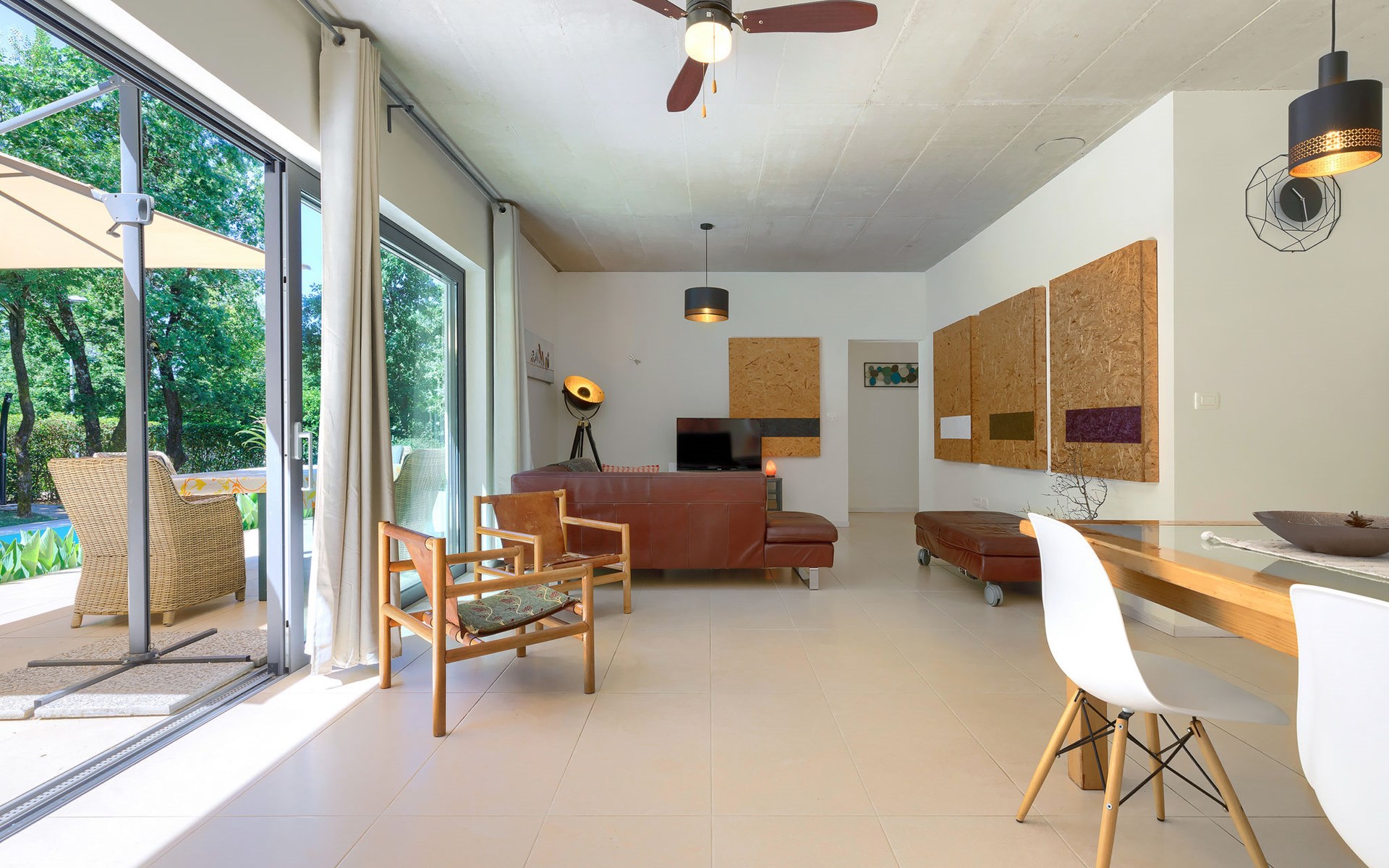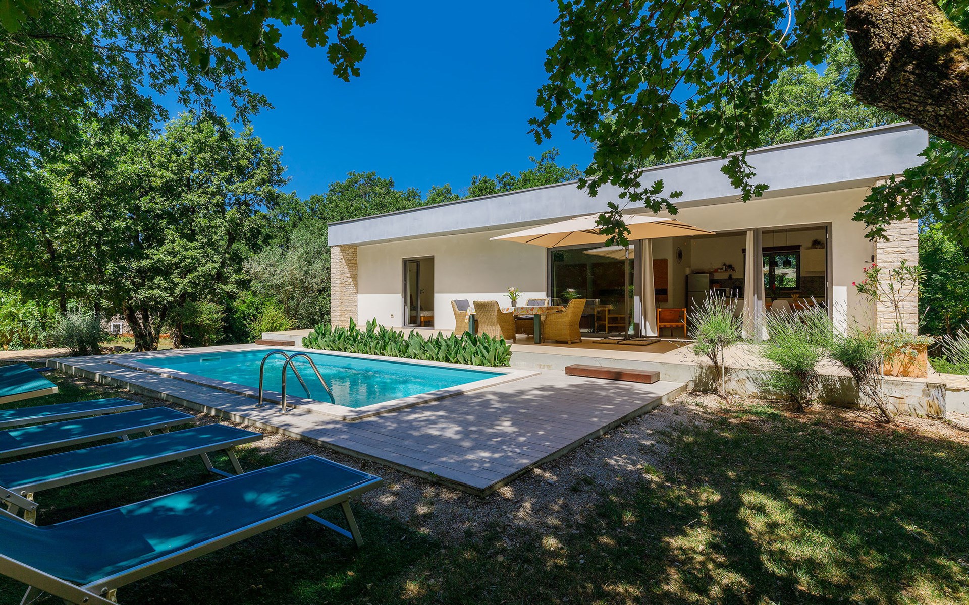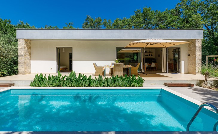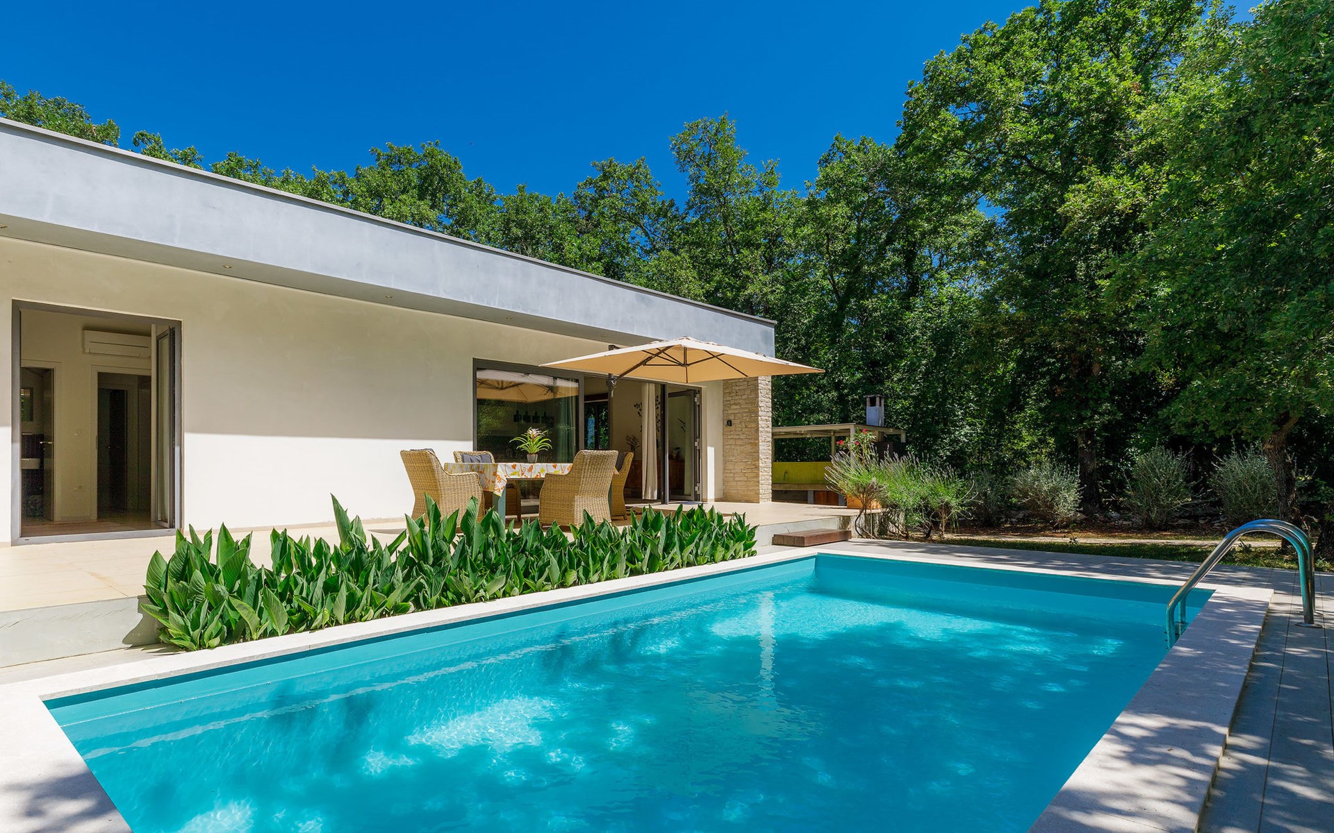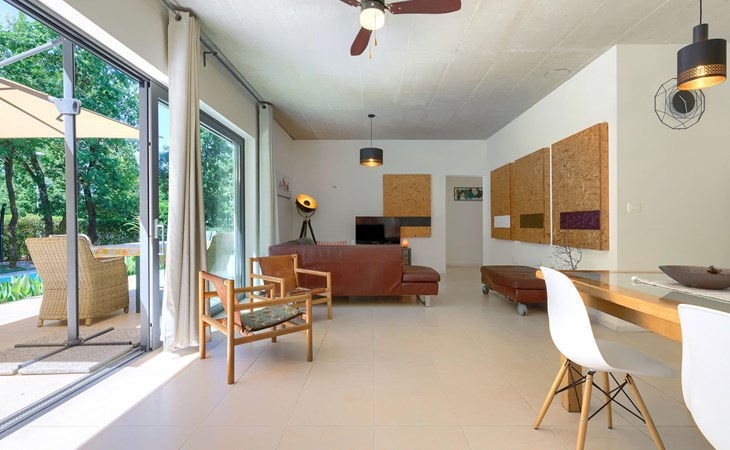 Einfamilienhaus "Villa Frleti", auf 2 Stockwerken. Im Weiler Frleti, 9 km vom Zentrum von Umag, ruhige, sonnige Lage, 4 km vom Meer, in einer Sackgasse, im Grünen. Zur Alleinbenutzung: Grundstück 1'700 m2 mit Bäumen, Schwimmbad eckig (7 x 3 m, 140 cm tief, saisonale Verfügbarkeit: 01.Mai. - 30.Sep.). Aussendusche, Terrasse, Grill. Im Hause: Internetzugang, Billard, Tischfussball, Waschmaschine. Parkplatz (für 2 Autos) beim Haus auf dem Grundstück. Einkaufsgeschäft 5 km, Restaurant 3 km, Bushaltestelle 7 km, Bahnstation 35 km, Kieselstrand 5.5 km, Felsstrand 5.5 km. Wanderwege ab Haus, Radweg 100 m. Der Besitzer akzeptiert keine Jugendgruppen. Bitte beachten: Flugplatz 80 km vom Haus. Das Schwimmbad wird mit Solarheizung betrieben.