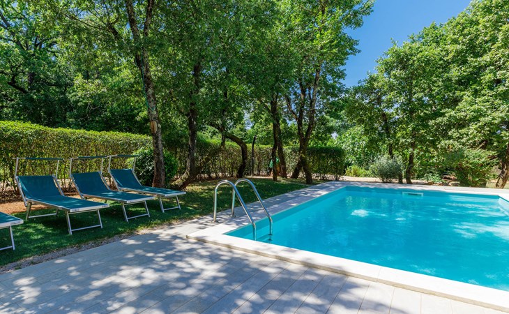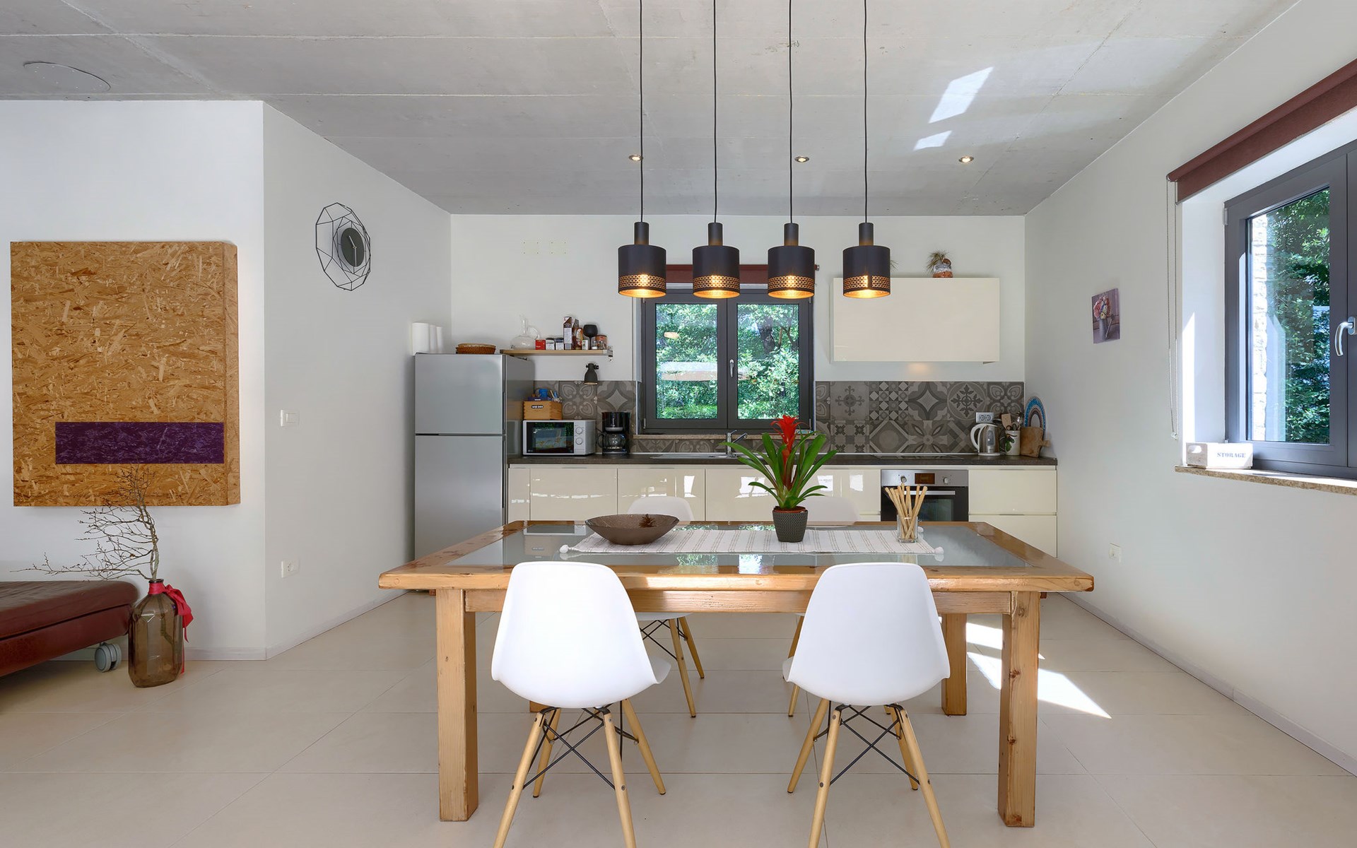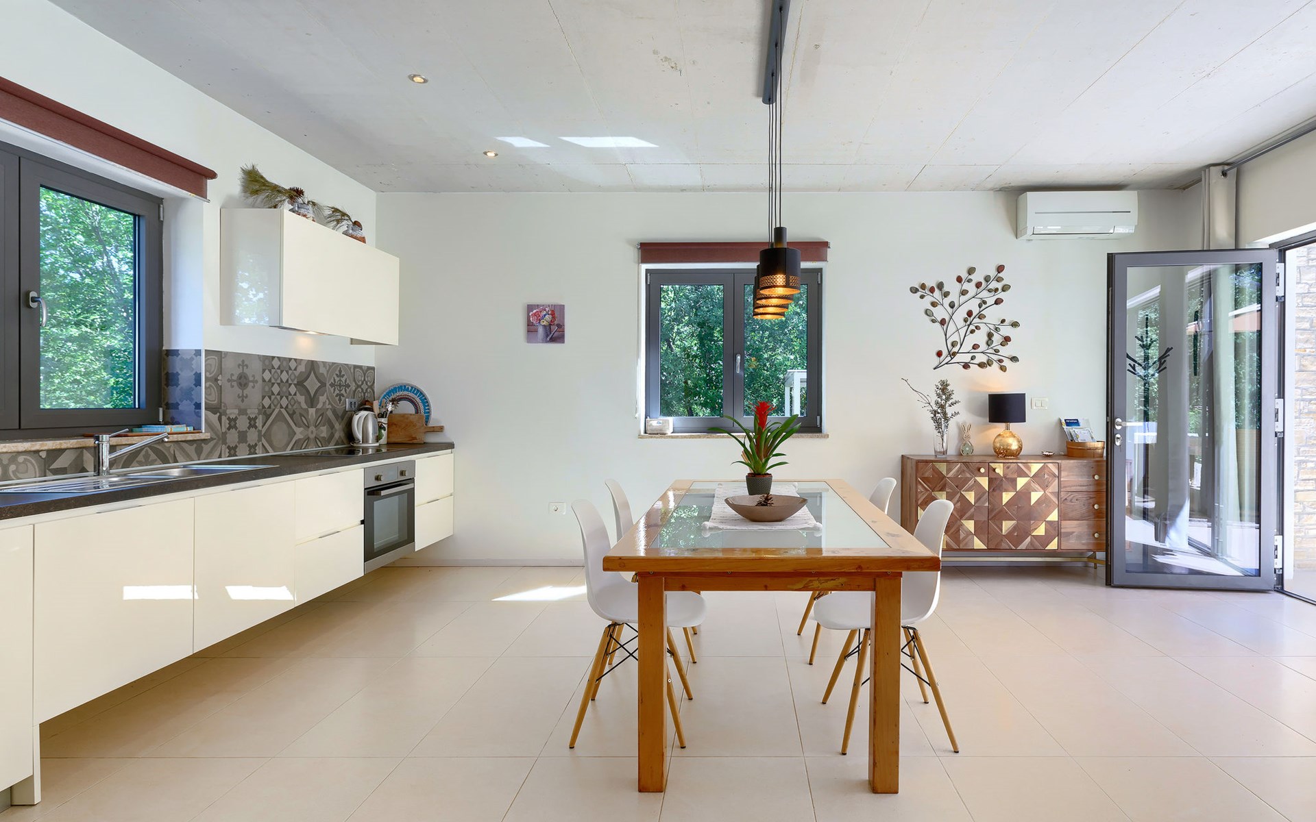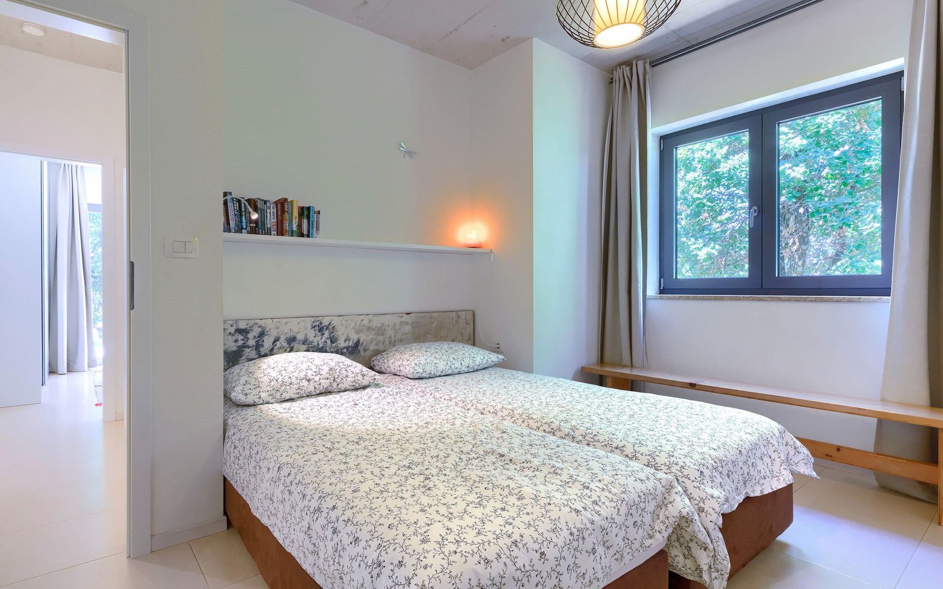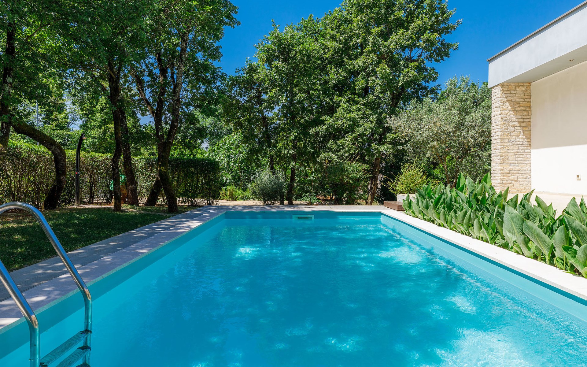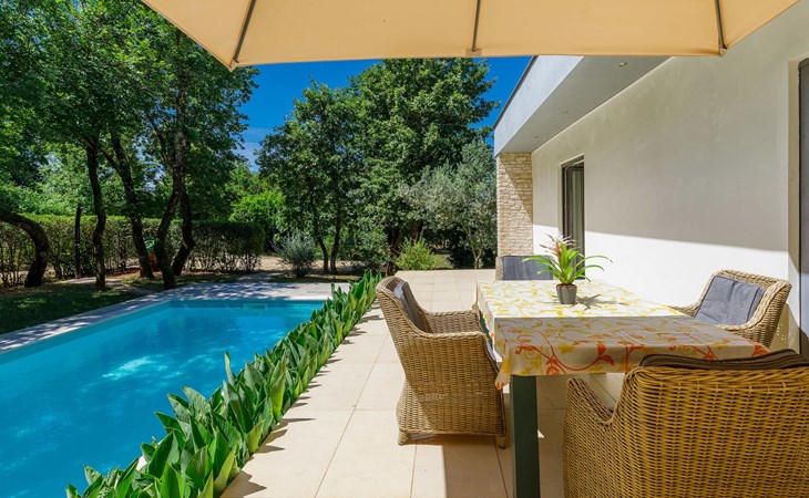 Einfamilienhaus "Villa Frleti", auf 2 Stockwerken. Im Weiler Frleti, 9 km vom Zentrum von Umag, ruhige, sonnige Lage, 4 km vom Meer, in einer Sackgasse, im Grünen. Zur Alleinbenutzung: Grundstück 1'700 m2 mit Bäumen, Schwimmbad eckig (7 x 3 m, 140 cm tief, saisonale Verfügbarkeit: 01.Mai. - 30.Sep.). Aussendusche, Terrasse, Grill. Im Hause: Internetzugang, Billard, Tischfussball, Waschmaschine. Parkplatz (für 2 Autos) beim Haus auf dem Grundstück. Einkaufsgeschäft 5 km, Restaurant 3 km, Bushaltestelle 7 km, Bahnstation 35 km, Kieselstrand 5.5 km, Felsstrand 5.5 km. Wanderwege ab Haus, Radweg 100 m. Der Besitzer akzeptiert keine Jugendgruppen. Bitte beachten: Flugplatz 80 km vom Haus. Das Schwimmbad wird mit Solarheizung betrieben.