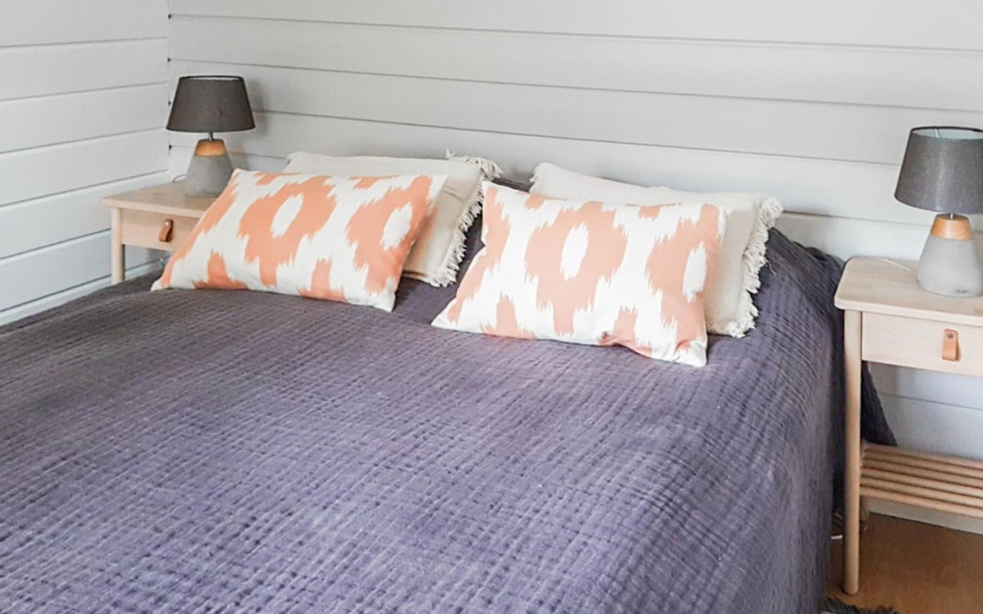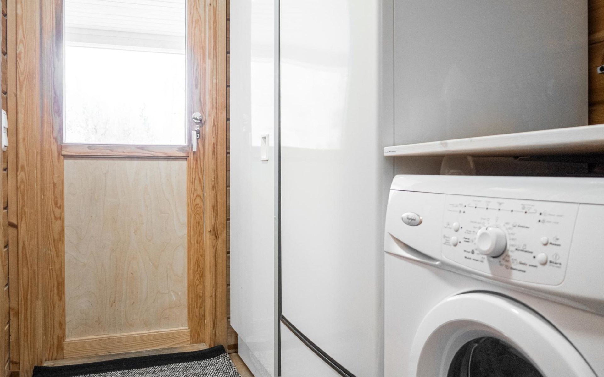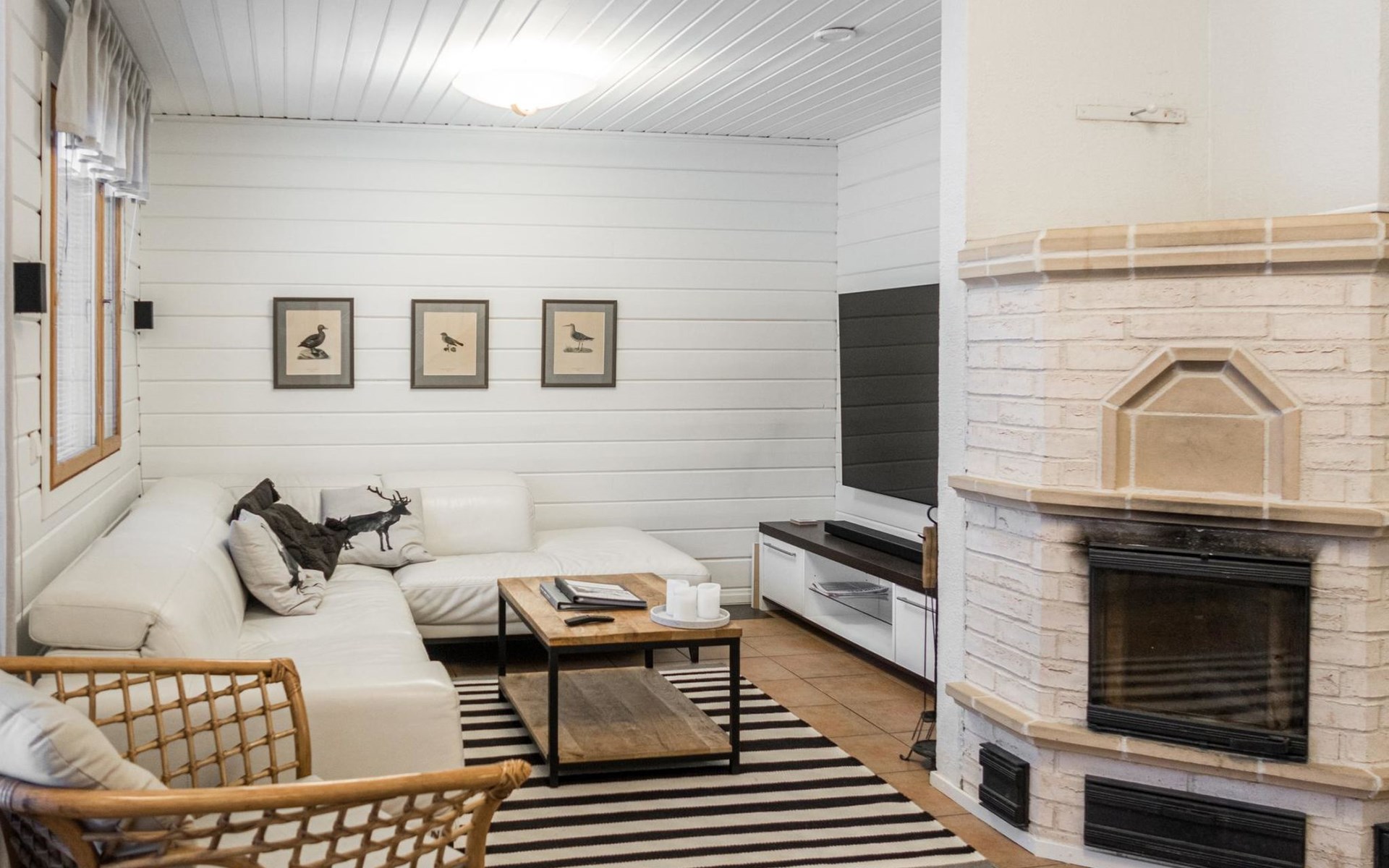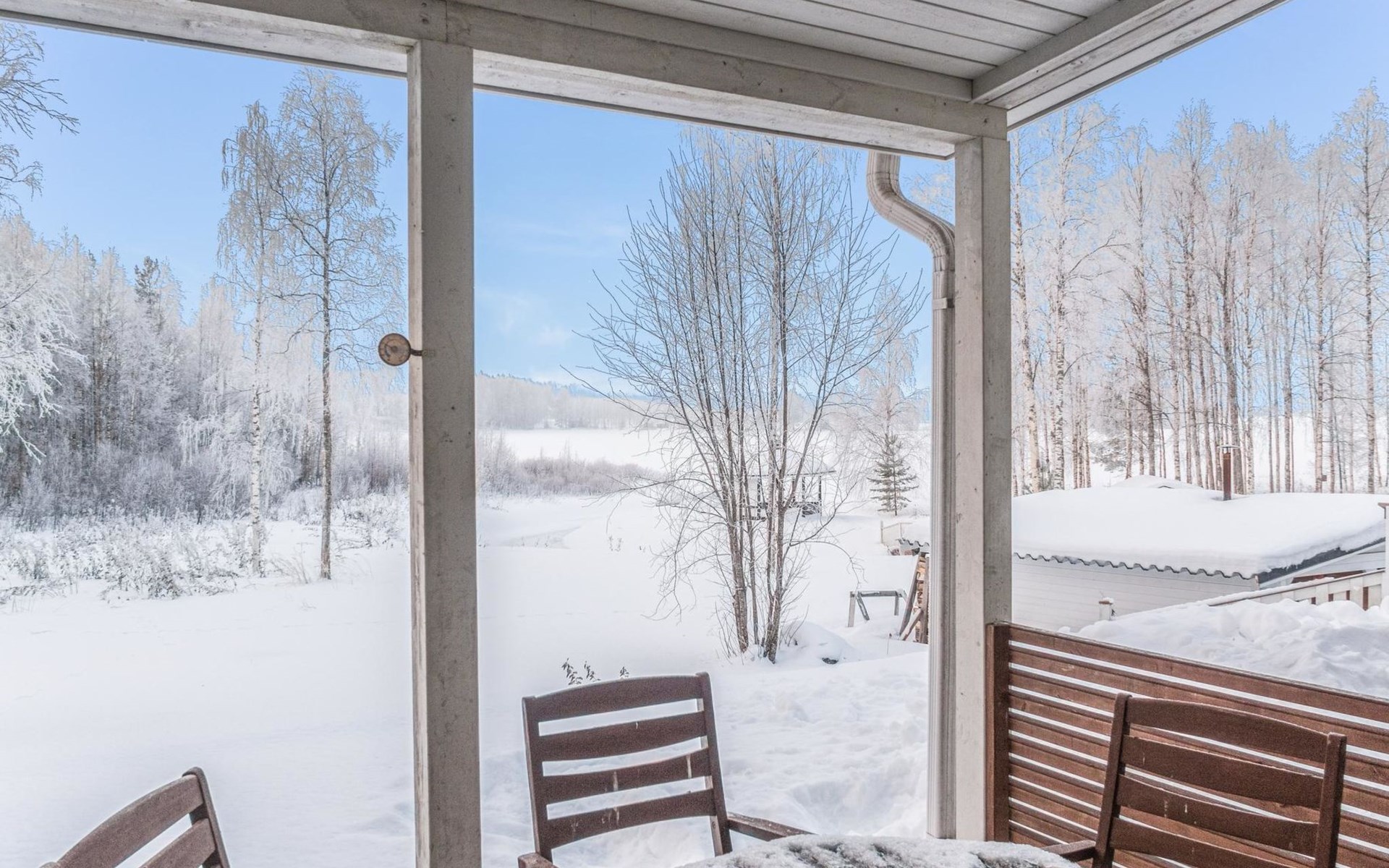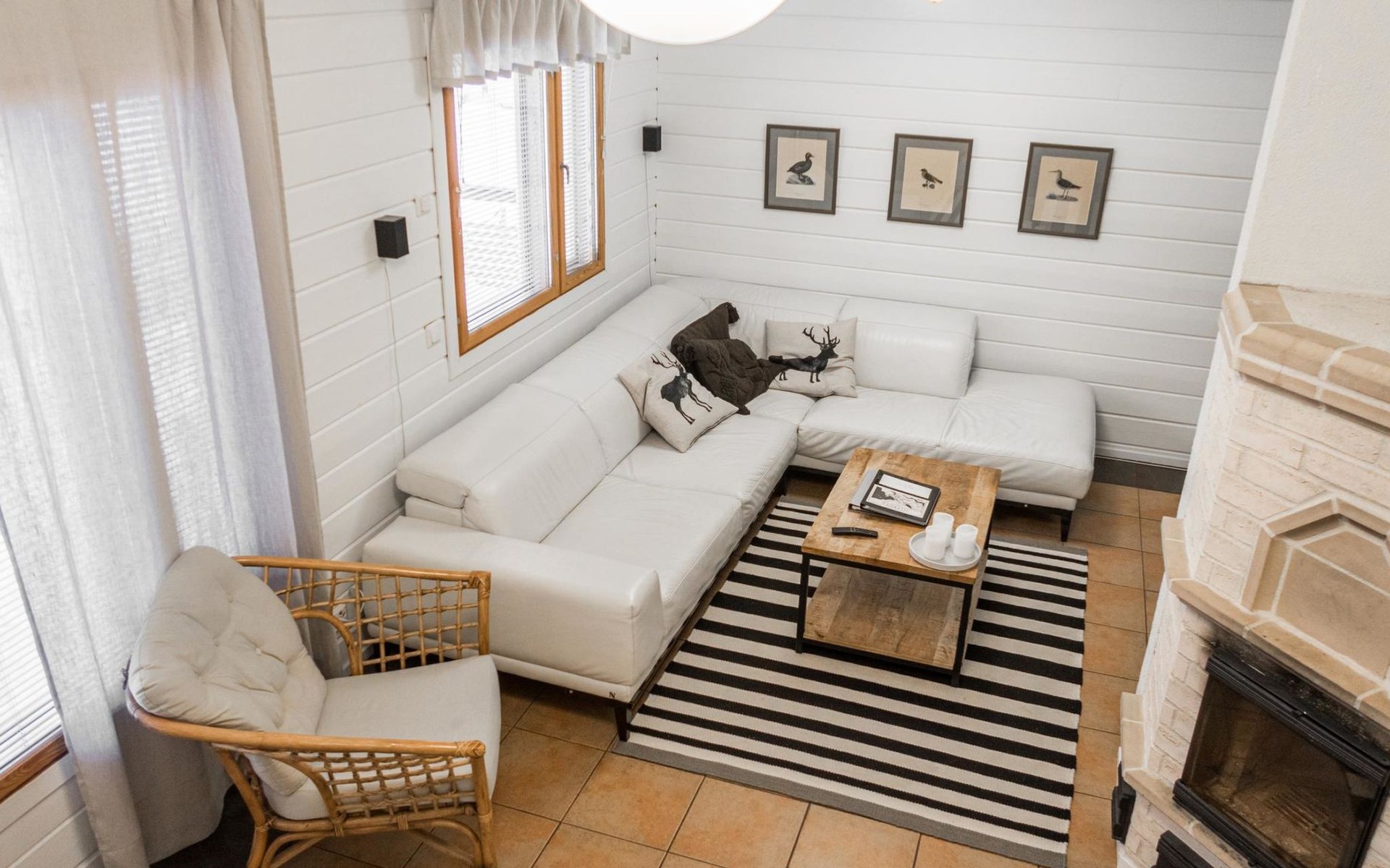 RUSKA is one half of a semi-detached house built in 2002 with a spacious living room kitchen with a dining set for 7 people, two bedrooms, one of which is located downstairs (double bed) and the other upstairs with separate beds for 2. There is more accommodation space in the spacious loft, which has beds for a total of 3 (the double bed in the loft can be converted into separate beds if necessary). Sauna with electric stove (stone tower), shower and separate toilet. Access from the laundry room / utility room to the covered private terrace in the backyard with a view of the lake and the direction of the evening sun, on the terrace garden furniture and an electric grill can be used in the summer, there is also access to the terrace from the living room.