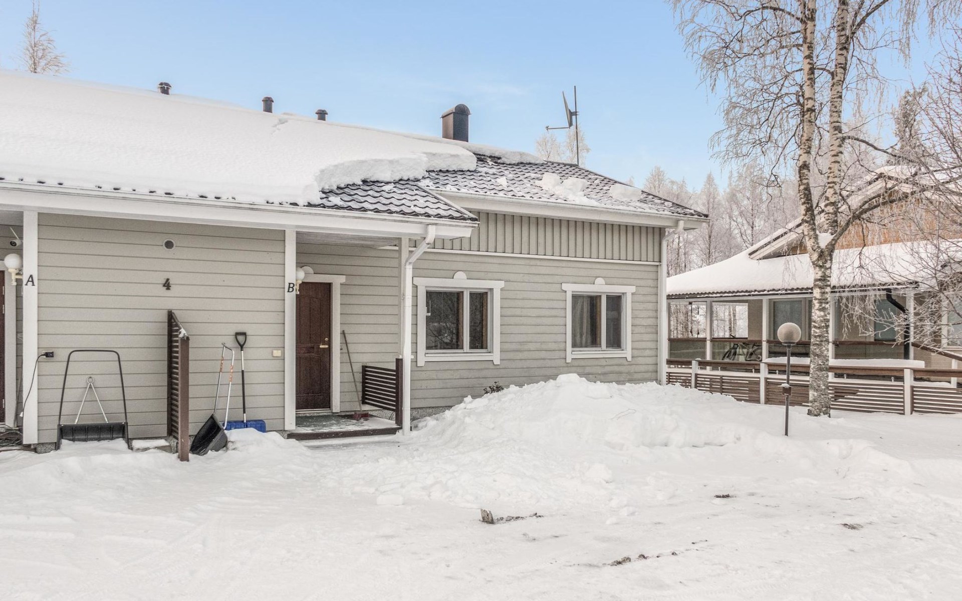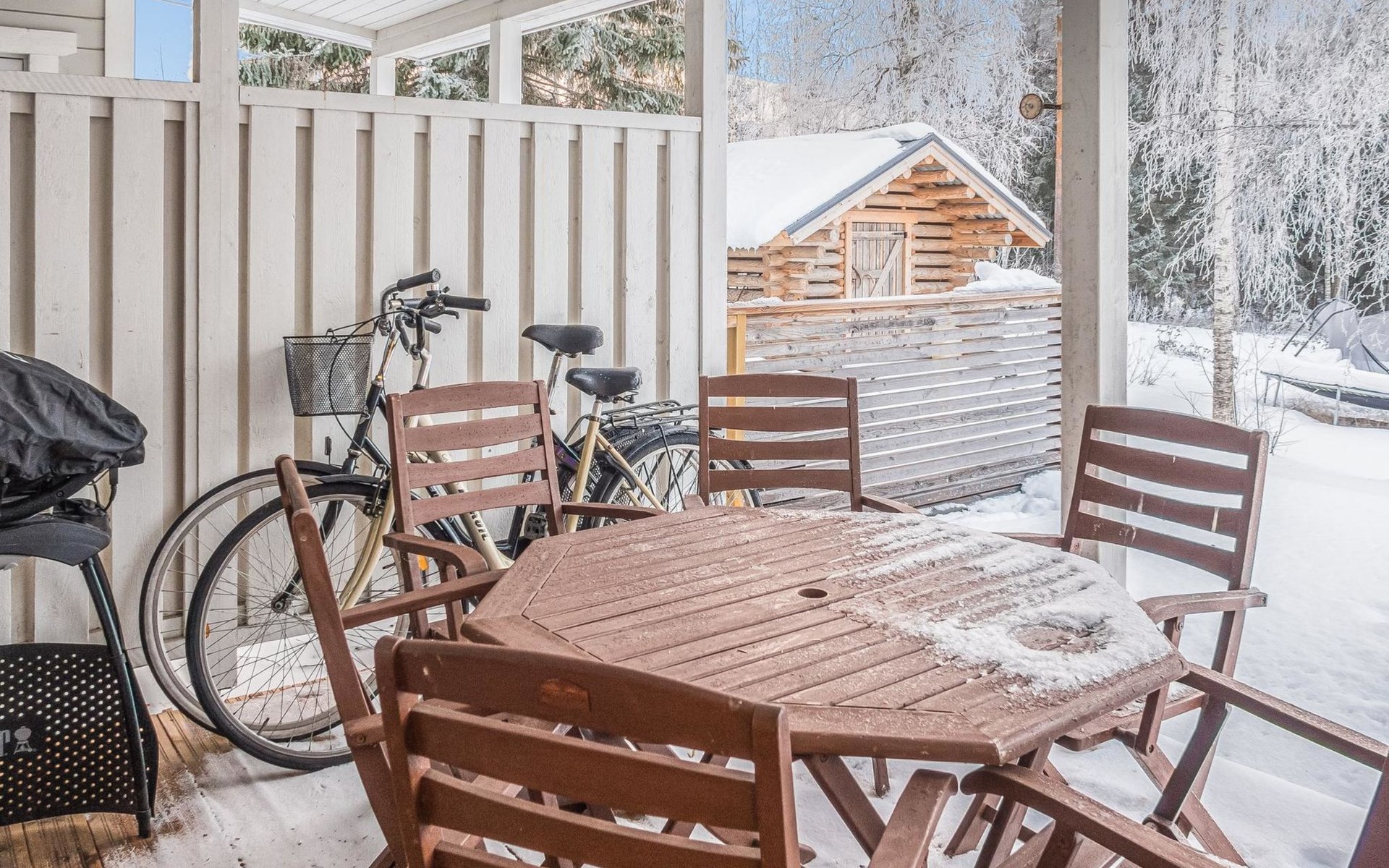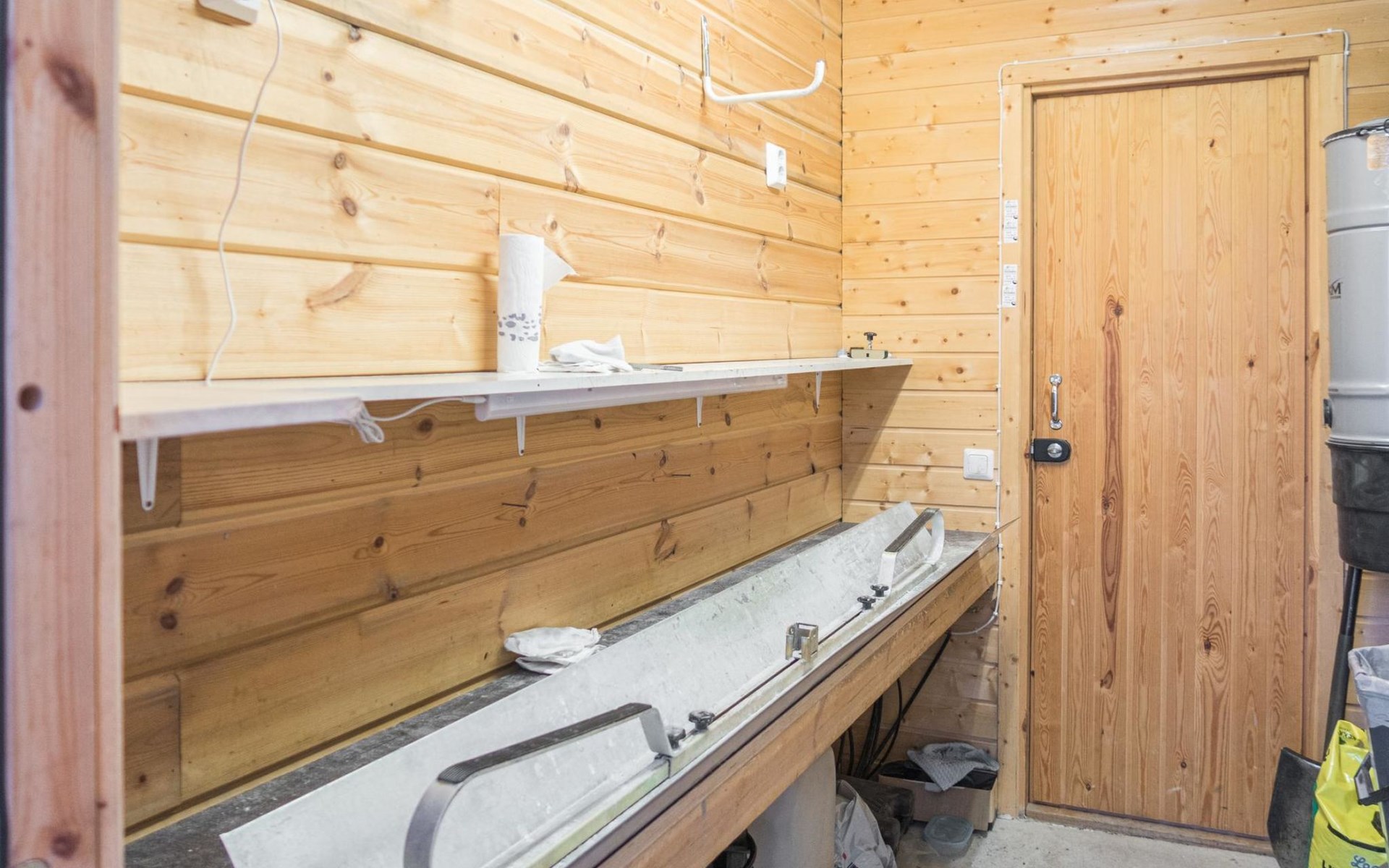 In the outdoor storage room, shared with the neighboring apartment, a shared ski maintenance room with cross-country ski lubrication rack and electricity.