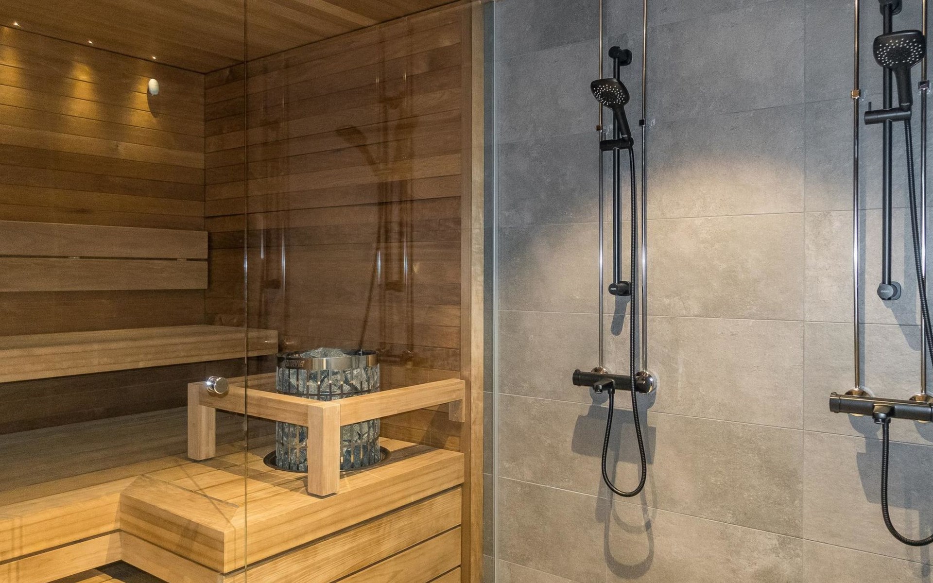 For relaxation and indulgence, there's a sauna and a spacious bathroom where you can unwind after a day of activities. Additionally, the apartment boasts its own balcony with stunning views.