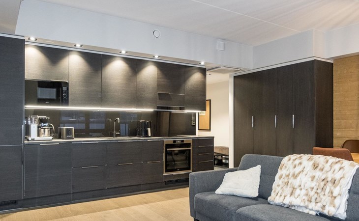 Illuminated ski trails, slope services, nearby equipment rentals, spa, entertainment services, and restaurants are within easy reach. This makes Levi Kahnu an excellent choice for those arriving by public transport as well.