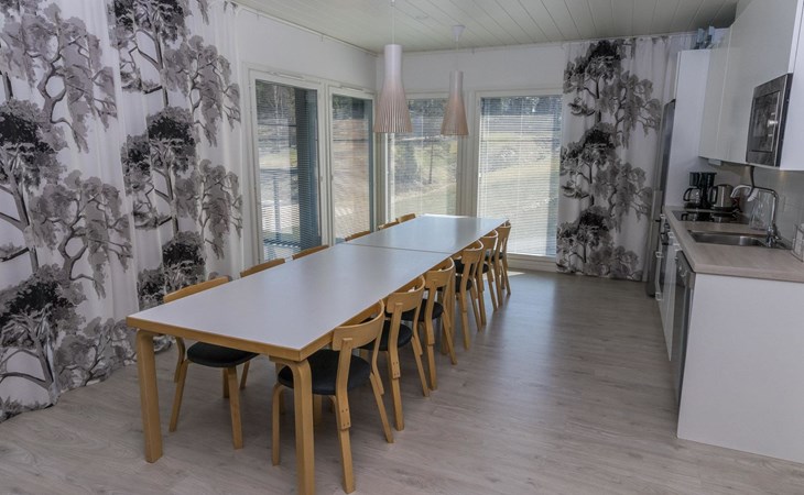 Villa Kallio is not just a cabin – it is an experience combining high-quality accommodation, peaceful nature, and versatile sports and wellness services. The included KampusPass ensures there is plenty to do — all year round! This comfortable, modern log villa is located in Kisakallio by Lake Lohjanjärvi, less than an hour's drive from Helsinki. Built in 2015, the 119 m² Villa Kallio offers modern, spacious surroundings ideal for relaxation or active group activities, surrounded by stunning natural scenery. Explore the beautiful ancient forests of Karnaisten Korpi Recreation Area and enjoy outdoor activities, hiking, and water adventures.