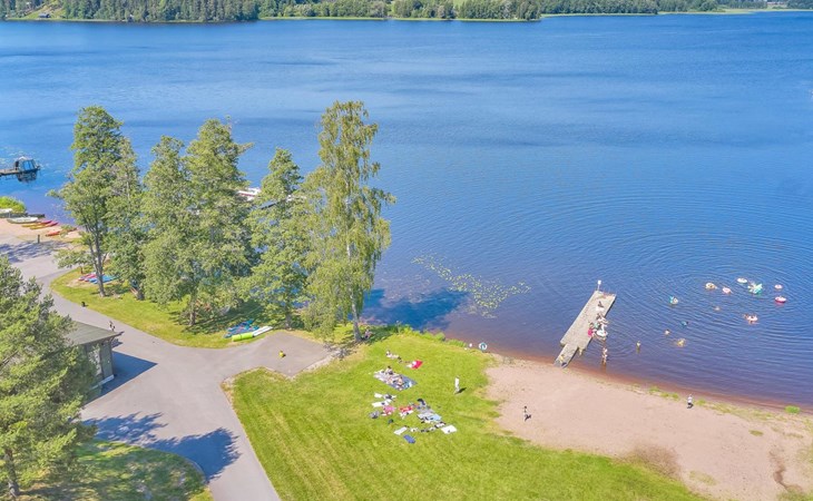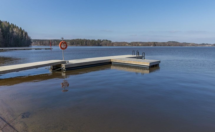 Lake Lohjanjärvi is approx. 150 meters away, offering a shared swimming beach with a gradually deepening sandy bottom. In summer, a lakeside kiosk serves pizza, allowing you to enjoy the pleasant lake views. A lakeside sauna and grill hut can also be rented separately.