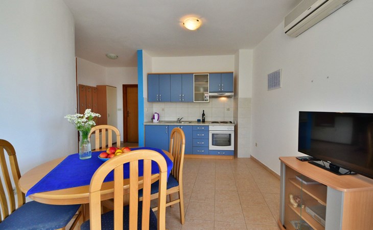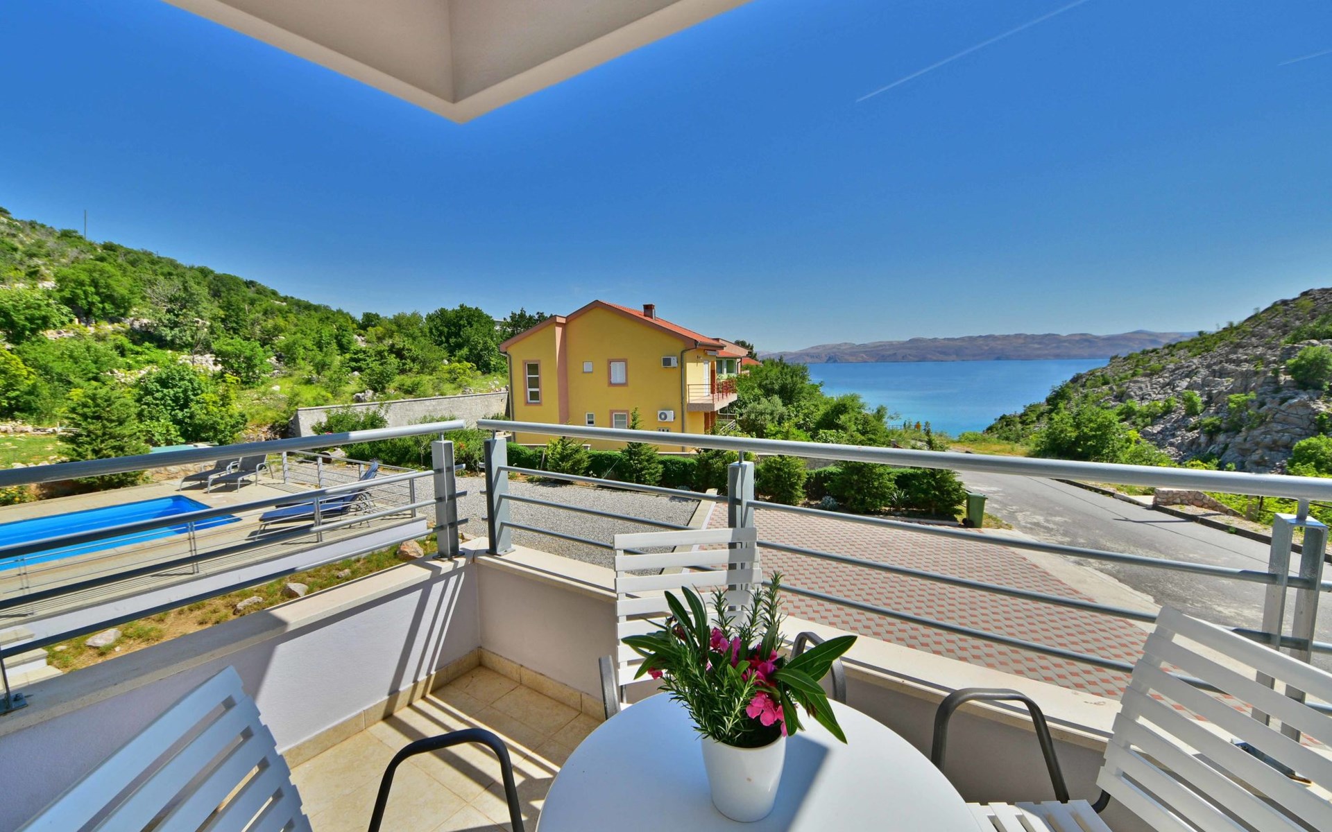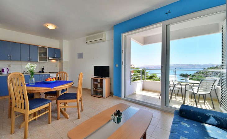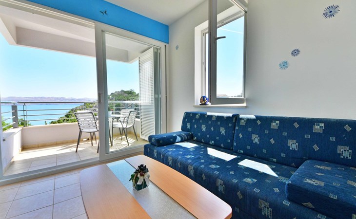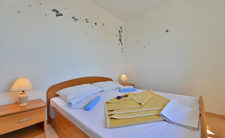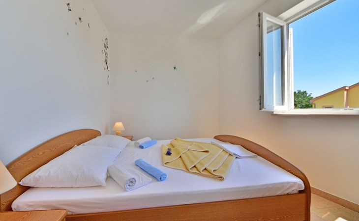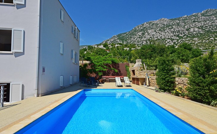 Ribarica 4 km von Karlobag: Appartementhaus "Sani". Sonnige Lage am Hang, 90 m vom Meer, 90 m vom Strand. Zur Mitbenutzung: Schwimmbad eckig (8 x 4 m, 140 cm tief, saisonale Verfügbarkeit: 01.Mai. - 30.Sep.) mit Innentreppe. Aussendusche, Terrasse, Gartenmöbel, Grill. Im Hause: Internetzugang. Zur Verfügung: Boot (extra). Parkplatz auf dem Grundstück. Einkaufsgeschäft 350 m, Lebensmittelgeschäft 5 km, Restaurant 350 m, Bushaltestelle 1 km, Kieselstrand 90 m, Felsstrand 350 m.