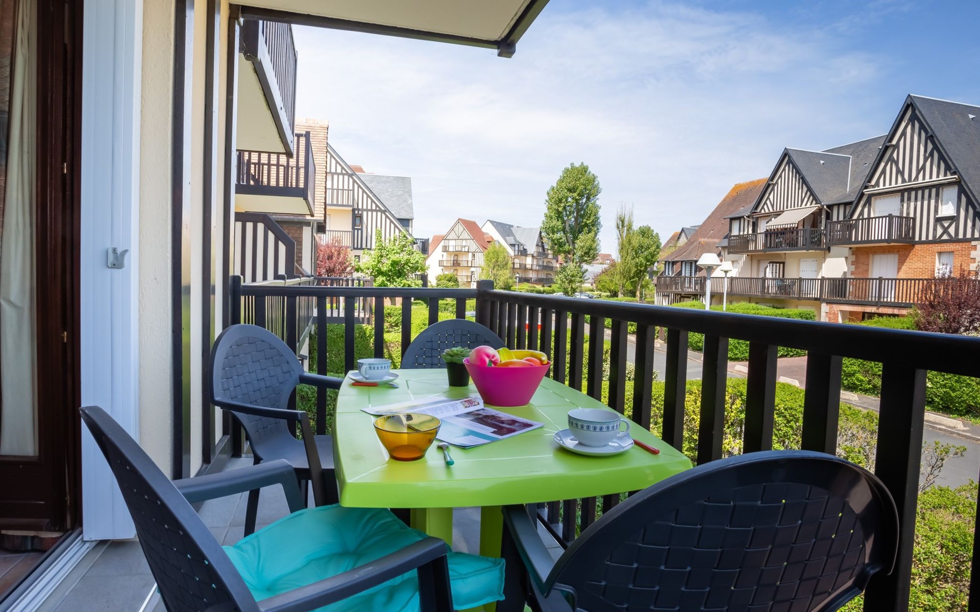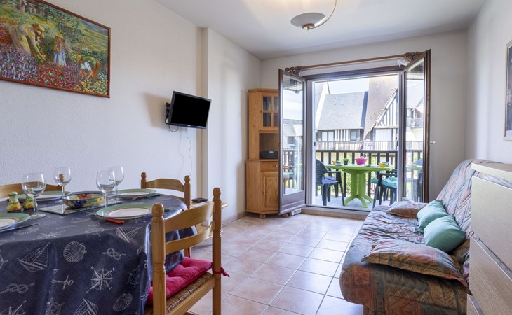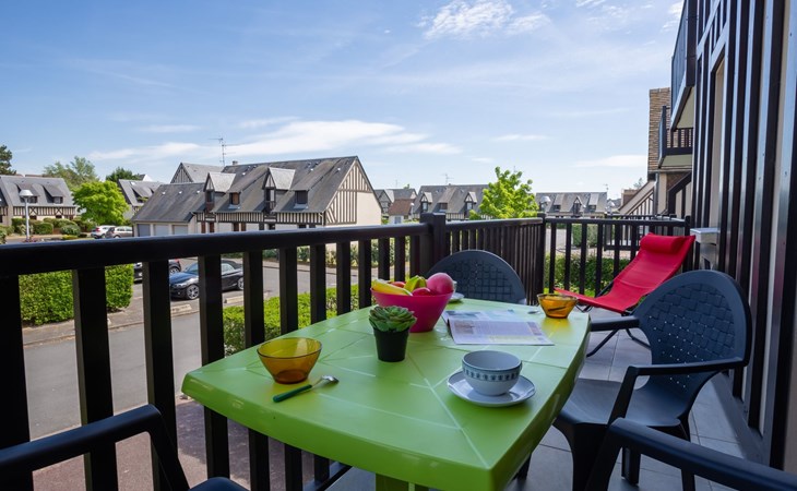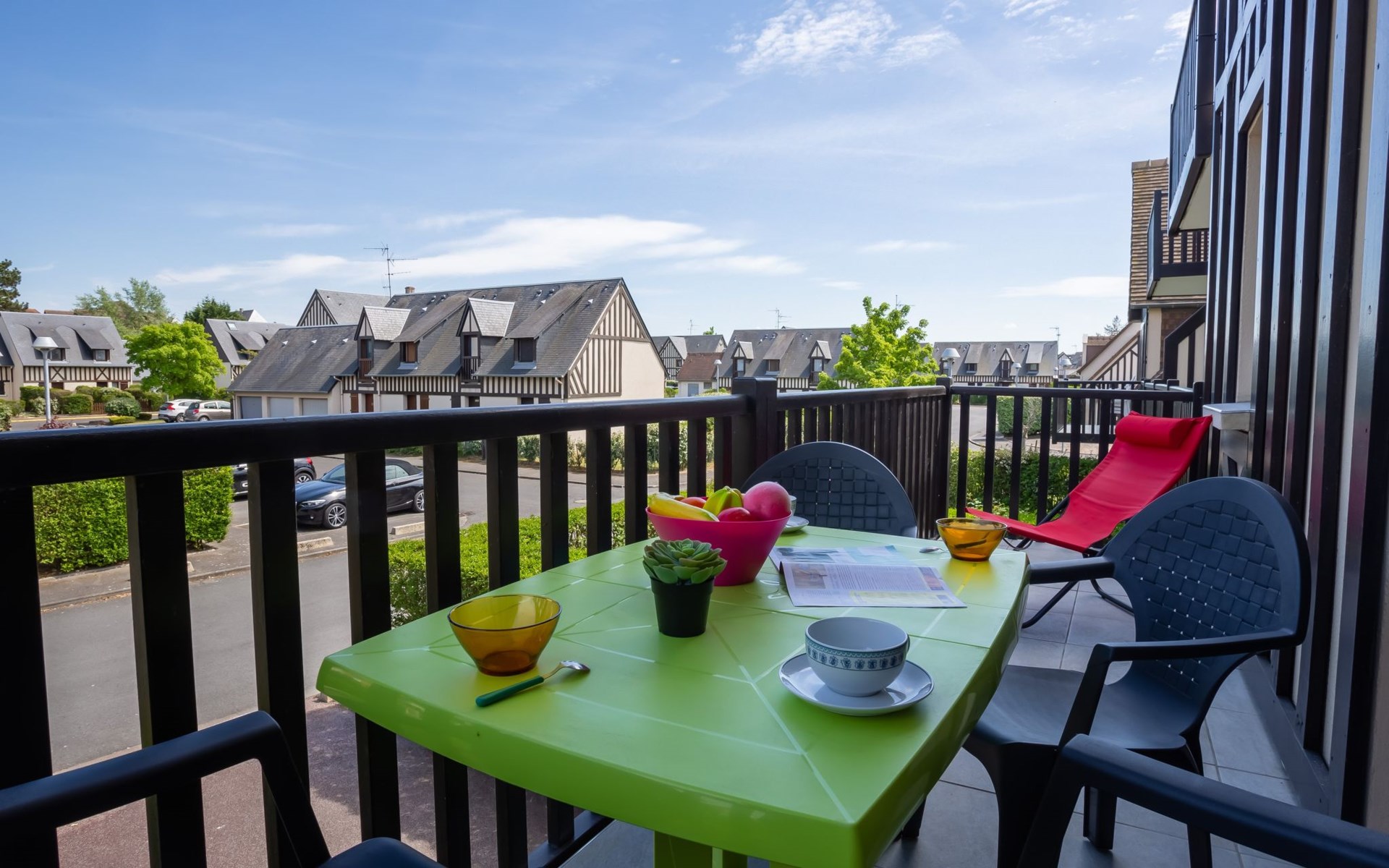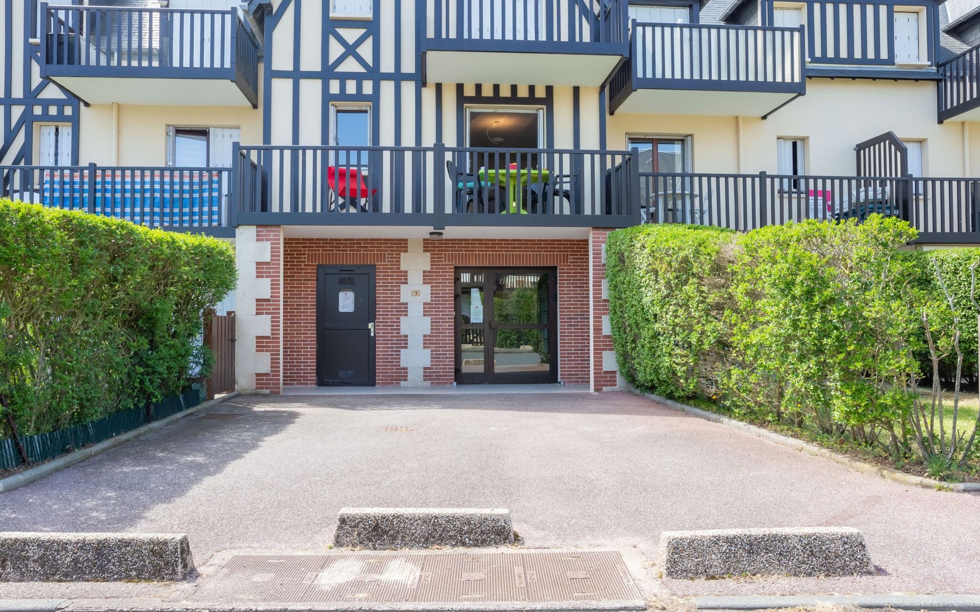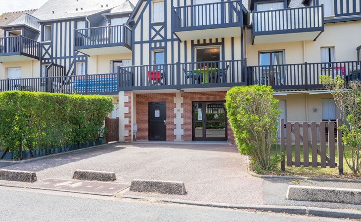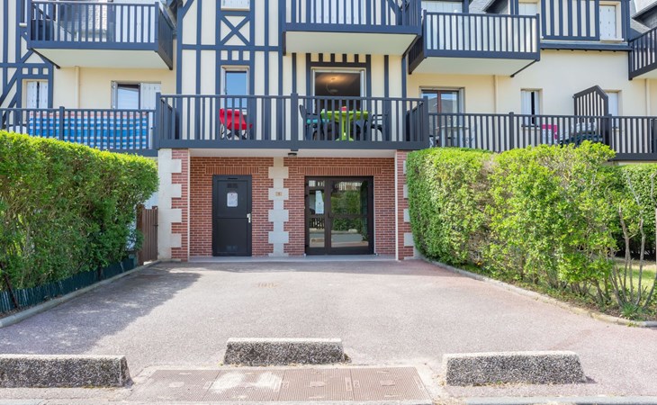Residenz "Fleur Marine". Im Ort, 1 km vom Zentrum von Cabourg, 300 m vom Meer, 300 m vom Strand, direkter Zugang zum Strand. Parkplatz (beschränkte Anzahl). Einkaufsgeschäft 1 km, Supermarkt 900 m, Restaurant 1 km, Bushaltestelle "Plage" 450 m, Thermalbad "Thalazur" 500 m. Golfplatz (9 Loch) 1.2 km, Sportzentrum 500 m. Bitte beachten: kein Fahrstuhl vorhanden. Das Foto ist nur ein Hausbeispiel. Bestehend aus 2-geschossigen Doppelhäusern und 3-geschossigen Gebäuden im normannischen Stil.