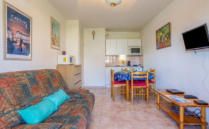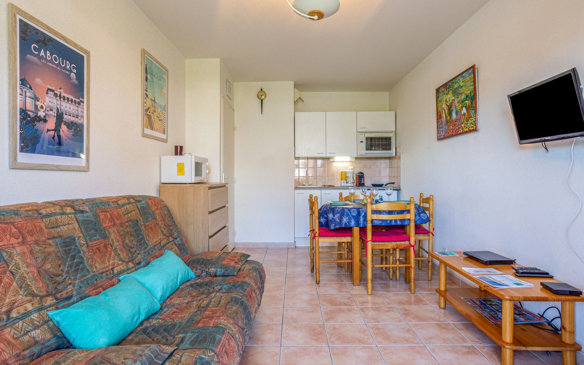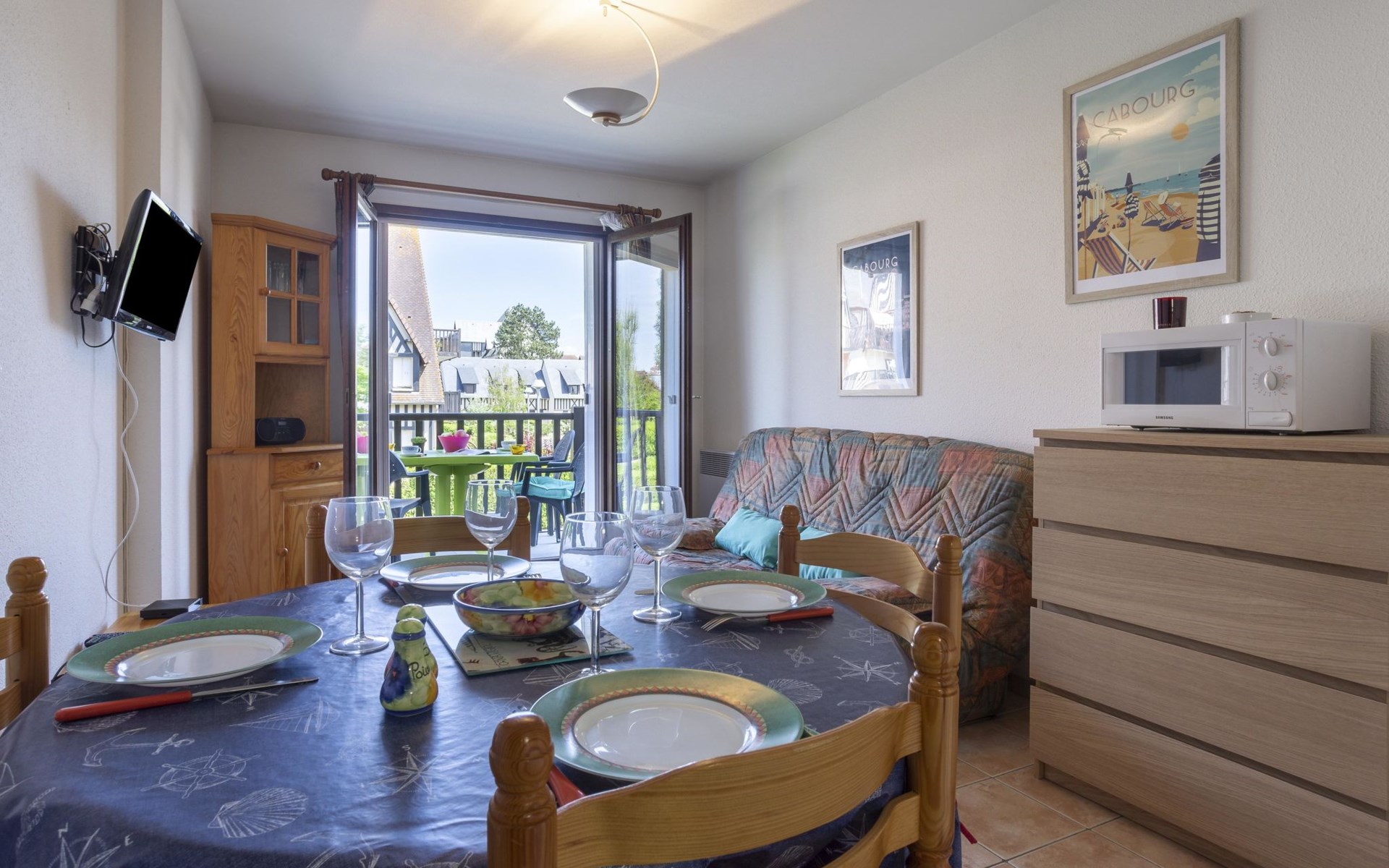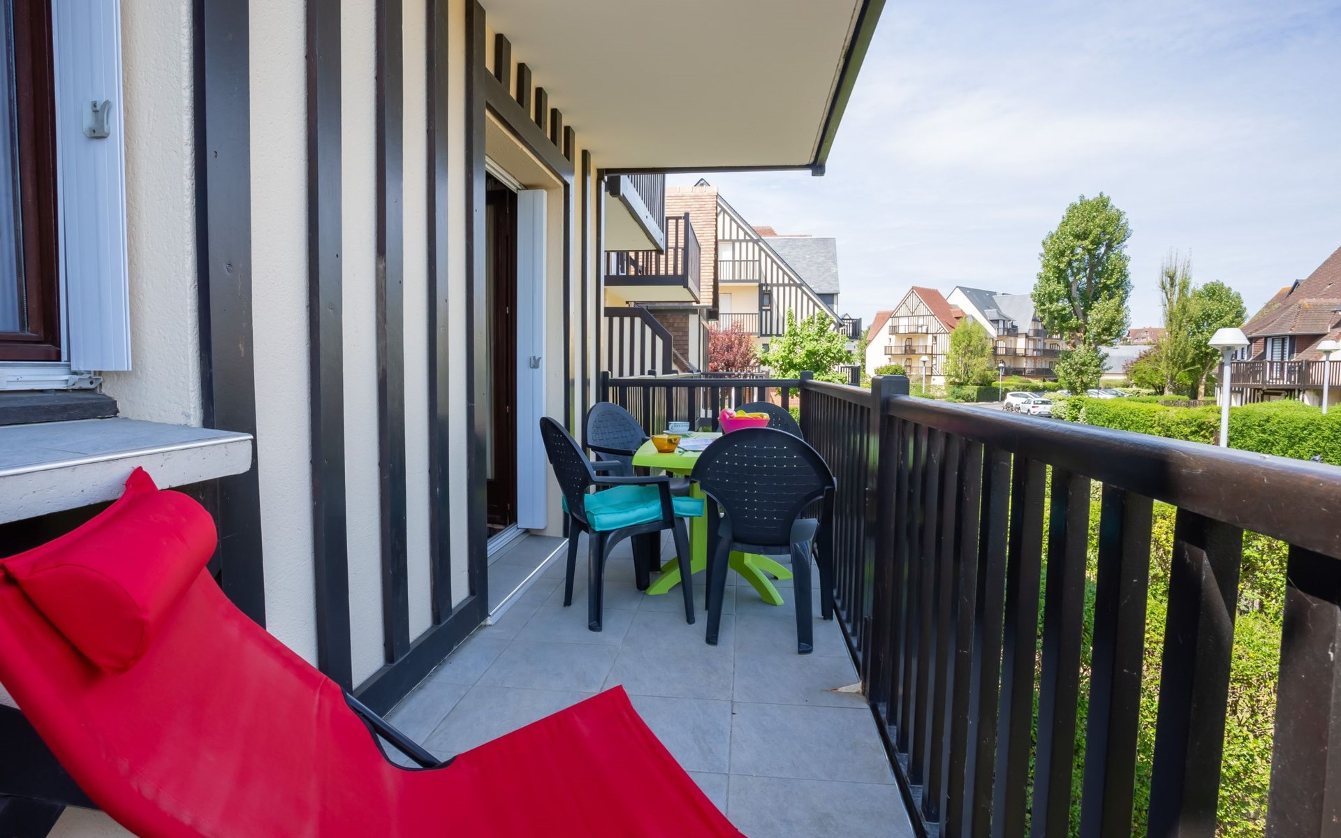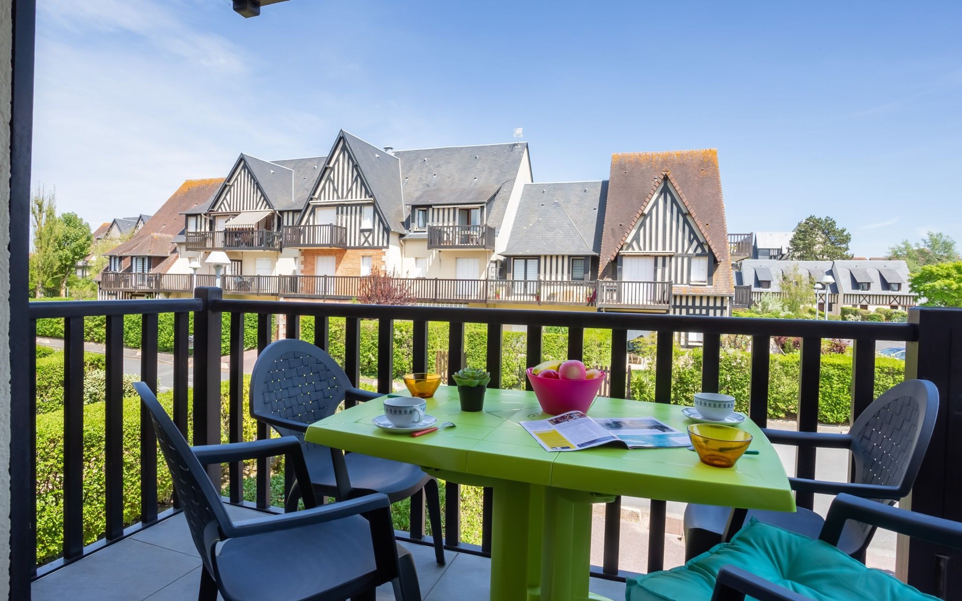 Residenz "Fleur Marine". Im Ort, 1 km vom Zentrum von Cabourg, 300 m vom Meer, 300 m vom Strand, direkter Zugang zum Strand. Parkplatz (beschränkte Anzahl). Einkaufsgeschäft 1 km, Supermarkt 900 m, Restaurant 1 km, Bushaltestelle "Plage" 450 m, Thermalbad "Thalazur" 500 m. Golfplatz (9 Loch) 1.2 km, Sportzentrum 500 m. Bitte beachten: kein Fahrstuhl vorhanden. Das Foto ist nur ein Hausbeispiel. Bestehend aus 2-geschossigen Doppelhäusern und 3-geschossigen Gebäuden im normannischen Stil.