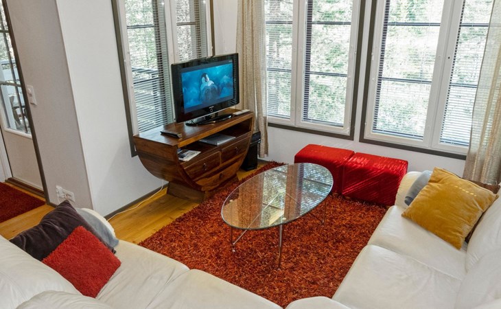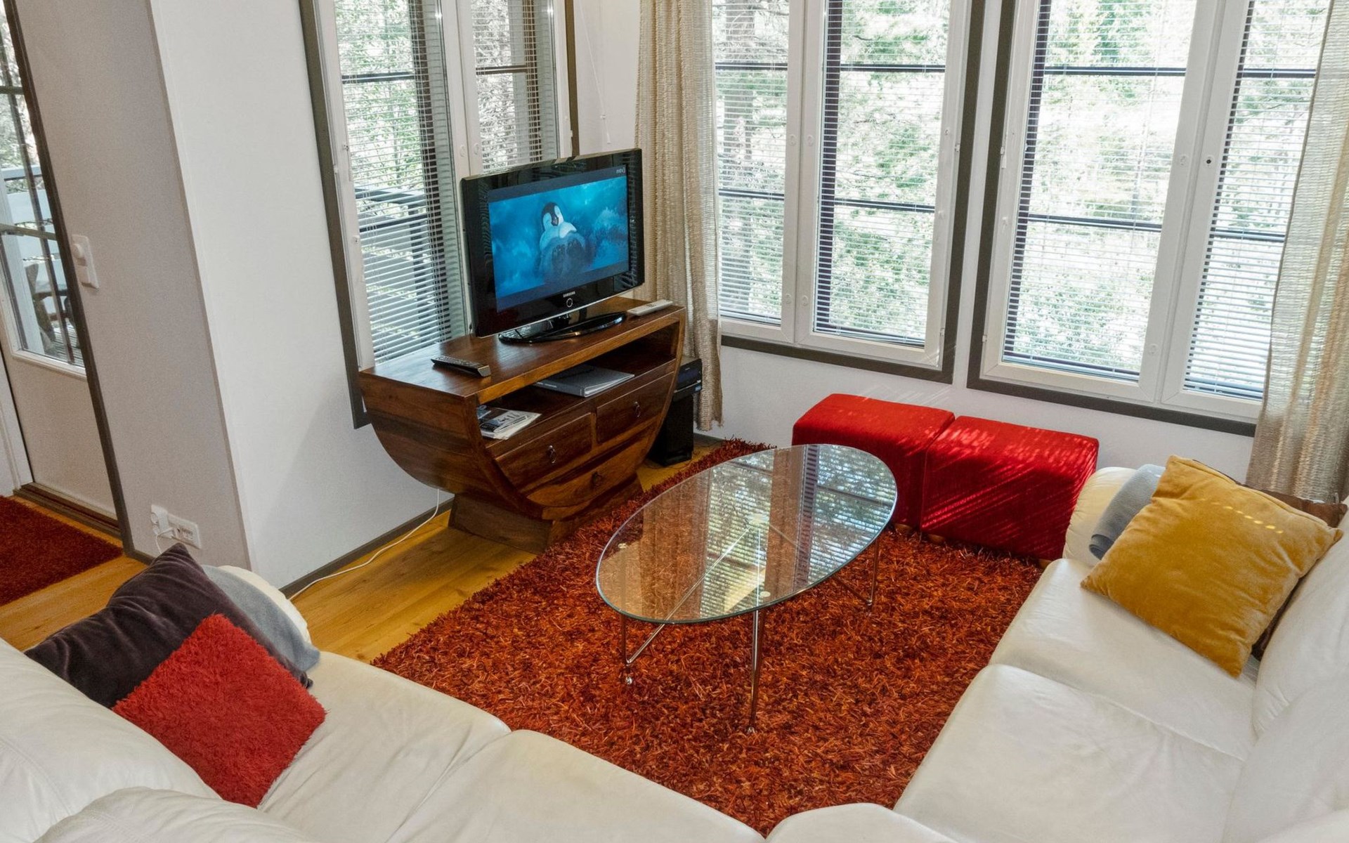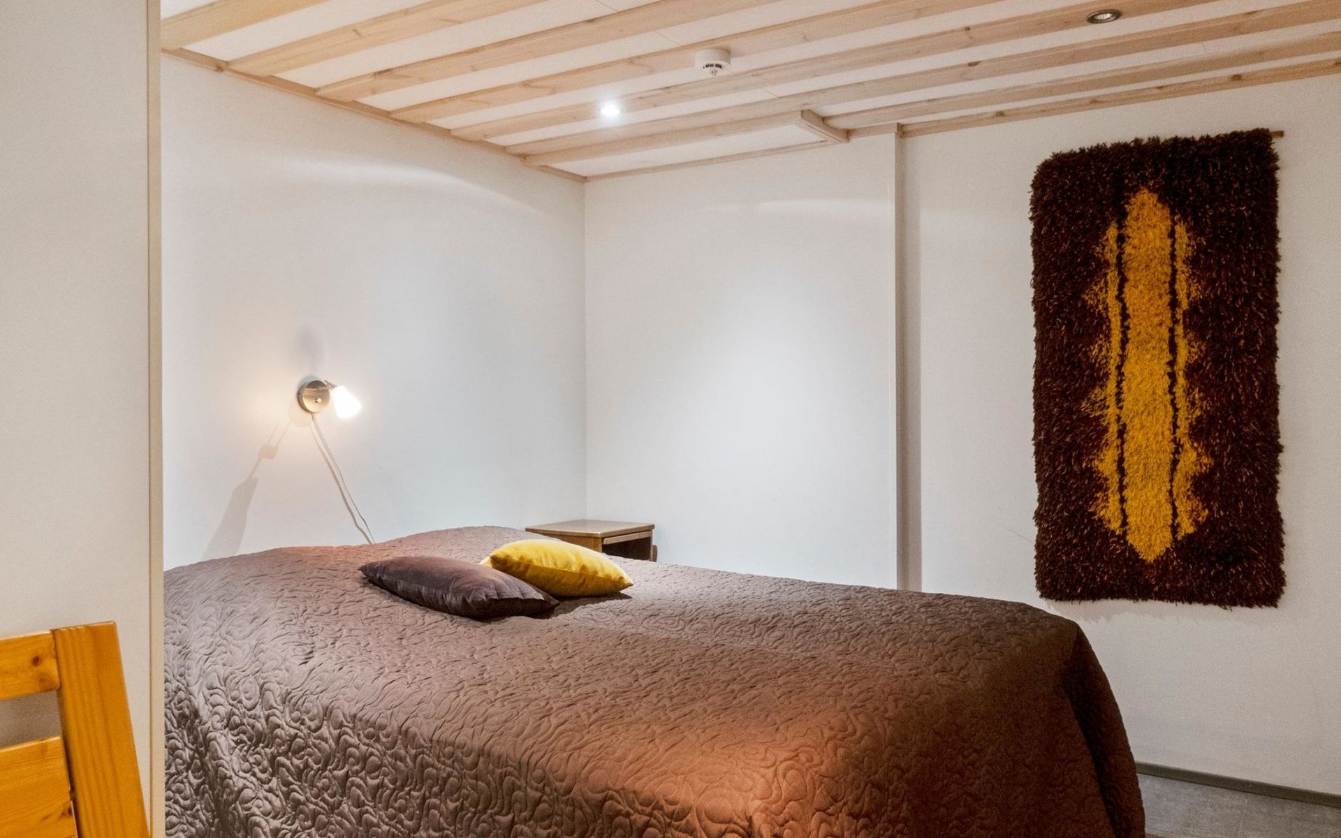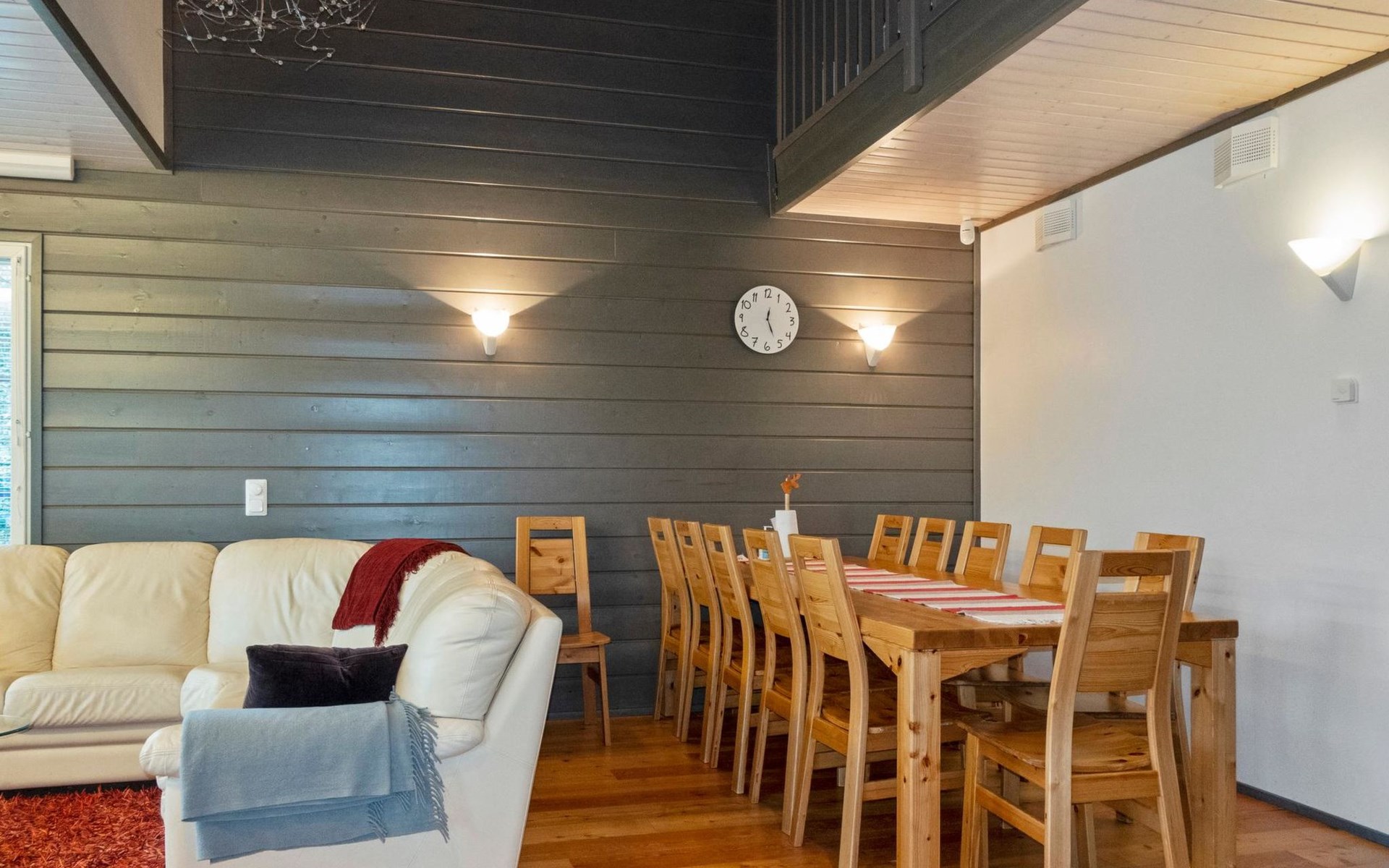 On the mezzanine floor there is living area with double bed (width 140 cm) in its own compartment and spreadable sofa bed. In connection with the loft there is also balcony. On the ground floor of the apartment, garage for snowmobile. This space is suitable for storing equipment and ski maintenance, for example. Lifting door in the garage.