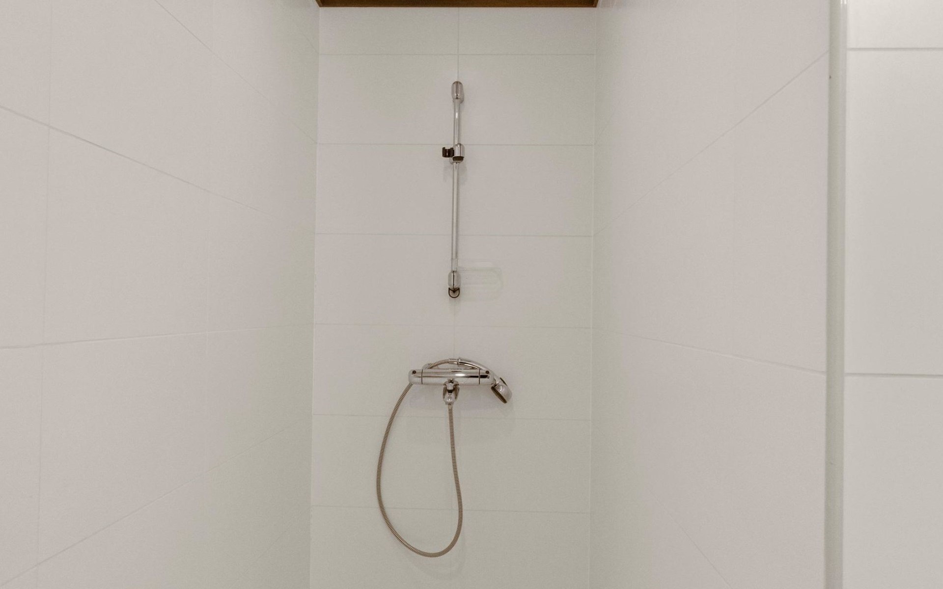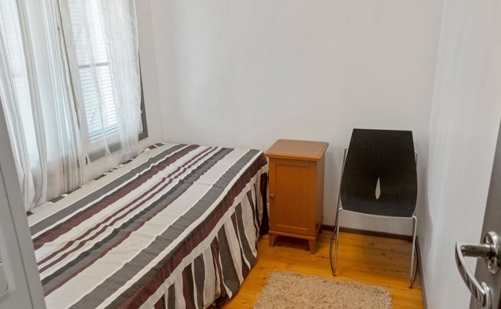 On the middle floor there is a living room/kitchen, bedroom with 2 beds, small bedroom with 1 bed, WC, shower and balcony.