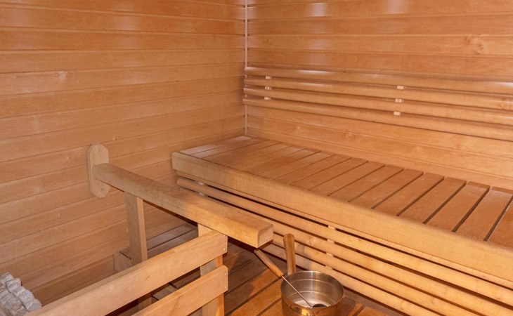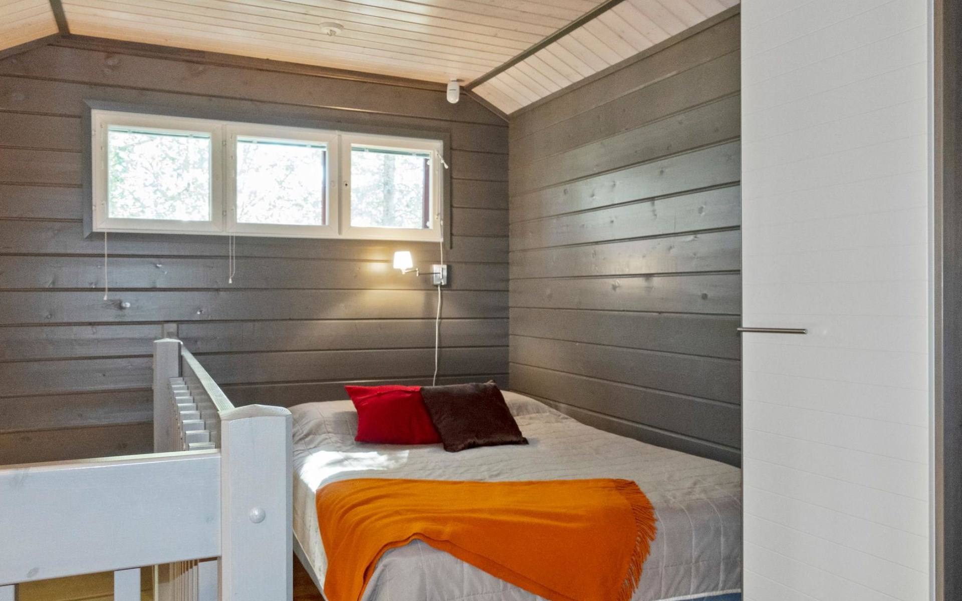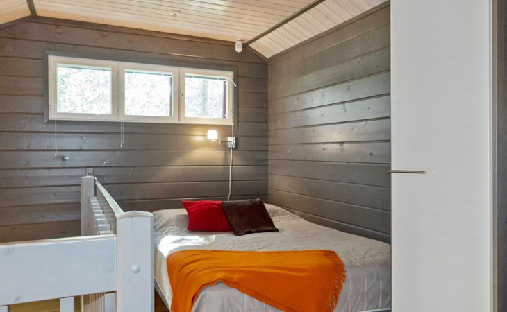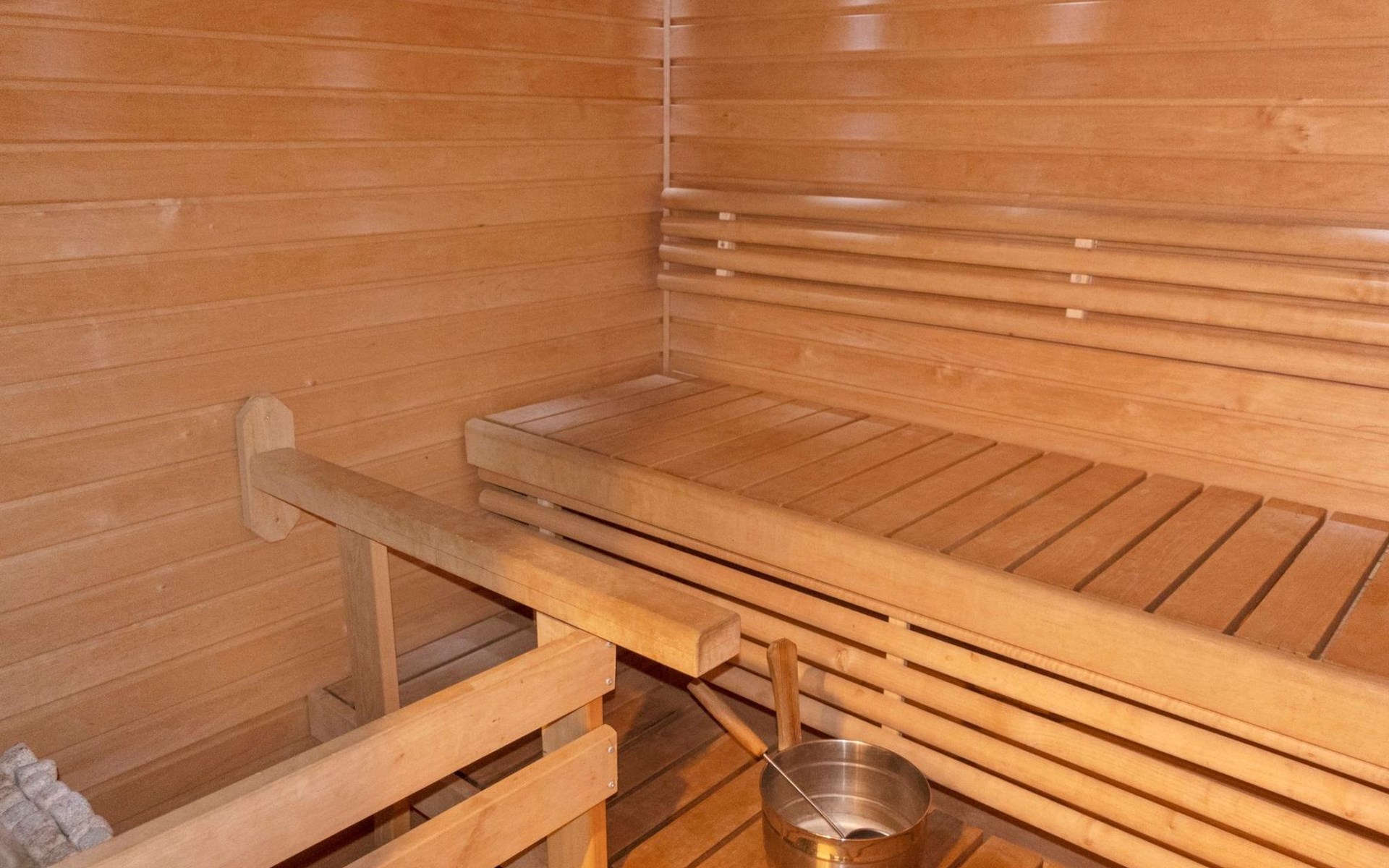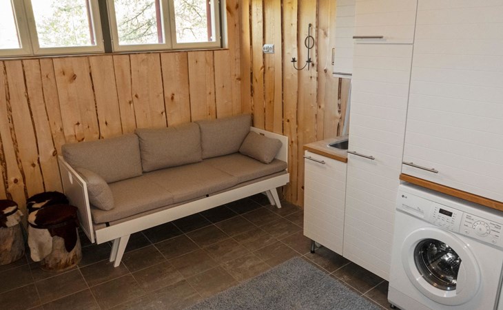 On the ground floor there is sauna, washroom, bedroom with 2 beds (no window), living area/utility room, spreadable sofa and separate WC.