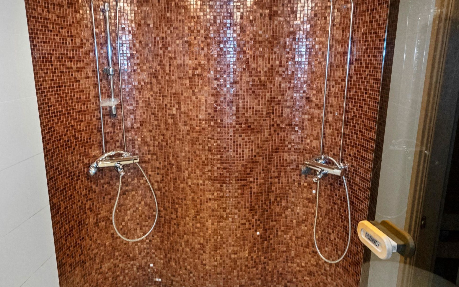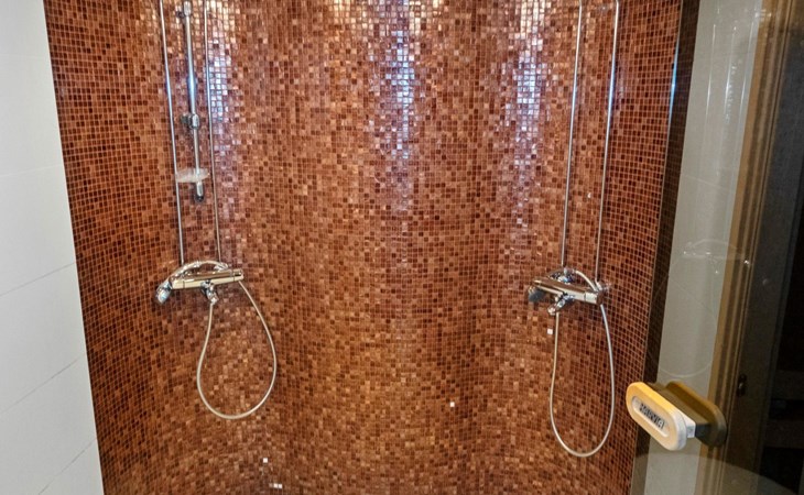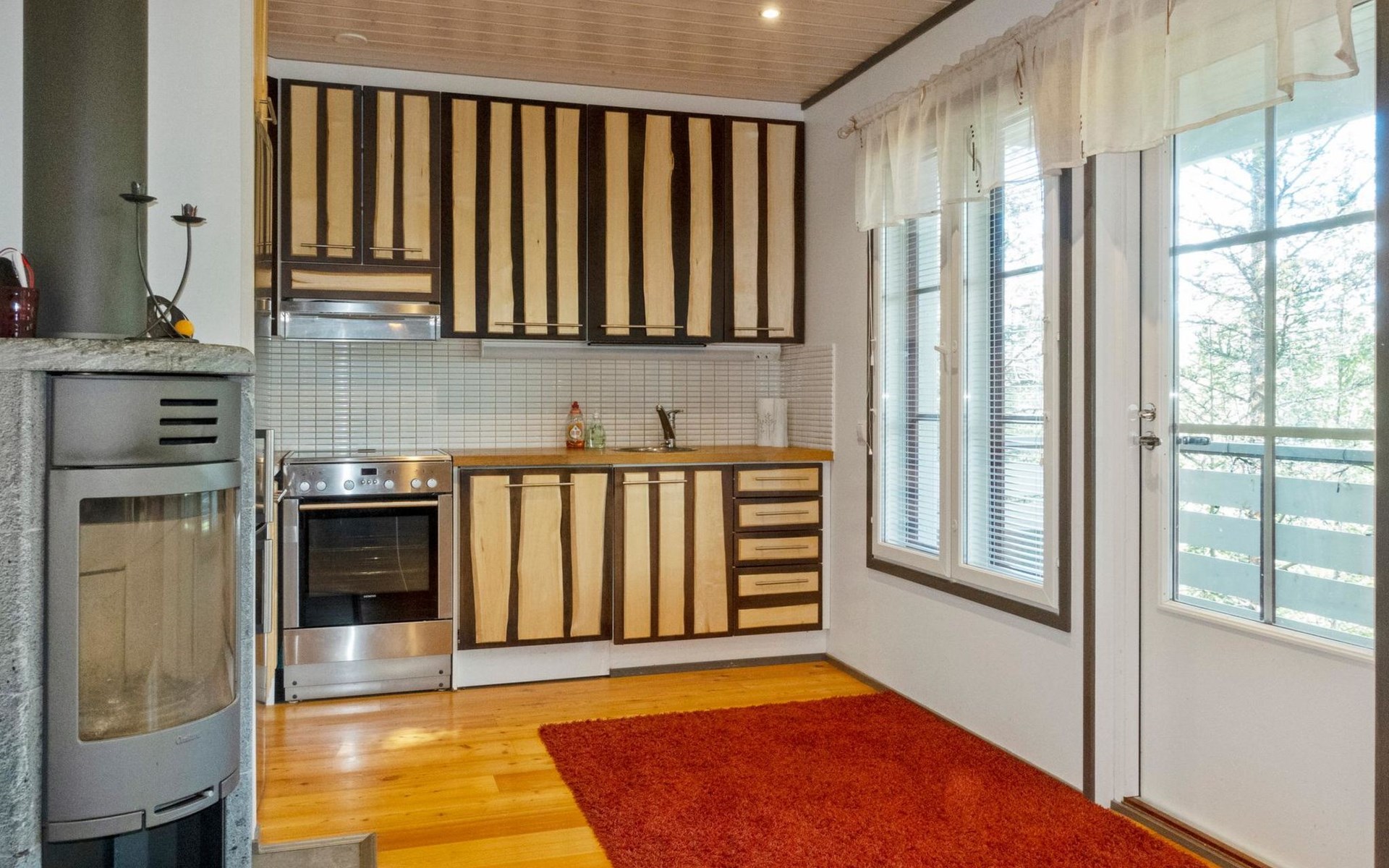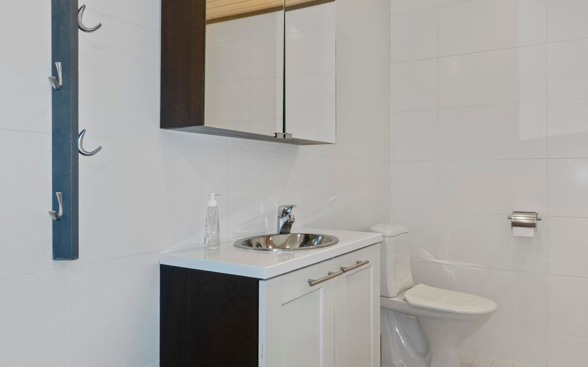 On the ground floor there is sauna, washroom, bedroom with 2 beds (no window), living area/utility room, spreadable sofa and separate WC.