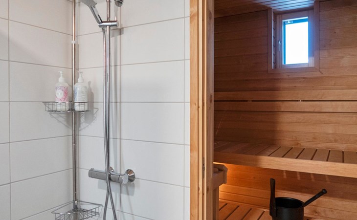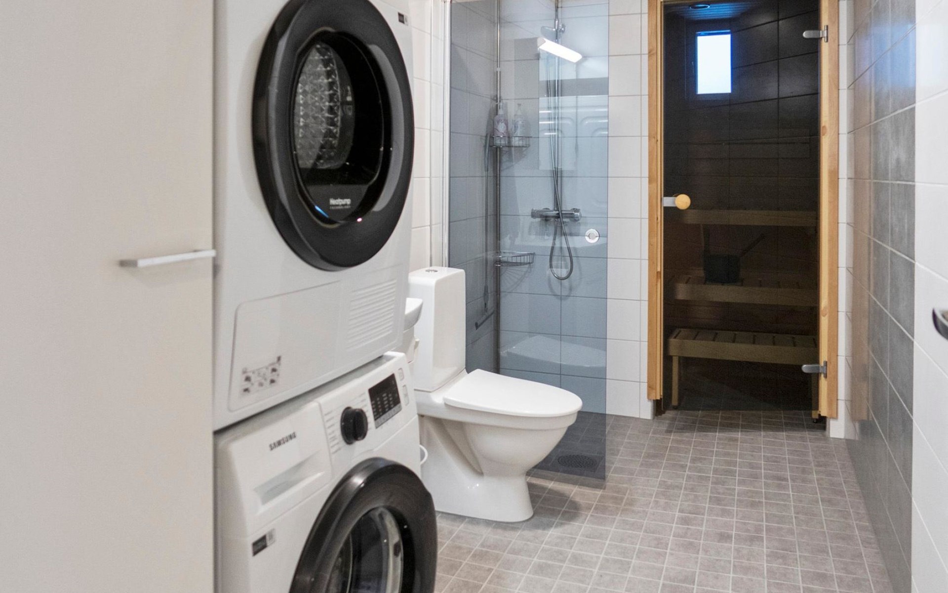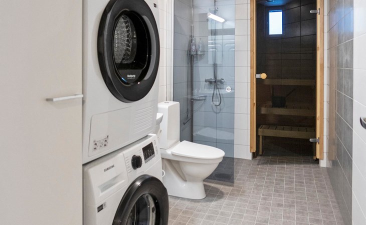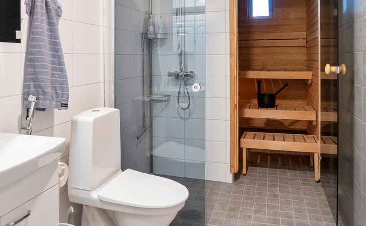 Sauna (electric sauna stove), washroom/WC. Balcony with furniture (coming for summer 2023). There is also warm ski maintenance room on the ground floor (for shared use) and warm cage storage for sports equipment.