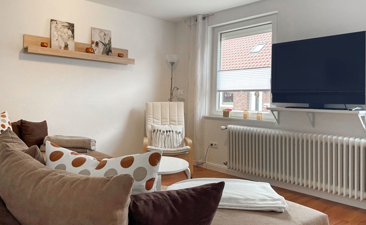 Einfamilienhaus "Hexenhuus". Im Ort, 700 m vom Zentrum, 11 km vom Meer, 11 km vom Strand, in einer Sackgasse. Zur Alleinbenutzung: Garten mit Liegewiese. Grill. Im Hause: Einstellraum für Fahrräder, Zentralheizung. Zur Verfügung: Fahrräder (4). Parkplatz beim Haus. Carport. Supermarkt 600 m, Restaurant 700 m, Bäckerei 600 m, Café 700 m, Bushaltestelle 700 m, Bahnstation "Norden" 6 km, Sandstrand 11 km, Park "Lütetsburger Schlosspark" 3 km, Freibad 3 km, Hallenbad 3 km. Golfplatz (18 Loch) 3 km, Surfschule 11 km.