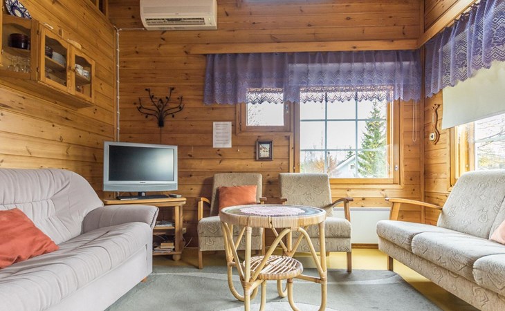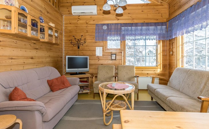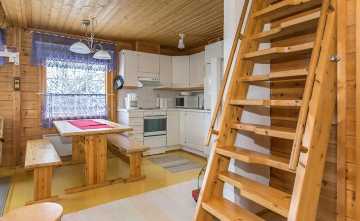 Doppelhaushälfte, im Tourismuszentrum Ukkohalla, für 6+2 Personen, Fläche 41m2 + Dachboden 24m2, Baujahr 1990. Küche, Schlafzimmer mit Doppelbett, Dachboden, Sauna, Duschbad/WC, Vorraum, Abstellraum, Terrasse, Kamin und Brennholz. Schlafsofa, 2 Betten und Matratze auf dem Dachboden, Schlafsofa im Wohnzimmer. Ukkohalla: Tourismuszentrum am See Syväjärvi, mit Informationszentrum, Geschäft, Restaurant, Spa, Pistenzentrum, Schneemobilpisten, Skipisten, Programmservice, Strand (weitere Informationen unter www.ukkohalla.fi). Entfernung zu den Ukkohalla-Diensten 1,5 km. Flughafen Kajaani 86 km, Oulu 170 km, Helsinki 650 km, Bushaltestelle Hyrynsalmi 18 km, Bahnhof Kontiomäki 66 km. Haustiere nicht erlaubt, Blick auf die Pisten. Das Ferienhaus steht am Anreisetag ab 16.00 Uhr bis 12.00 Uhr am Abreisetag zur Verfügung. Sie können Bettwäsche und Endreinigung telefonisch unter +358 407230536 oder per E-Mail: ukkohallanmatkailupalvelutoy@wippies.com reservieren.