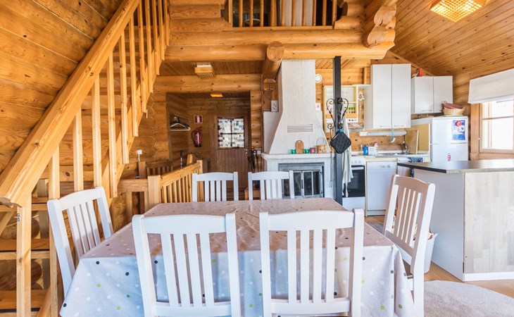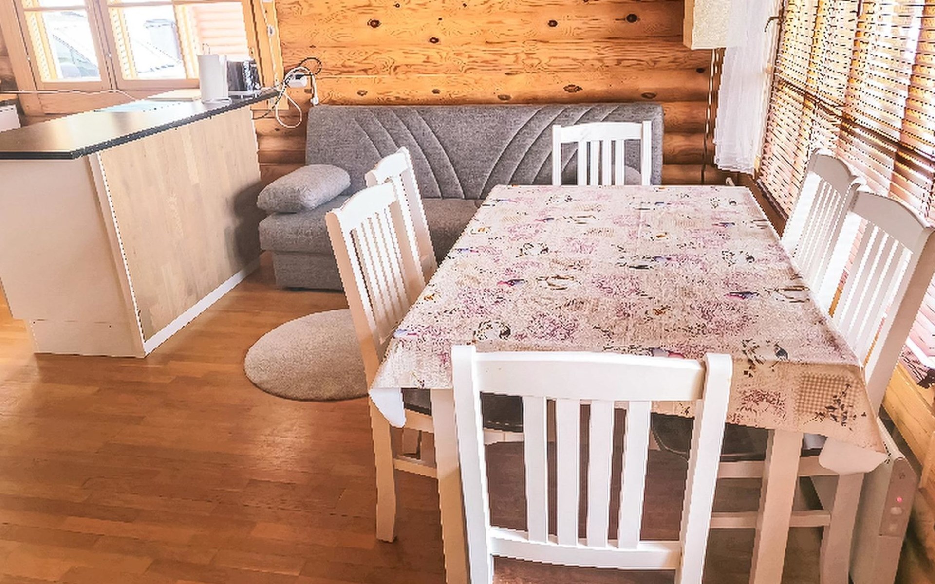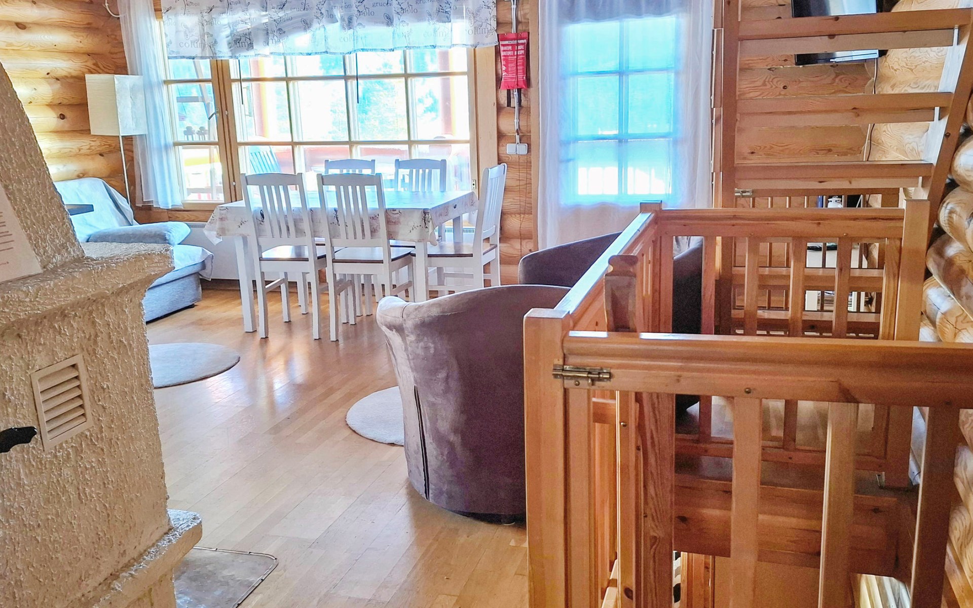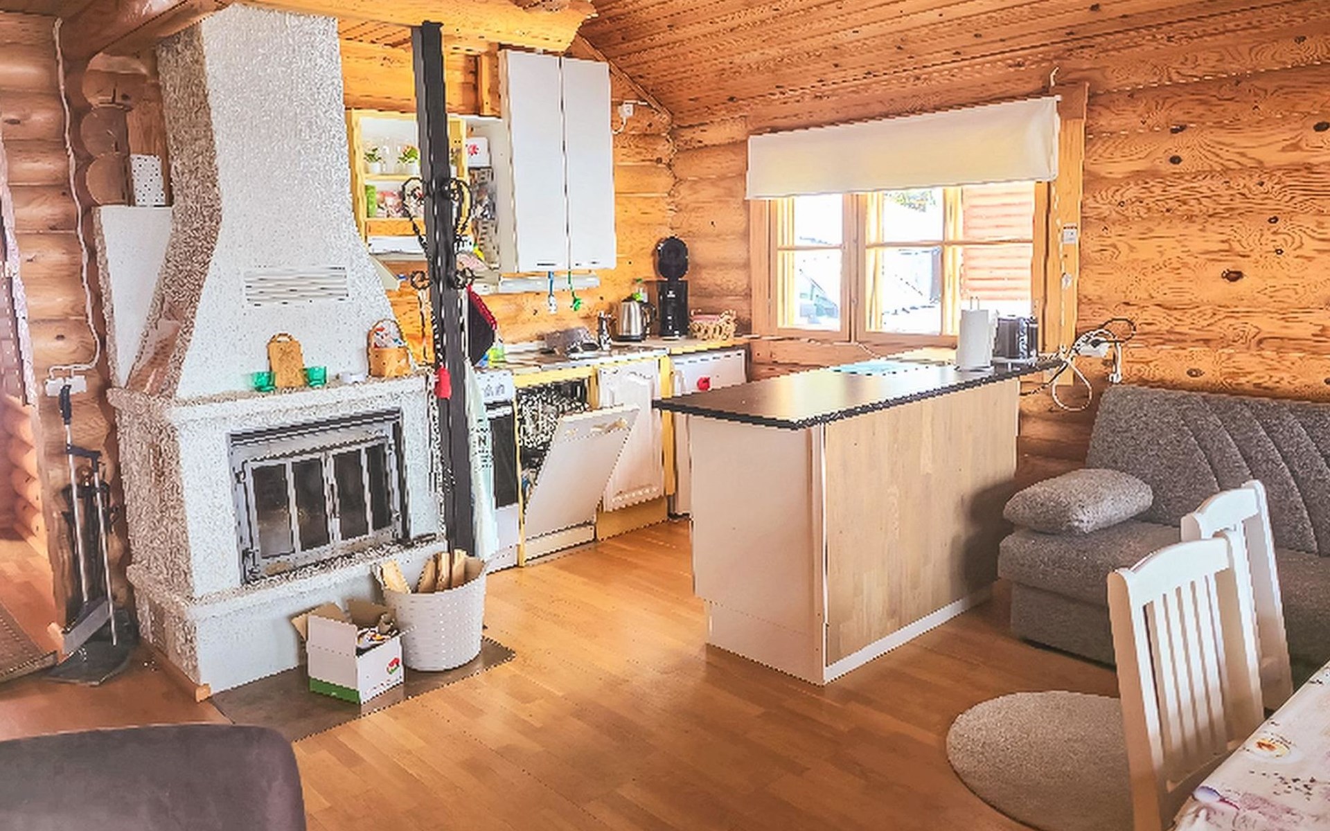 Maximal 1 Haustier/Hund erlaubt. Doppelhaushälfte, im Tourismuszentrum Ukkohalla, 6 Personen, Fläche 63,5 m2, Baujahr 1991, Räumlichkeiten auf 3 Etagen, Küche, Schlafzimmer mit Doppelbett, Dachboden, Sauna, Duschbad und separates WC im Erdgeschoss, Ankleideraum, Balkon, Terrasse, Vorraum, Kamin, 3 Betten auf dem Dachboden, Kindersicherung auf der Treppe. Steile Treppe! Toilette im Erdgeschoss. Ukkohalla: Tourismuszentrum am See Syväjärvi, mit Informationszentrum, Geschäft, Restaurant, Spa, Pistenzentrum, Schneemobilpisten, Skipisten, Programmservice, Cable Wakeboard, Strand (weitere Informationen unter www.ukkohalla.fi). Entfernung zu den Ukkohalla-Diensten 0,7 km. Flughafen Kajaani 86 km, Oulu 170 km, Helsinki 650 km, Bushaltestelle Hyrynsalmi 18 km, Bahnhof Kontiomäki 66 km. Haustiere verboten. Schöne Aussicht über die Pisten und den See Syväjärvi. Das Ferienhaus steht am Anreisetag ab 16.00 Uhr bis 12.00 Uhr am Abreisetag zur Verfügung.