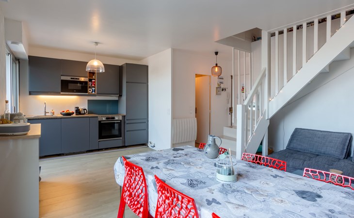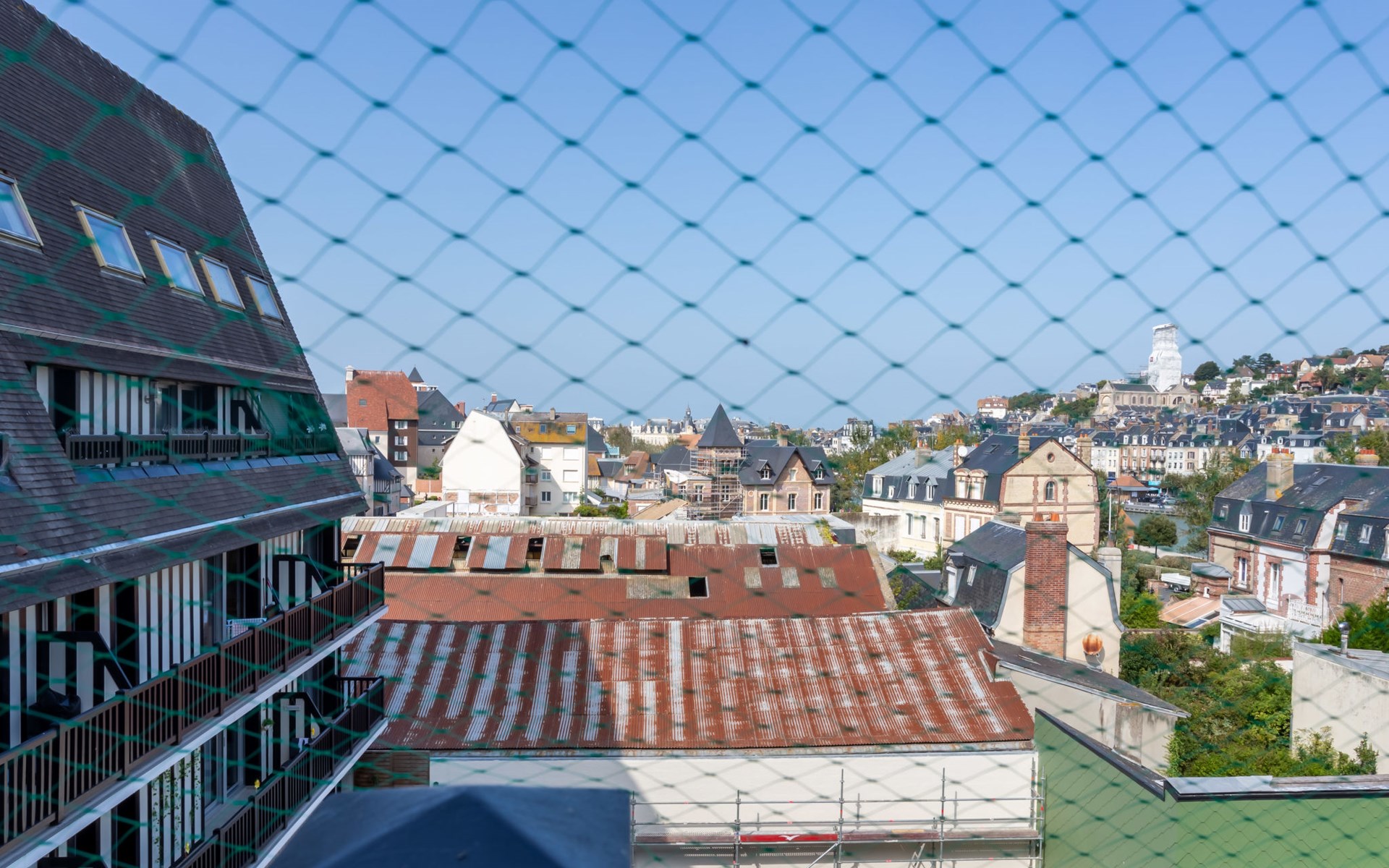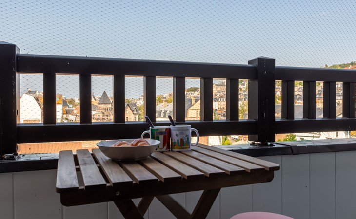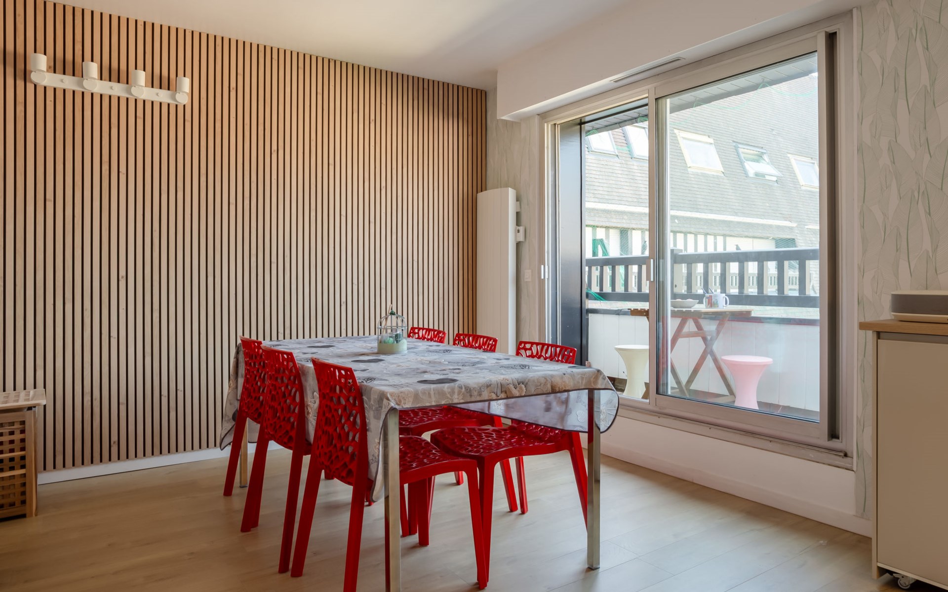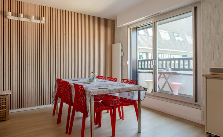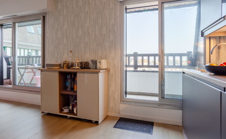 Deauville: Residenz "La Deauvillaise". Im Ortszentrum, 1.2 km vom Meer, 1.2 km vom Strand. In der Anlage: Fahrstuhl. (1 Stufe). Einkaufsgeschäft, Lebensmittelgeschäft 300 m, Supermarkt 600 m, Restaurant 50 m, Bushaltestelle "Gare routière" 100 m, Bahnstation "Deauville-Trouville" 100 m, Hallenbad 1.4 km, Thermalbad "Deauville" 1.4 km. Golfplatz (18 Loch) 3.8 km, Tennis 1.2 km, Reitstall 1.2 km. Nahe gelegene Sehenswürdigkeiten: Hippodrome Deauville-La Touques 1 km, Centre International Deauville - CID 1.2 km, Mémorial de Caen 54 km, Plage du débarquement d'Arromanches 85 km. Die Schlüsselübergabe findet bei der Agentur Interhome in Deauville statt.