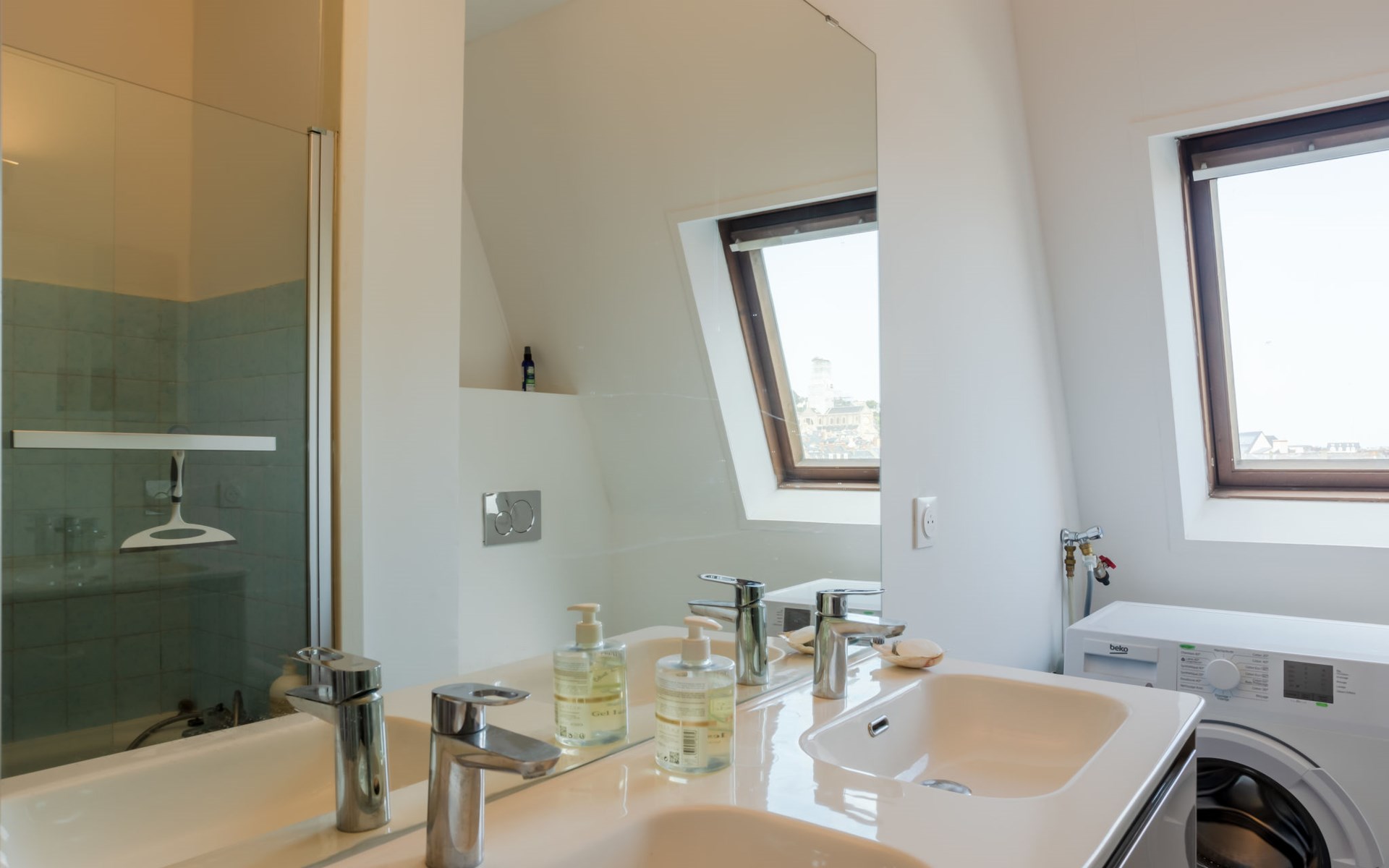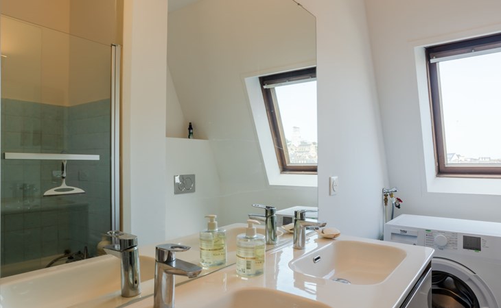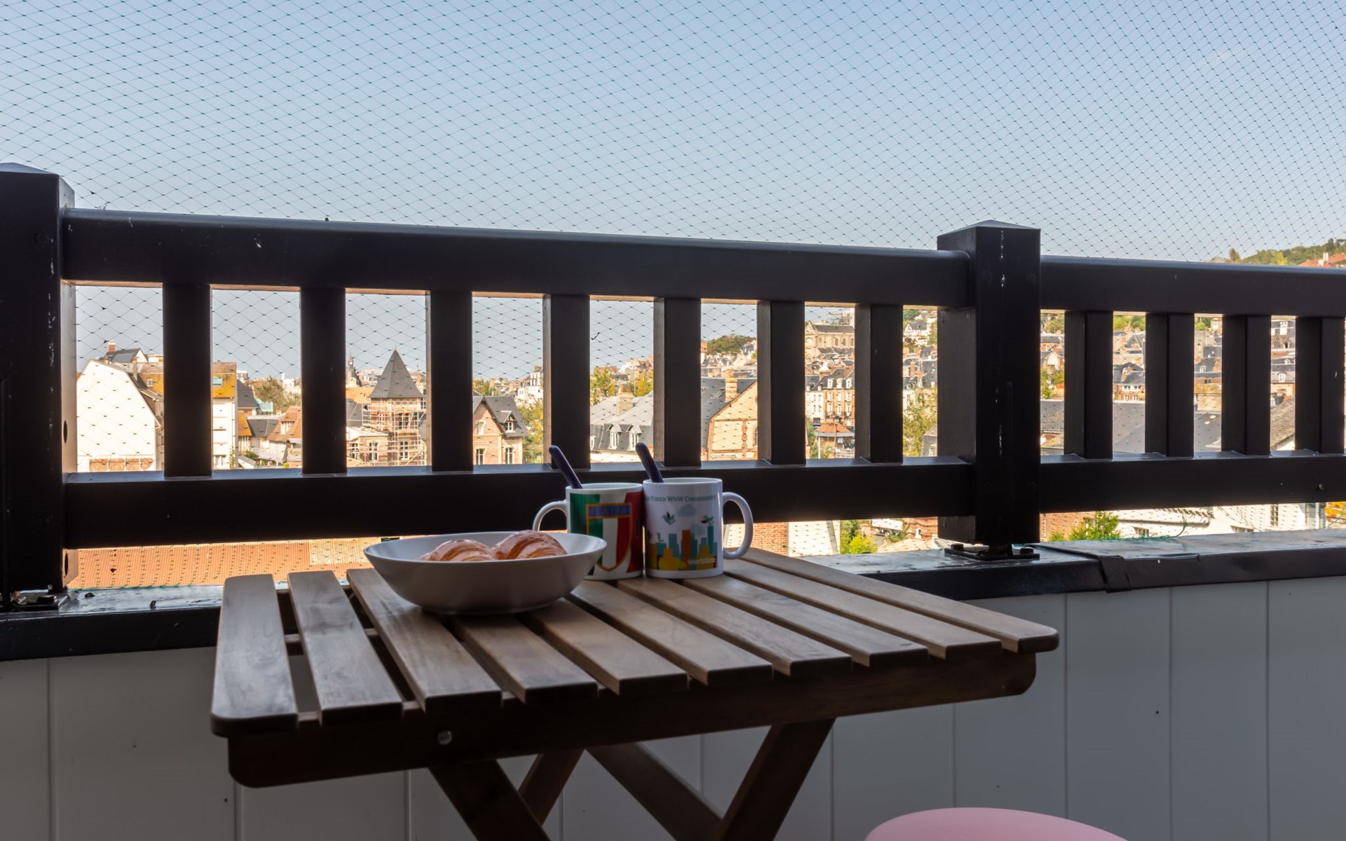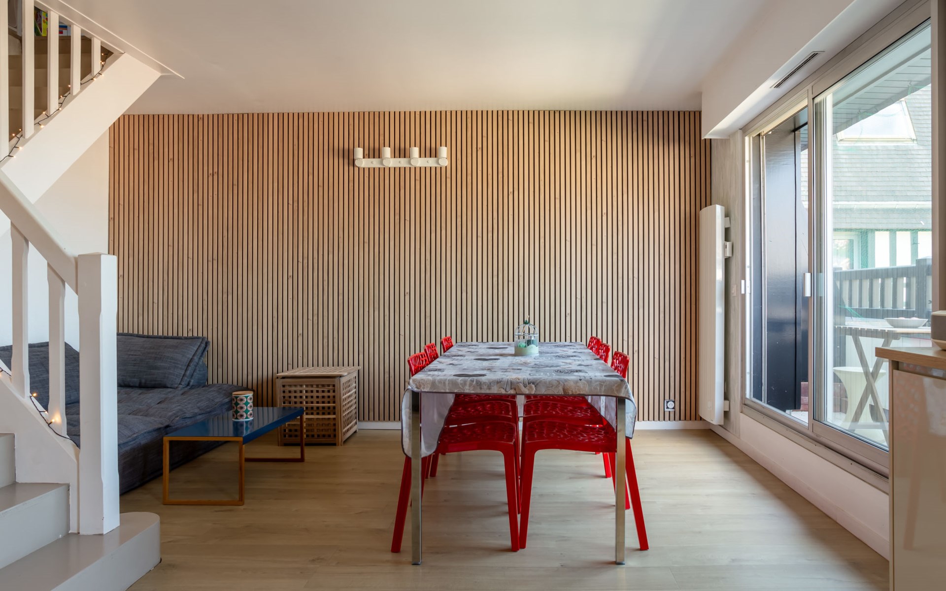 Deauville: Residenz "La Deauvillaise". Im Ortszentrum, 1.2 km vom Meer, 1.2 km vom Strand. In der Anlage: Fahrstuhl. (1 Stufe). Einkaufsgeschäft, Lebensmittelgeschäft 300 m, Supermarkt 600 m, Restaurant 50 m, Bushaltestelle "Gare routière" 100 m, Bahnstation "Deauville-Trouville" 100 m, Hallenbad 1.4 km, Thermalbad "Deauville" 1.4 km. Golfplatz (18 Loch) 3.8 km, Tennis 1.2 km, Reitstall 1.2 km. Nahe gelegene Sehenswürdigkeiten: Hippodrome Deauville-La Touques 1 km, Centre International Deauville - CID 1.2 km, Mémorial de Caen 54 km, Plage du débarquement d'Arromanches 85 km. Die Schlüsselübergabe findet bei der Agentur Interhome in Deauville statt.