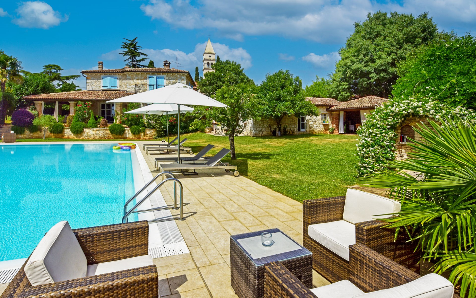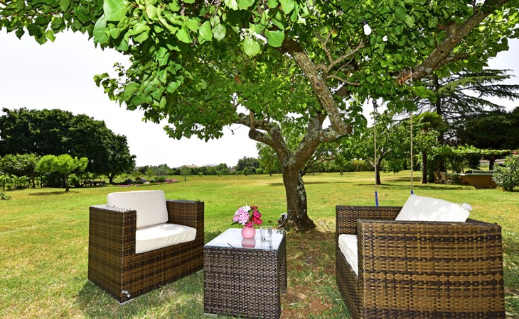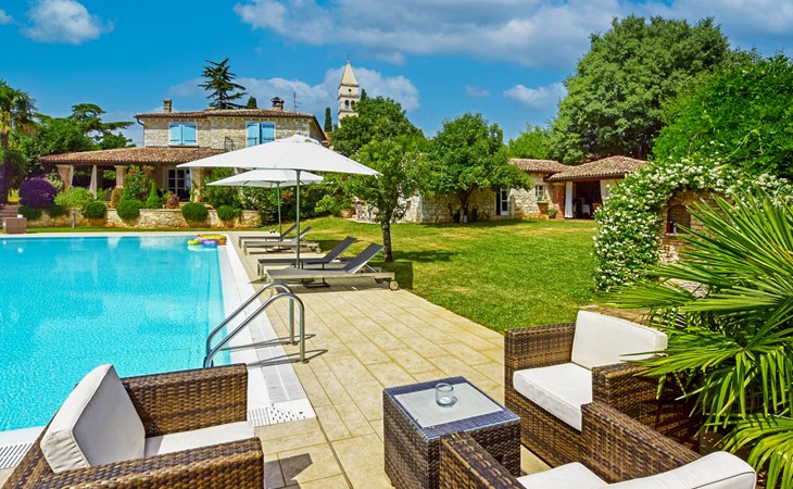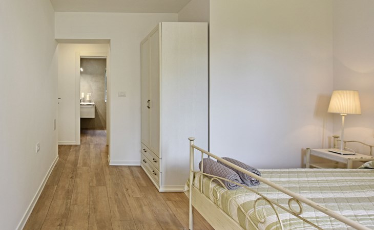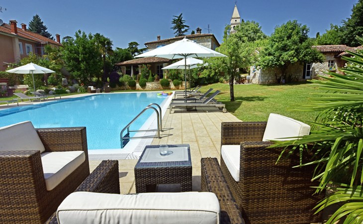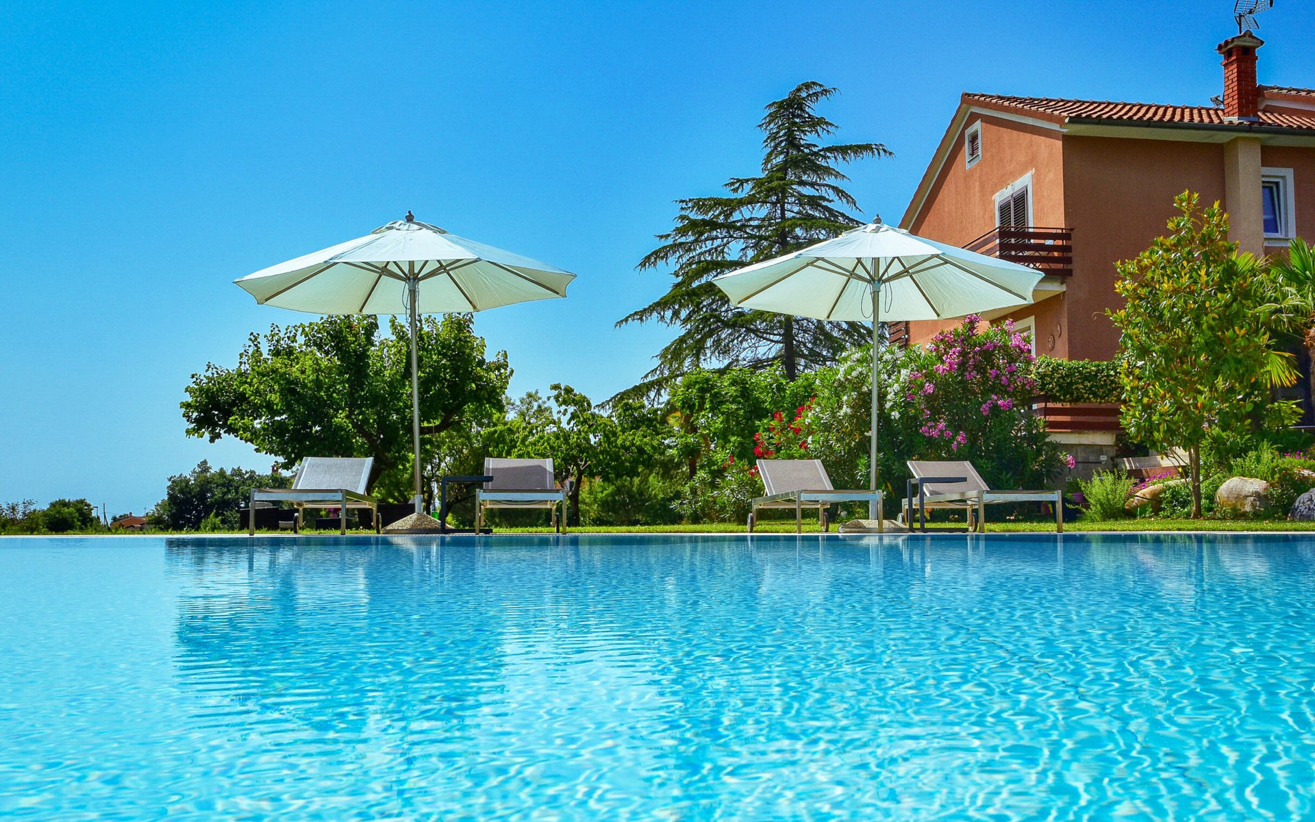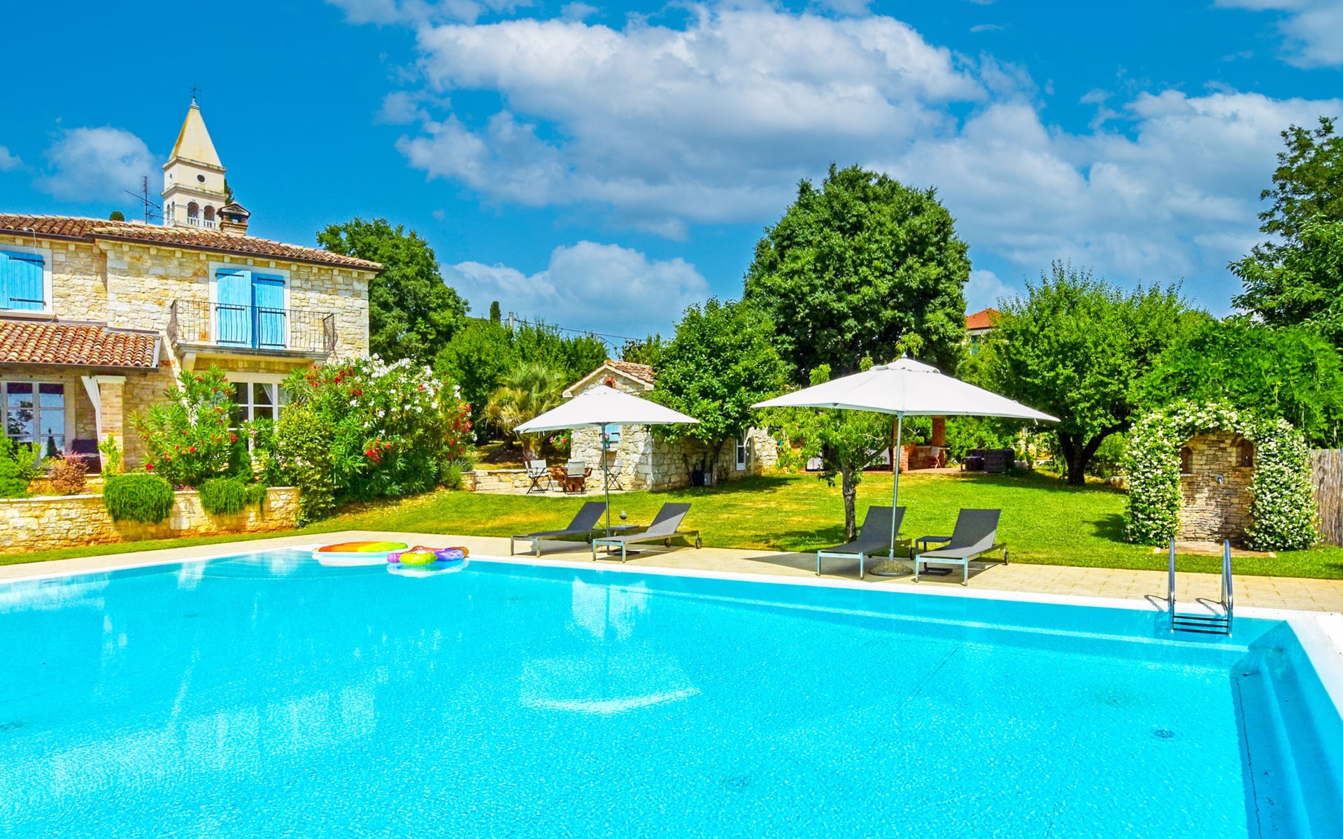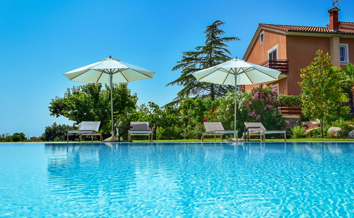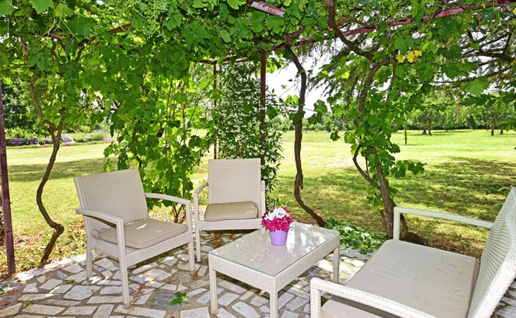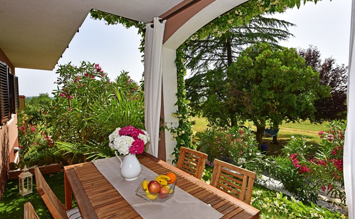 Zweifamilienhaus "Mirta". Im Weiler Labinci, 800 m vom Zentrum von Kaštelir, 13 km vom Zentrum von Poreč, 12 km vom Zentrum von Novigrad, 7 km vom Meer, im Grünen. Zur Mitbenutzung: Grundstück 18'000 m2 mit Rasen und Bäumen, Schwimmbad eckig (16 x 8 m, 120 - 180 cm tief, saisonale Verfügbarkeit: 01.Mai. - 01.Okt.) mit Innentreppe. Aussendusche, Tischtennis, Terrasse, Gartenmöbel, Grill, Kinderspielplatz (Rutschbahn, Schaukel, Sandkasten), Poolpflege durch den Besitzer/Gärtner. Im Hause: Internetzugang, Trampolin. Parkplatz auf dem Grundstück. Einkaufsgeschäft 50 m, Supermarkt 800 m, Restaurant 50 m, Bushaltestelle 6 km, Felsstrand 7 km. Jacht-Hafen 12 km, Kinderspielplatz 30 m.
