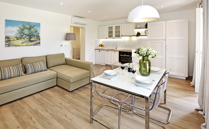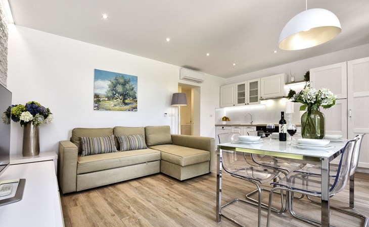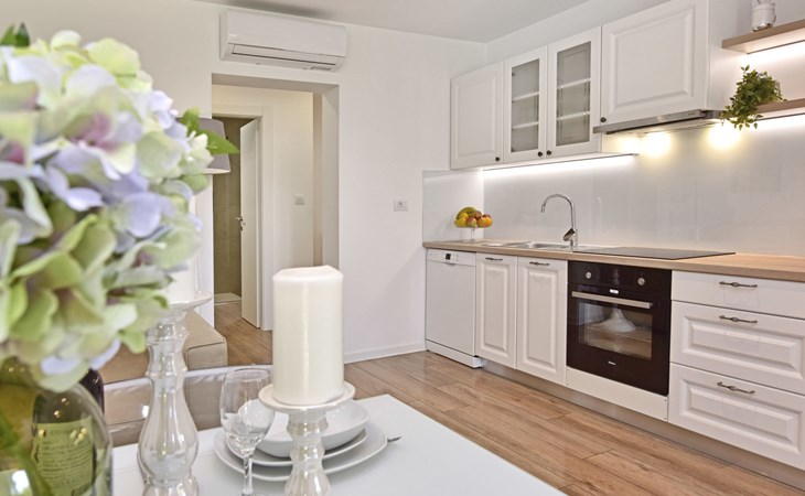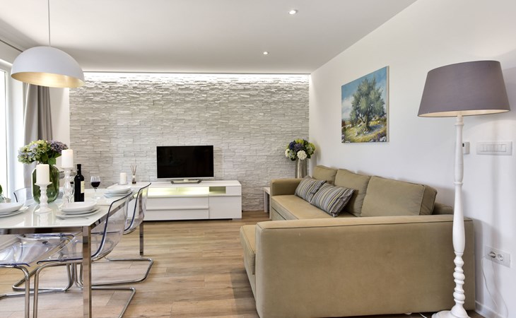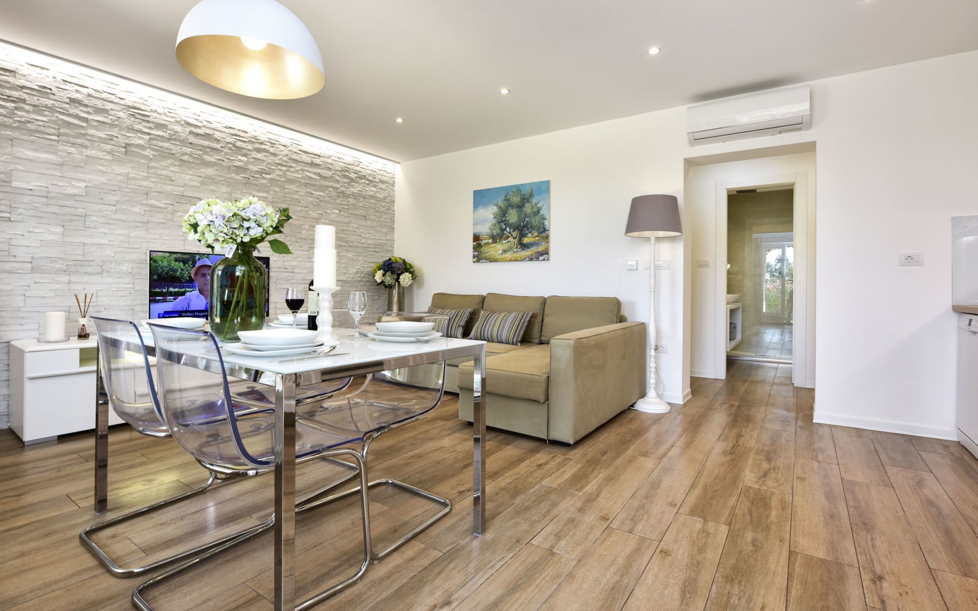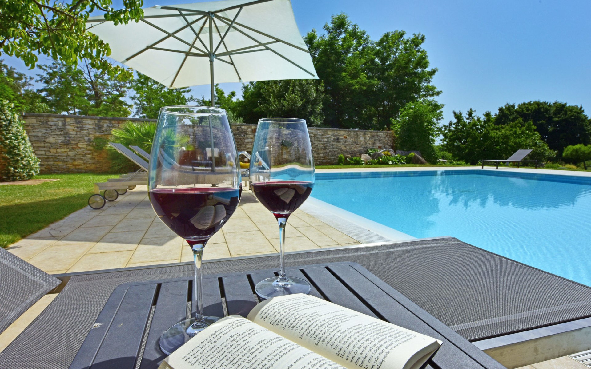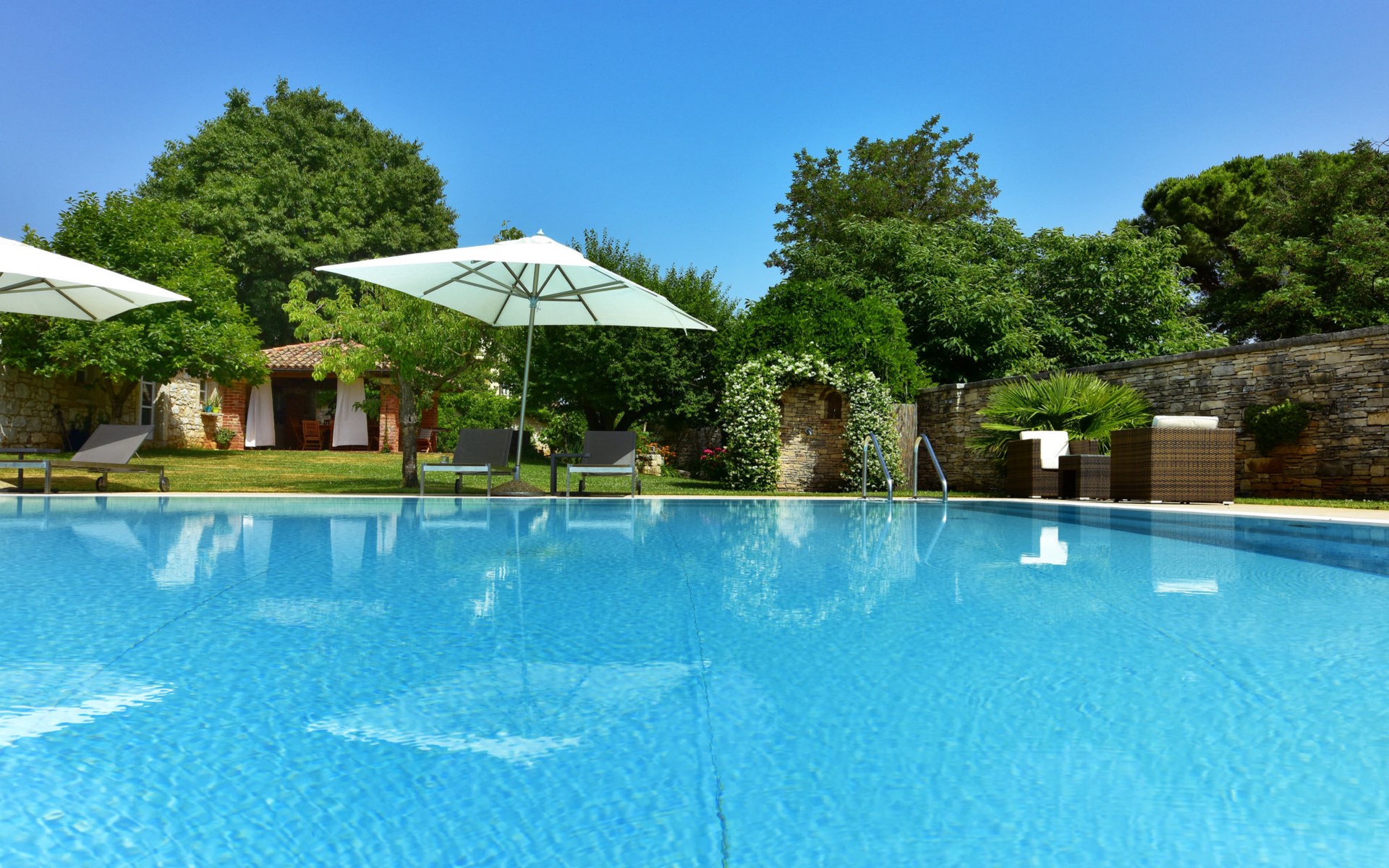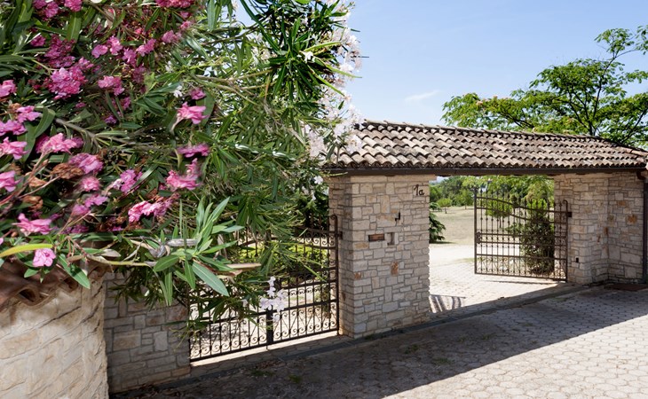 Zweifamilienhaus "Mirta". Im Weiler Labinci, 800 m vom Zentrum von Kaštelir, 13 km vom Zentrum von Poreč, 12 km vom Zentrum von Novigrad, 7 km vom Meer, im Grünen. Zur Mitbenutzung: Grundstück 18'000 m2 mit Rasen und Bäumen, Schwimmbad eckig (16 x 8 m, 120 - 180 cm tief, saisonale Verfügbarkeit: 01.Mai. - 01.Okt.) mit Innentreppe. Aussendusche, Tischtennis, Terrasse, Gartenmöbel, Grill, Kinderspielplatz (Rutschbahn, Schaukel, Sandkasten), Poolpflege durch den Besitzer/Gärtner. Im Hause: Internetzugang, Trampolin. Parkplatz auf dem Grundstück. Einkaufsgeschäft 50 m, Supermarkt 800 m, Restaurant 50 m, Bushaltestelle 6 km, Felsstrand 7 km. Jacht-Hafen 12 km, Kinderspielplatz 30 m.