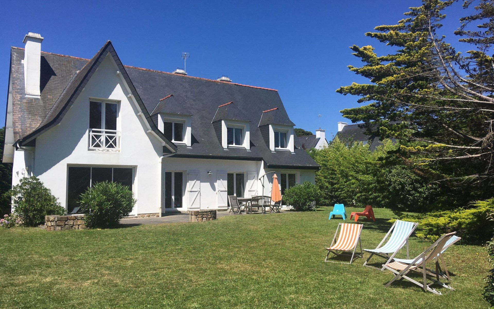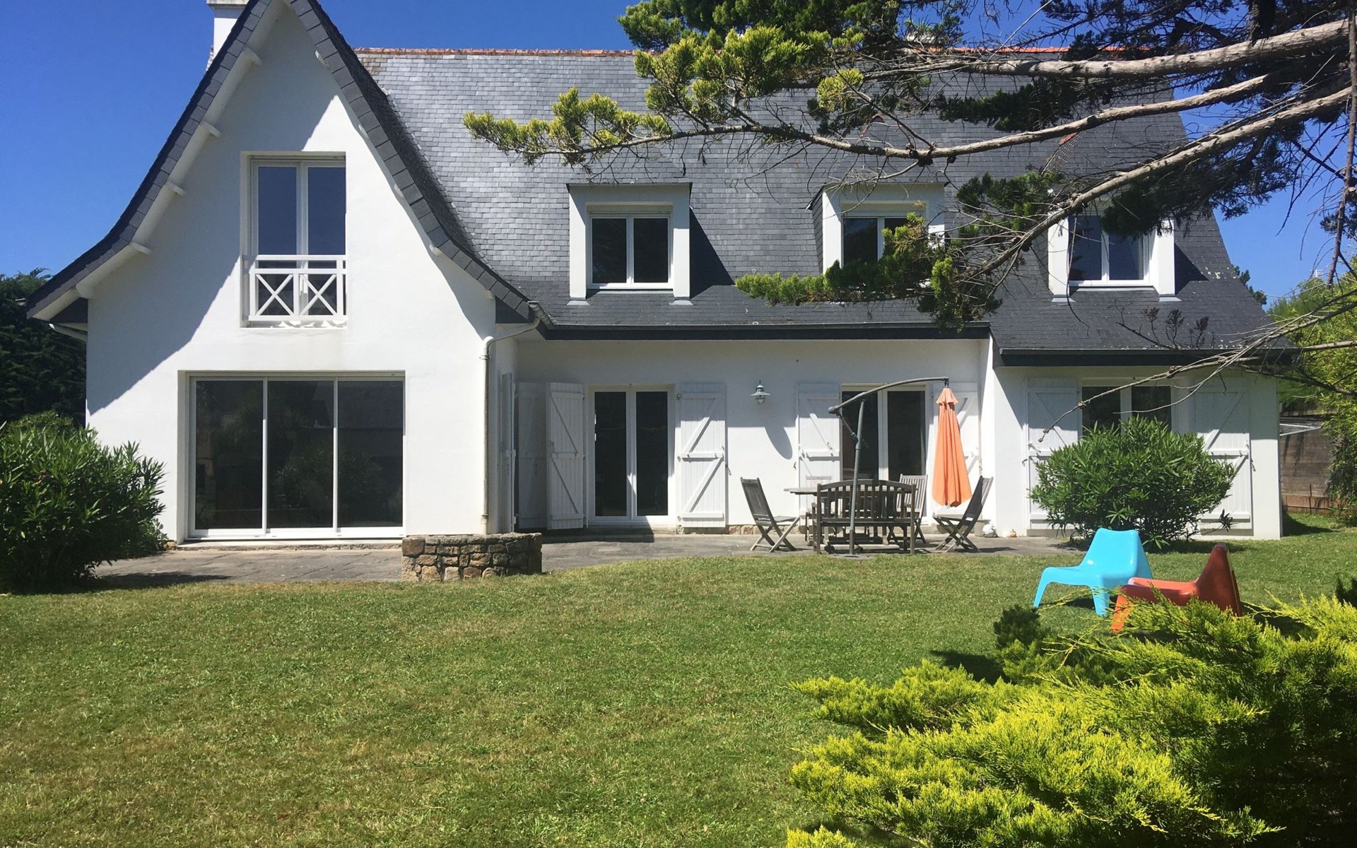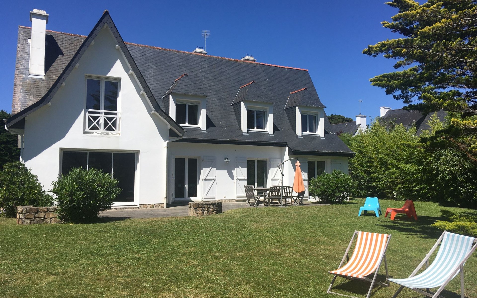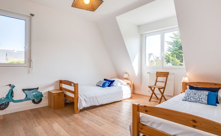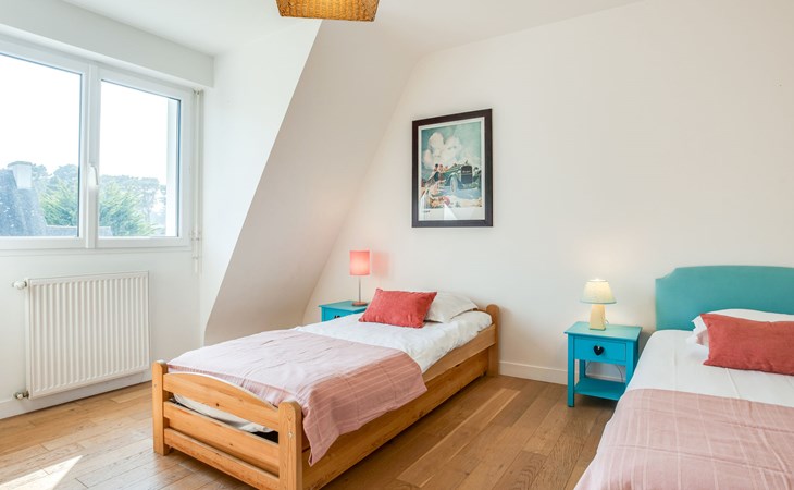 Schönes Einfamilienhaus "Maison Courlis", auf 2 Stockwerken, renoviert im Jahre 2013. Im Ort, 1.4 km vom Zentrum, in einem Wohnquartier, 300 m vom Meer, 300 m vom Strand, im Grünen, Richtung Süden. Zur Alleinbenutzung: Garten 1'000 m2 (eingezäunt). Aussendusche, Einzelgarage. Einkaufsgeschäft 1.4 km, Supermarkt 1.4 km, Restaurant 300 m, Bahnstation "Auray" 16 km. Golfplatz (18 Loch) 15 km, Segelschule 1.4 km. Nahe gelegene Sehenswürdigkeiten: Alignements de Carnac 4 km, La Trinité sur Mer 6 km, Presqu'île de Quiberon 15 km, Vannes 34 km.