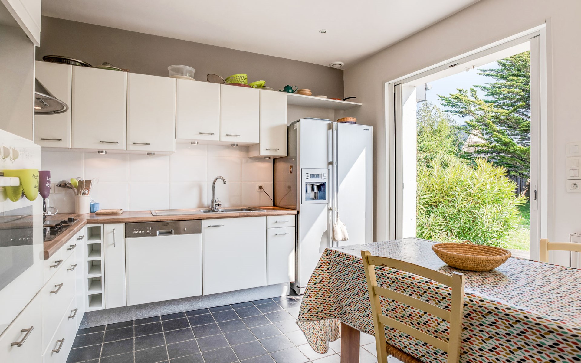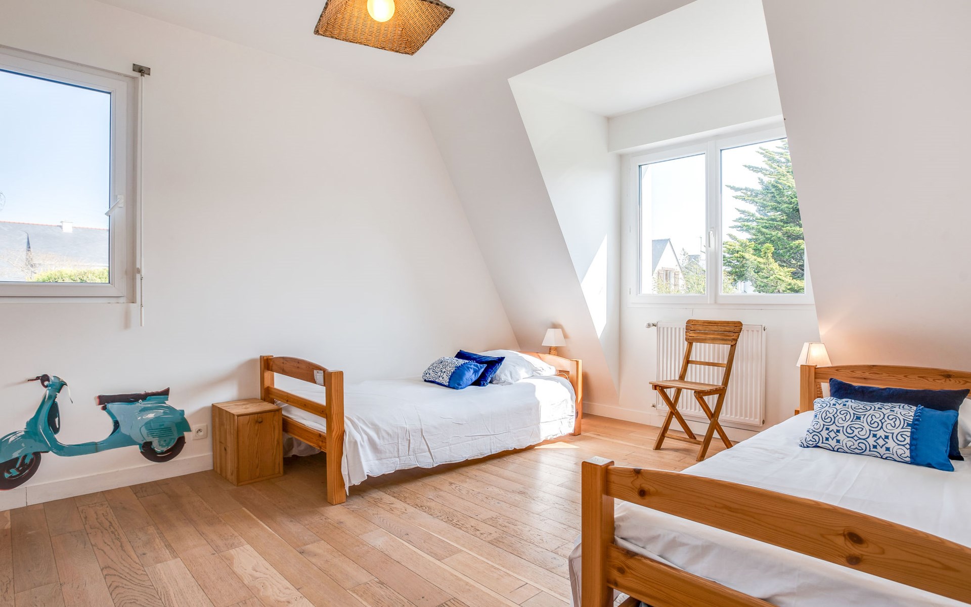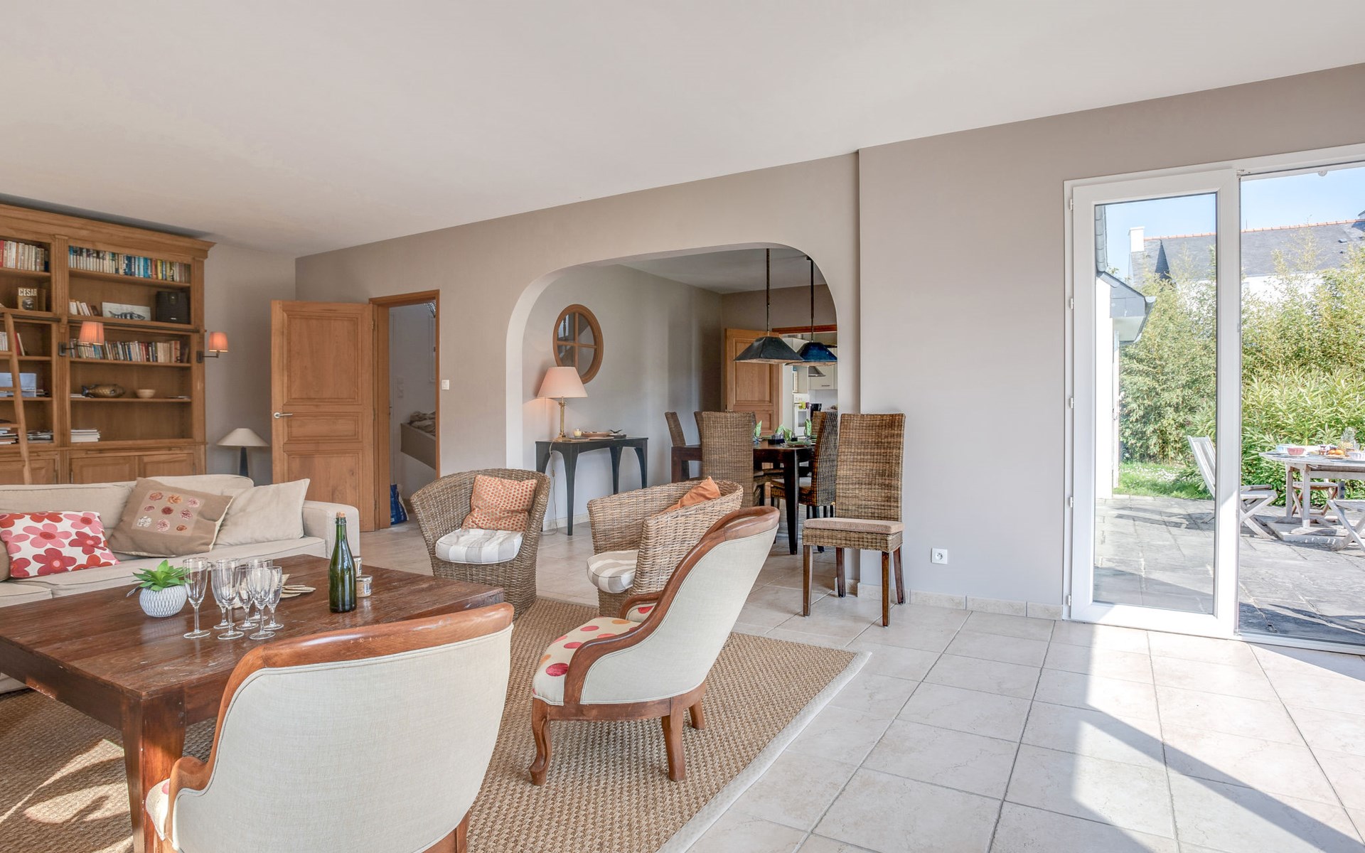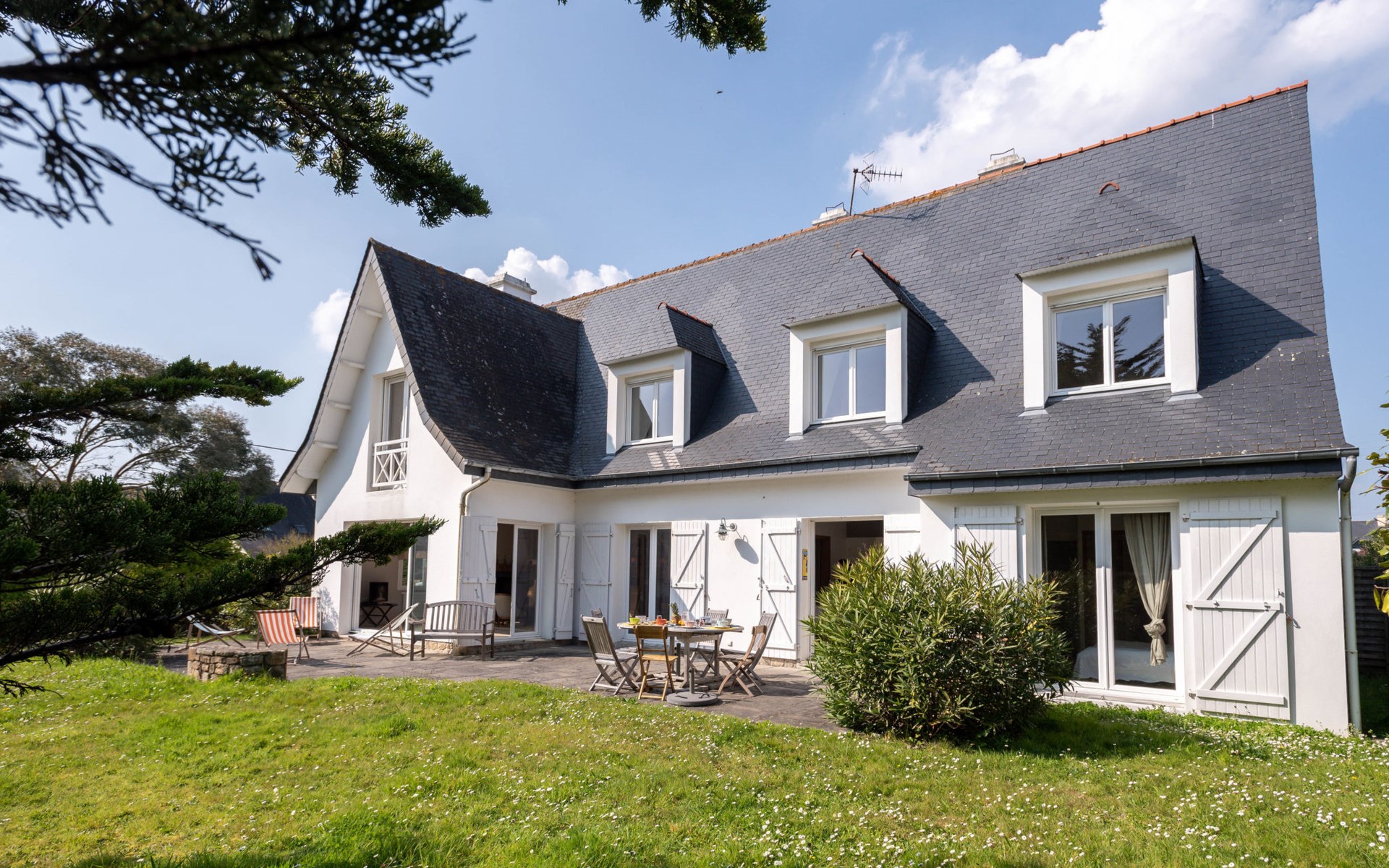 Schönes Einfamilienhaus "Maison Courlis", auf 2 Stockwerken, renoviert im Jahre 2013. Im Ort, 1.4 km vom Zentrum, in einem Wohnquartier, 300 m vom Meer, 300 m vom Strand, im Grünen, Richtung Süden. Zur Alleinbenutzung: Garten 1'000 m2 (eingezäunt). Aussendusche, Einzelgarage. Einkaufsgeschäft 1.4 km, Supermarkt 1.4 km, Restaurant 300 m, Bahnstation "Auray" 16 km. Golfplatz (18 Loch) 15 km, Segelschule 1.4 km. Nahe gelegene Sehenswürdigkeiten: Alignements de Carnac 4 km, La Trinité sur Mer 6 km, Presqu'île de Quiberon 15 km, Vannes 34 km.