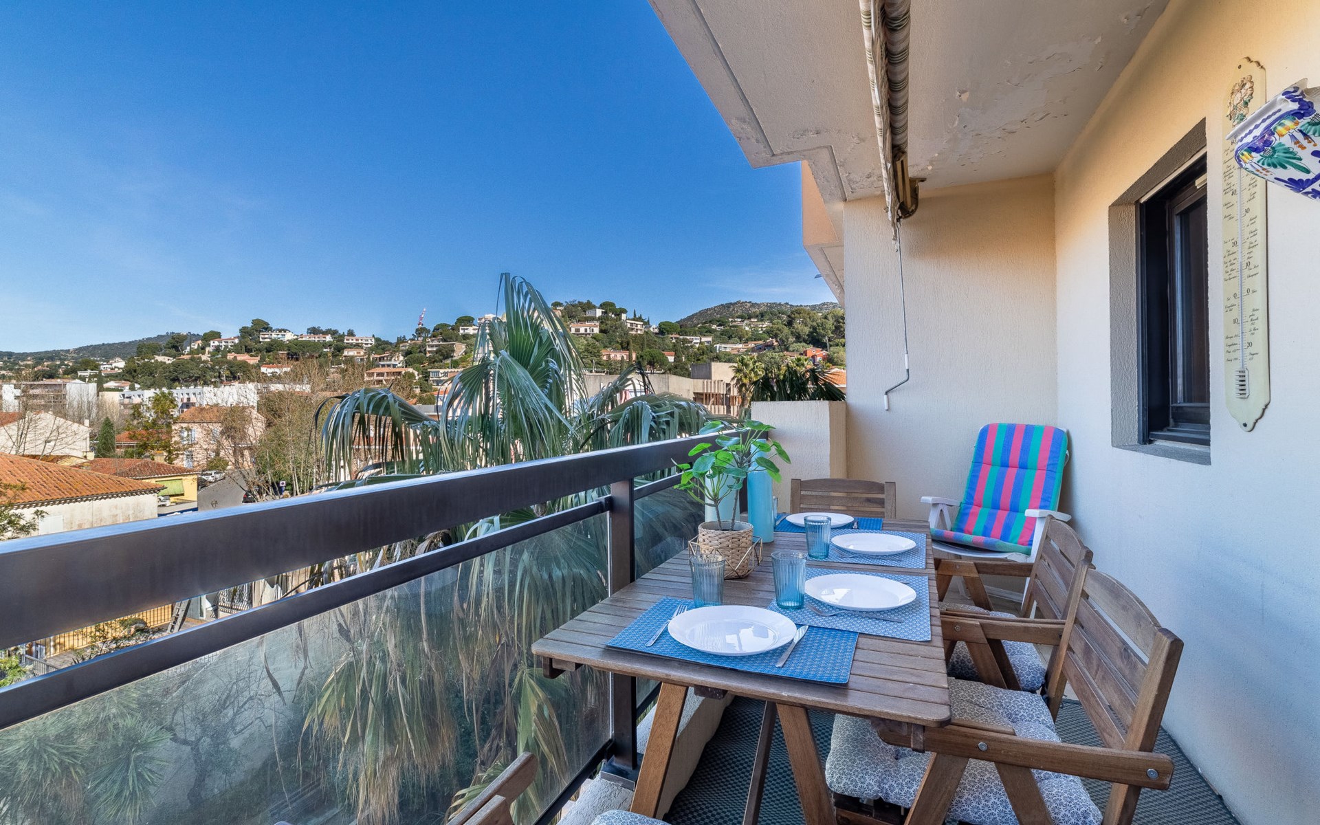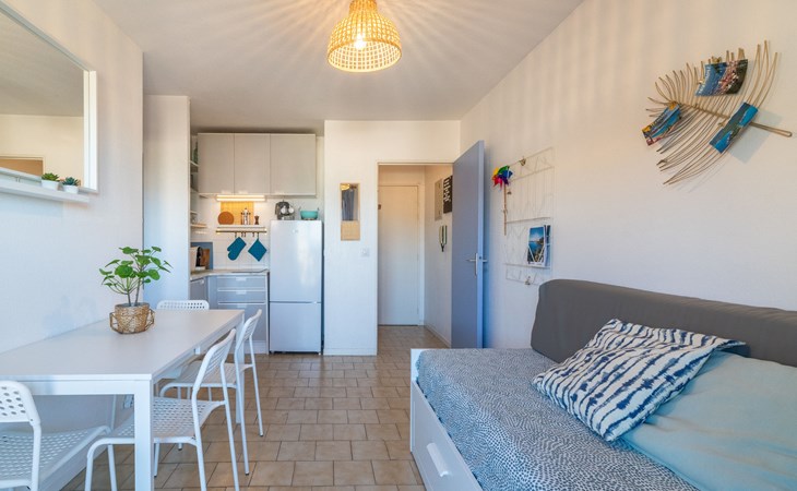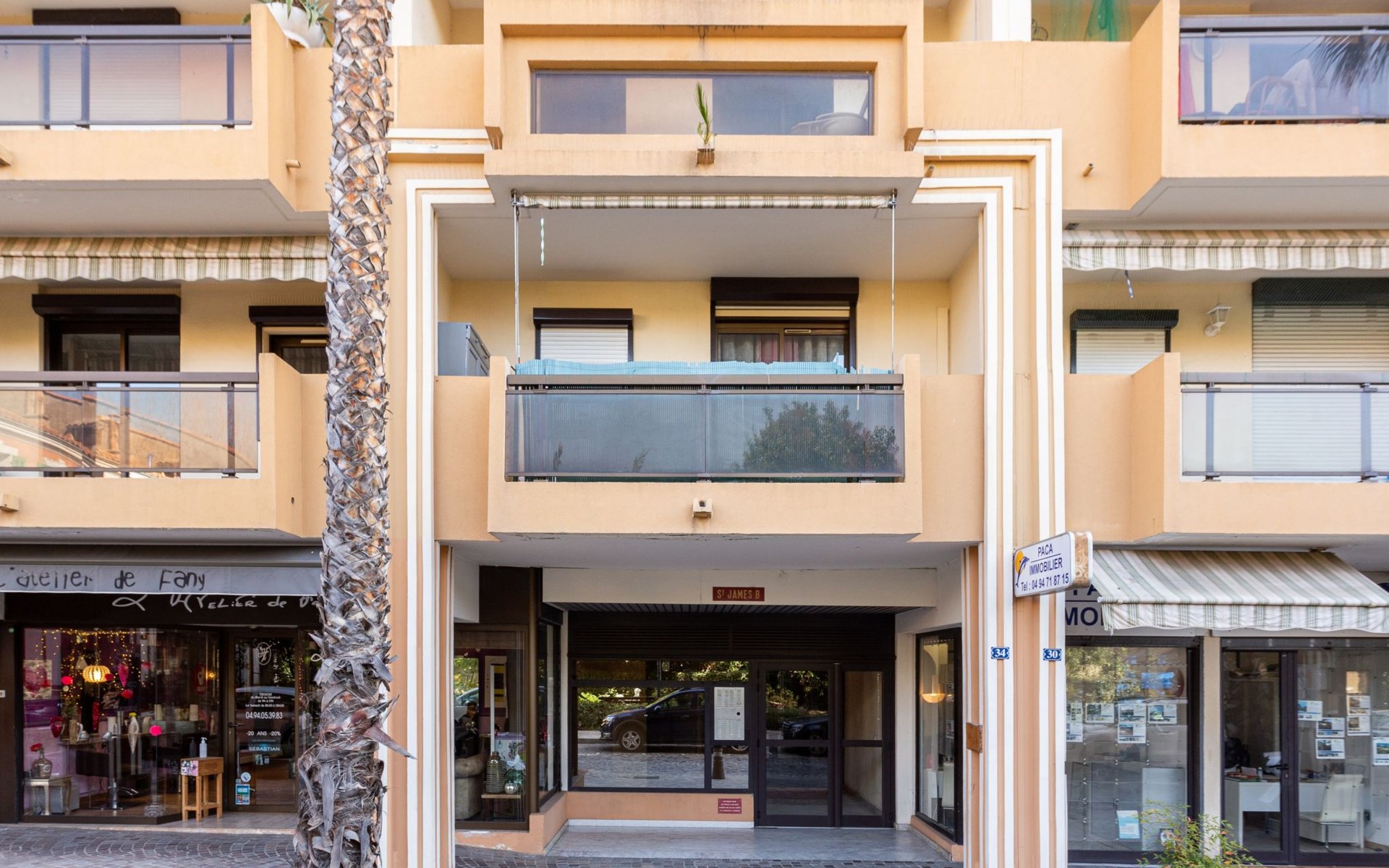 Mehrfamilienhaus "Saint James", auf 7 Stockwerken, Baujahr 1980. Im Ortszentrum von Lavandou, zentrale, belebte Lage, 200 m vom Meer, 200 m vom Strand. In der Anlage: Fahrstuhl. Öffentliche Parkplätze 200 m. Einkaufsgeschäft 80 m, Lebensmittelgeschäft 100 m, Supermarkt 900 m, Restaurant, Bar, Bäckerei, Café 50 m, Internet-Café 100 m, Bushaltestelle "Lavandou Gare routière" 150 m, Bahnstation "Hyeres" 25 km, Sandstrand "du Lavandou" 200 m, Strandbad 500 m. Sporthafen, Segelschule 600 m, Tennis 500 m, Minigolf 1 km. Nahe gelegene Sehenswürdigkeiten: Magic World 27 km, Jardin Olbus Riquier 23 km, St Tropez 37 km, Le Jardin des Méditerranées 15 km. Wandergebiete: Sentiers du Littoral. Die Schlüsselübergabe findet bei der Agentur Interhome in Le Lavandou statt. Shops im Erdgeschoss des Gebäudes. Die meisten Wohnungen verfügen über eine Nachtecke oder eine Kabine, die durchquert werden muss, um Zugang zur separaten Toilette und zum Bad zu erhalten.