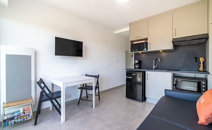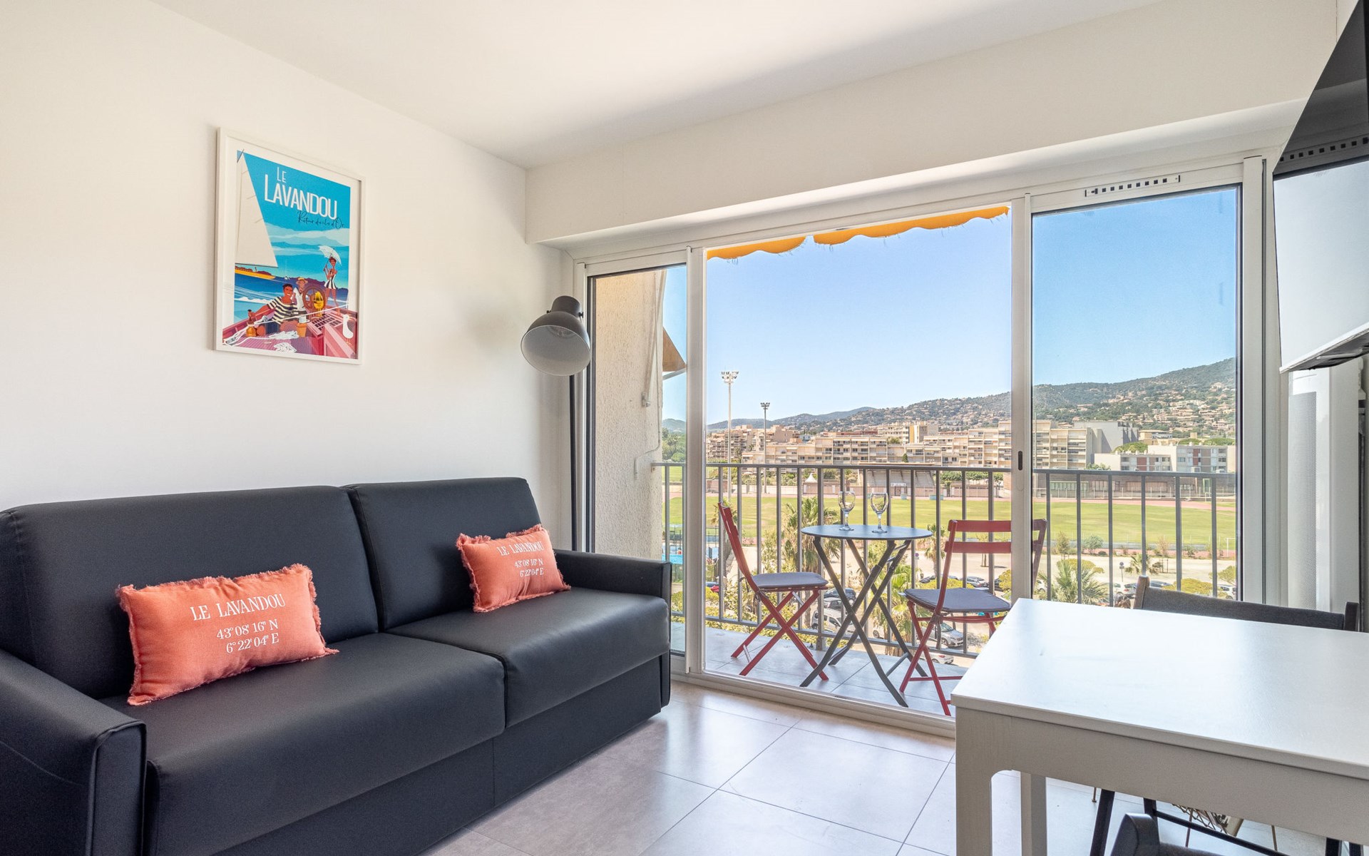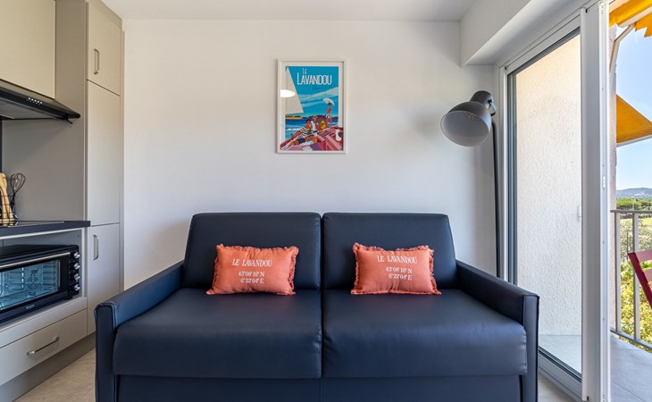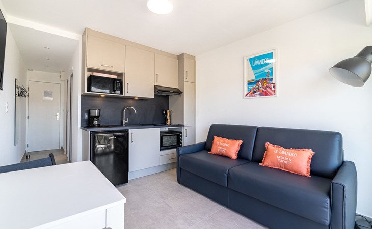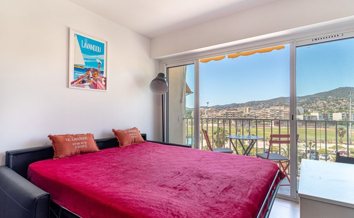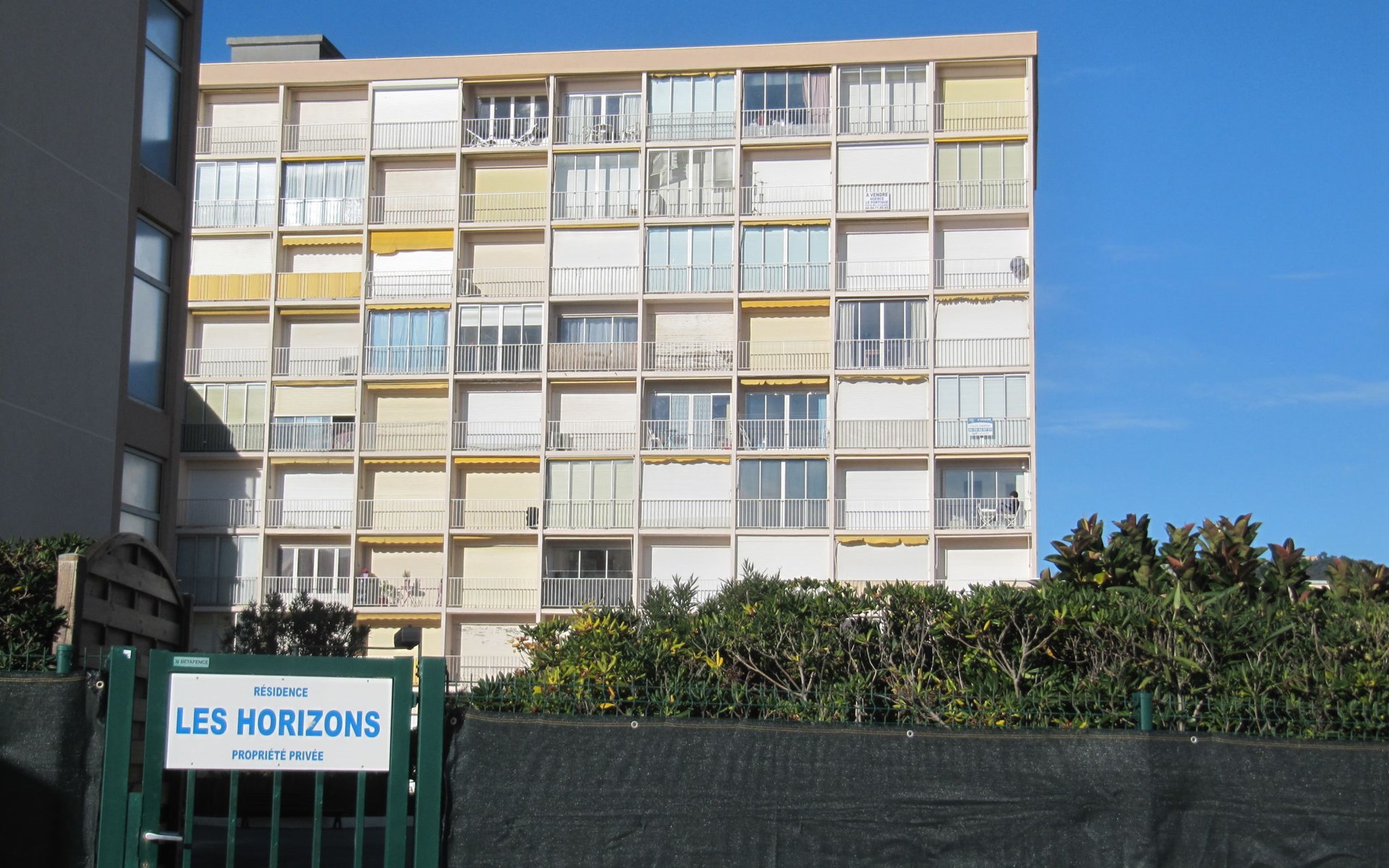 Residenz "Les Horizons", auf 8 Stockwerken. Am Ortsrand Lavandou, zentrale Lage, verkehrsberuhigte Zone, 50 m vom Meer, Strasse zu überqueren, direkter Zugang zum Strand. Zur Mitbenutzung: gepflegter Garten Pflanzen und Blumen. Tennis (extra), Boccia. Im Hause: Fahrstuhl, Einstellraum für Fahrräder. Parkplatz (beschränkte Anzahl), öffentliche Parkplätze 50 m. Einkaufsgeschäft, Lebensmittelgeschäft 100 m, Supermarkt 250 m, Restaurant, Bar 50 m, Bäckerei 150 m, Café 50 m, Fahrradverleih 450 m, Zentrum zu Fuss in 10 Minuten erreichbar, Bushaltestelle "Lavandou Gare routière" 500 m, Sandstrand "L'Anglade" 50 m. Sporthafen 1 km, Golfplatz (18 Loch) 16 km, Segelschule 900 m, Tennis 100 m, Minigolf 700 m, Kinderspielplatz 700 m. Nahe gelegene Sehenswürdigkeiten: Magic World 26 km, Parc Olbius Riquier 22 km, Saint Tropez 40 km, Le Jardin des Méditerranées 15 km. Wandergebiete: Sentier du littoral 3 km. Die Residenz wird durch elektrische Tore geschlossen. Die Schlüsselübergabe findet bei der Agentur Interhome in Le Lavandou statt.