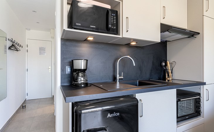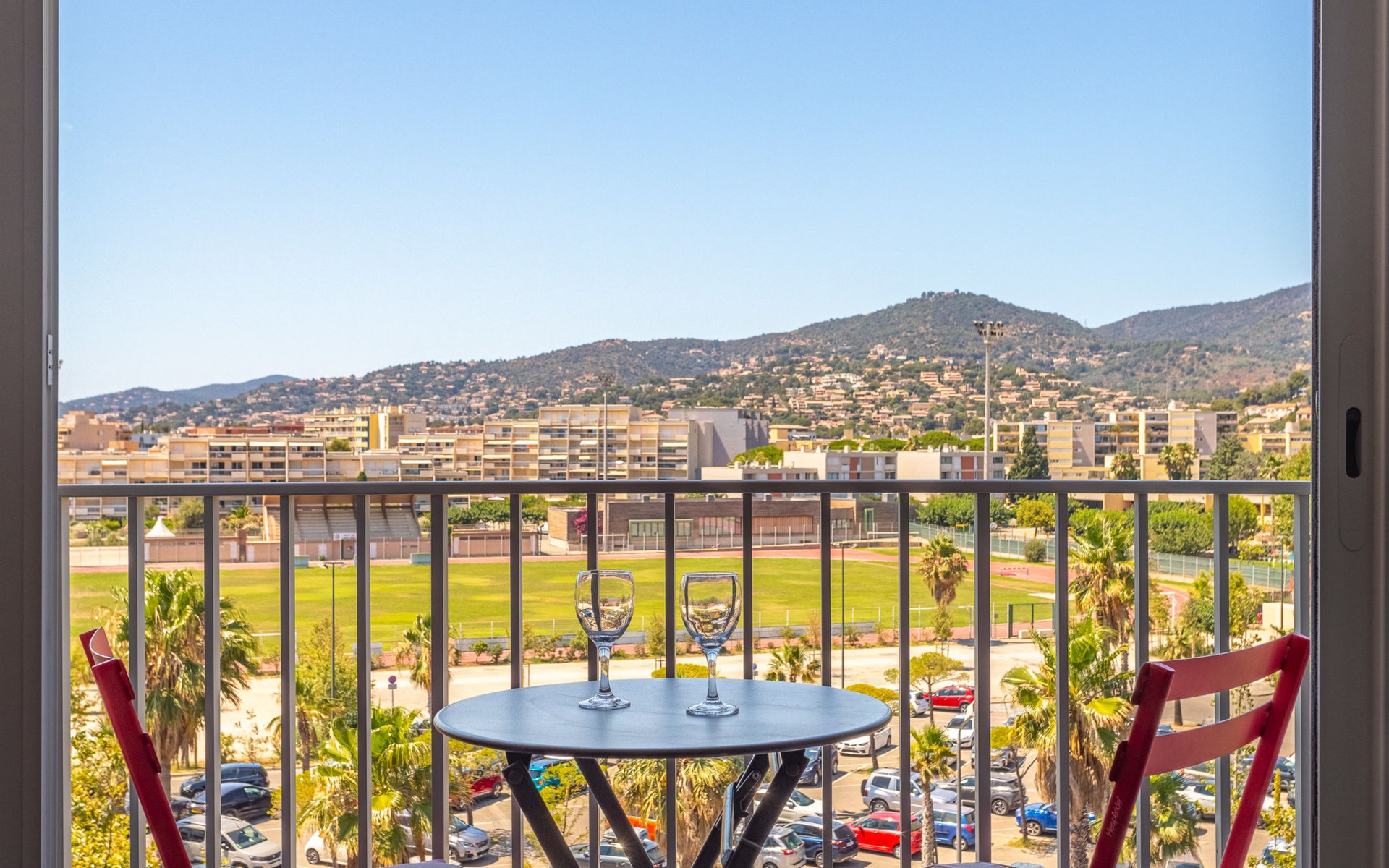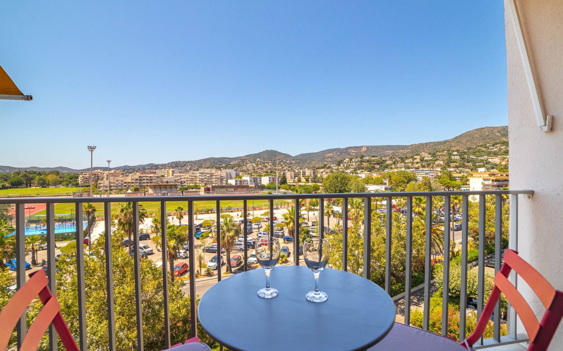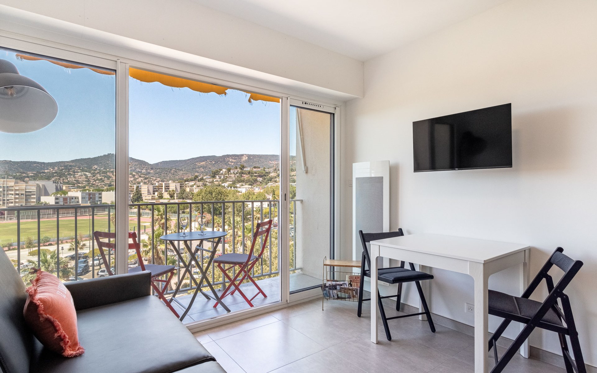 Residenz "Les Horizons", auf 8 Stockwerken. Am Ortsrand Lavandou, zentrale Lage, verkehrsberuhigte Zone, 50 m vom Meer, Strasse zu überqueren, direkter Zugang zum Strand. Zur Mitbenutzung: gepflegter Garten Pflanzen und Blumen. Tennis (extra), Boccia. Im Hause: Fahrstuhl, Einstellraum für Fahrräder. Parkplatz (beschränkte Anzahl), öffentliche Parkplätze 50 m. Einkaufsgeschäft, Lebensmittelgeschäft 100 m, Supermarkt 250 m, Restaurant, Bar 50 m, Bäckerei 150 m, Café 50 m, Fahrradverleih 450 m, Zentrum zu Fuss in 10 Minuten erreichbar, Bushaltestelle "Lavandou Gare routière" 500 m, Sandstrand "L'Anglade" 50 m. Sporthafen 1 km, Golfplatz (18 Loch) 16 km, Segelschule 900 m, Tennis 100 m, Minigolf 700 m, Kinderspielplatz 700 m. Nahe gelegene Sehenswürdigkeiten: Magic World 26 km, Parc Olbius Riquier 22 km, Saint Tropez 40 km, Le Jardin des Méditerranées 15 km. Wandergebiete: Sentier du littoral 3 km. Die Residenz wird durch elektrische Tore geschlossen. Die Schlüsselübergabe findet bei der Agentur Interhome in Le Lavandou statt.