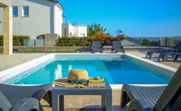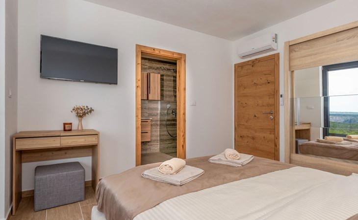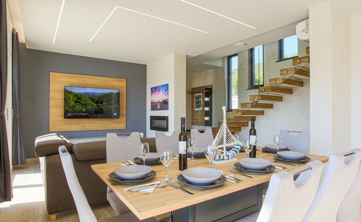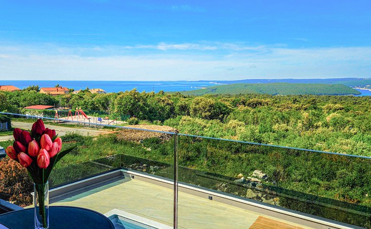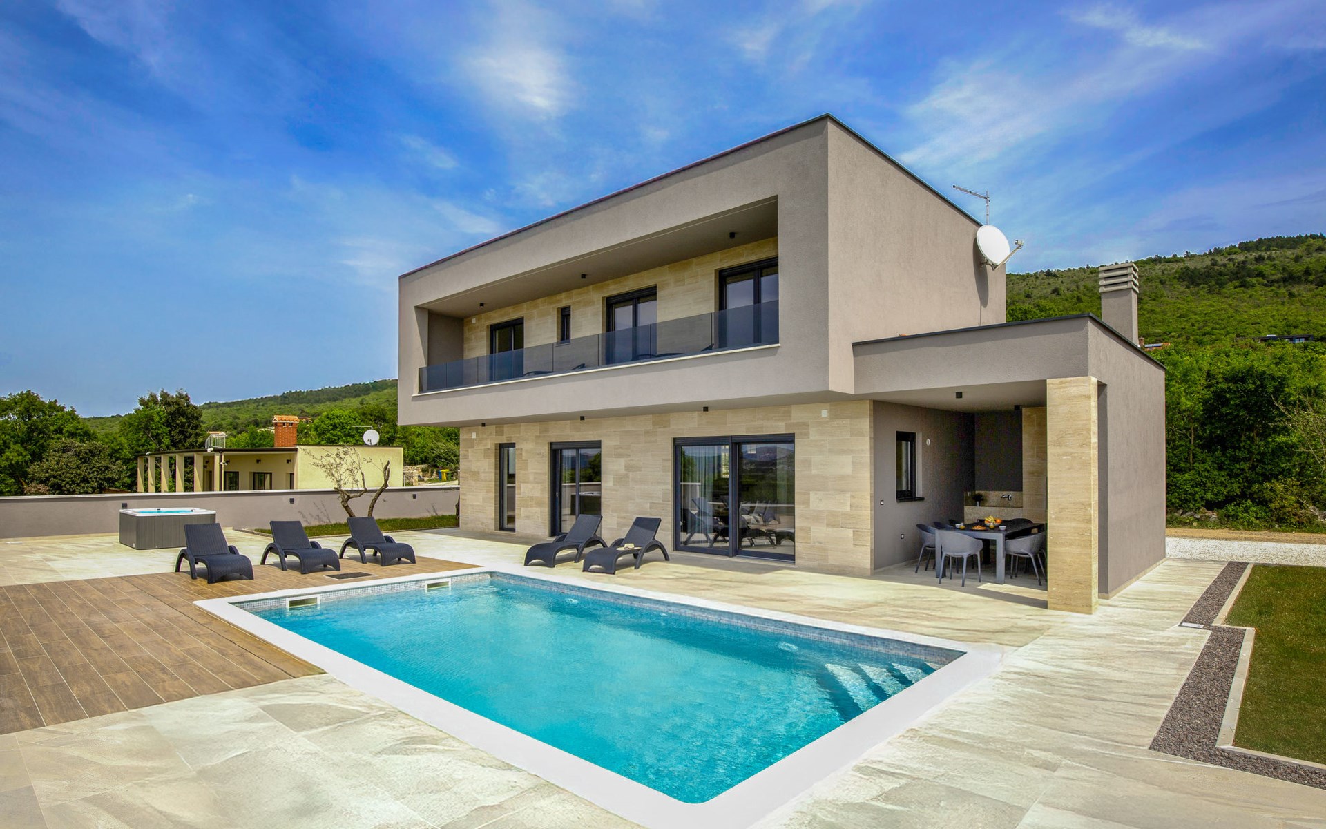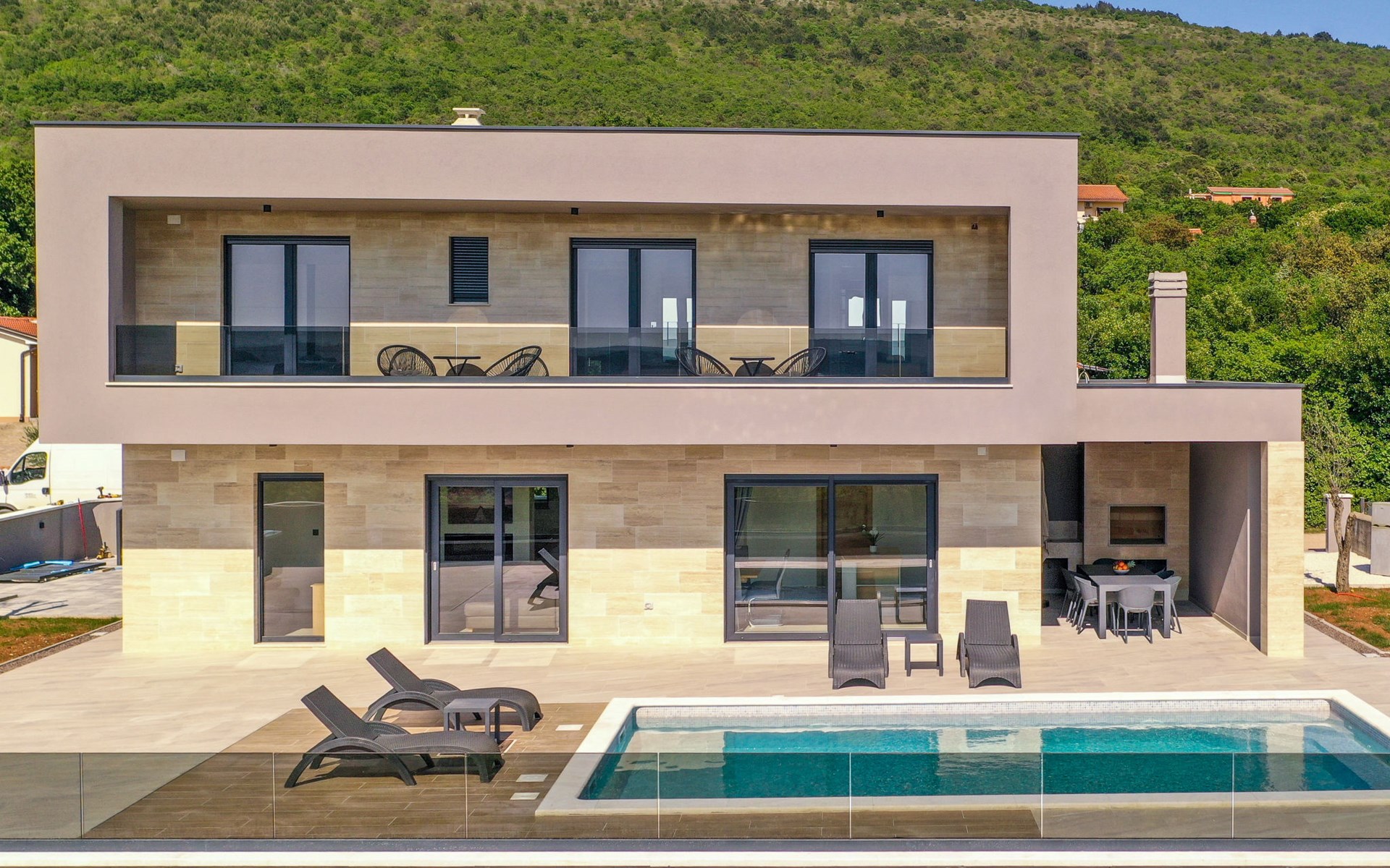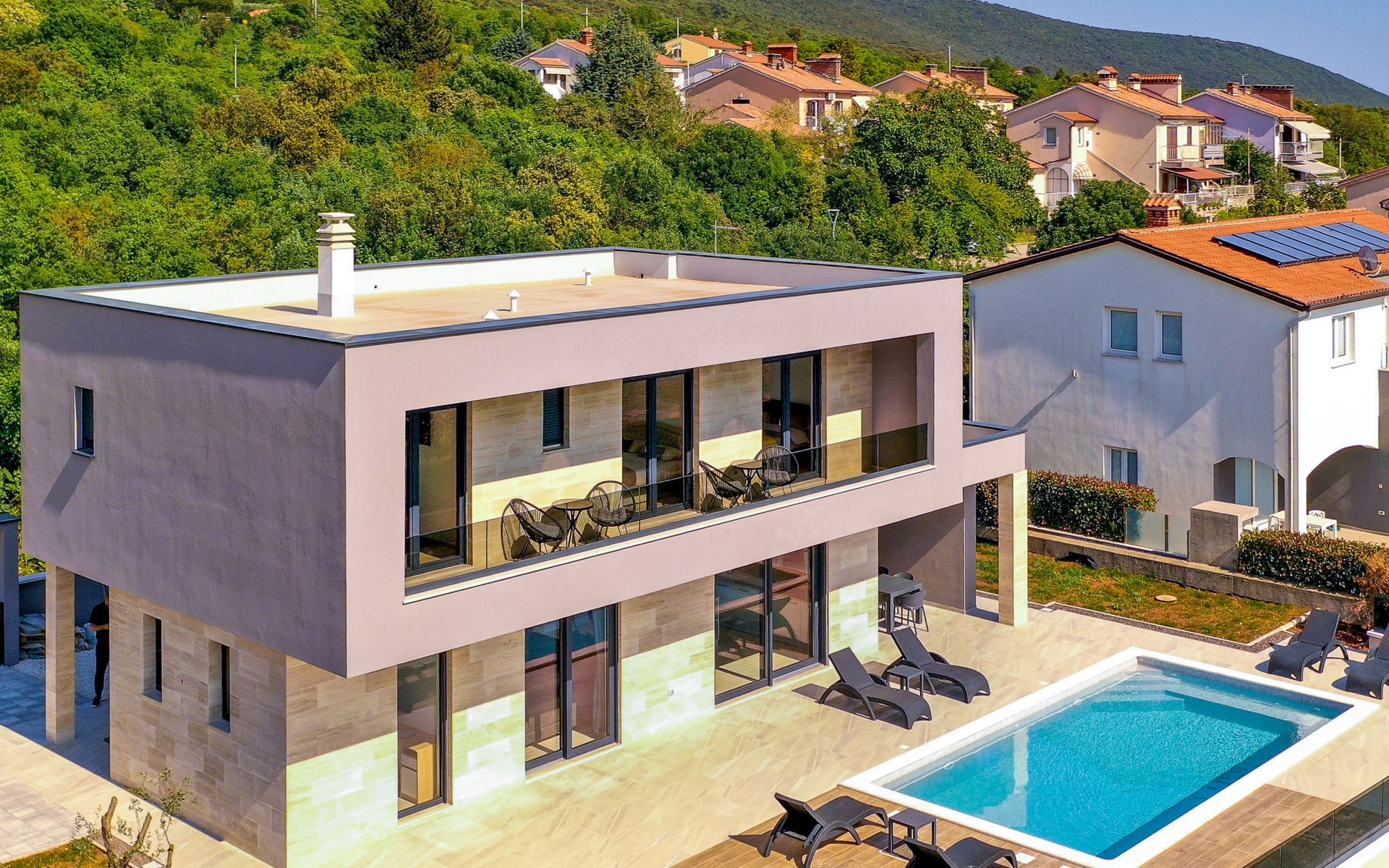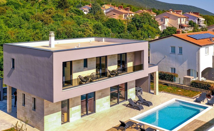 Schöne Villa "Lejla", auf 2 Stockwerken. Im Weiler Viškovići, 15 km vom Zentrum von Labin, ruhige, sonnige Lage, 2 km vom Meer, 2 km vom Strand. Zur Alleinbenutzung: Grundstück 720 m2 (eingezäunt), Garten, Schwimmbad eckig (8 x 4 m, 140 cm tief, saisonale Verfügbarkeit: 01.Apr. - 02.Nov.) mit Innentreppe. Aussendusche, Gartenmöbel, Grill. Im Hause: Internetzugang, Sprudelbad, Waschmaschine. Parkplatz (für 3 Autos) beim Haus auf dem Grundstück. Einkaufsgeschäft 3 km, Restaurant 3 km, Bushaltestelle 16.6 km, Sandstrand 2 km, Kieselstrand 2 km. Jacht-Hafen 2 km, Wanderwege ab Haus 200 m, Radweg 250 m. Jugendgruppen nur auf Anfrage.