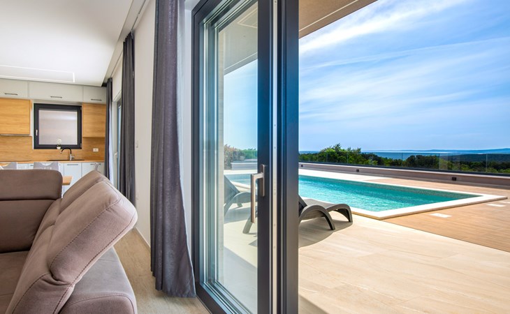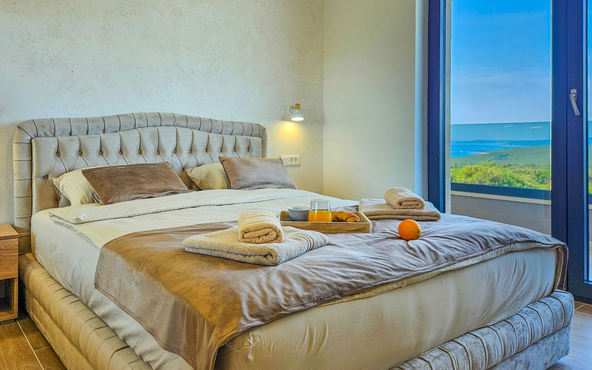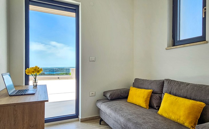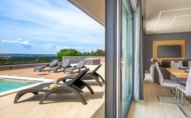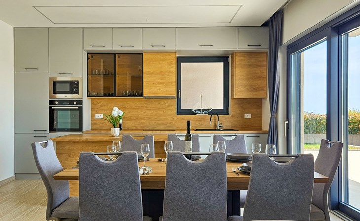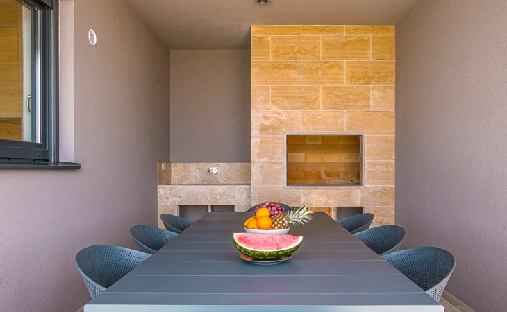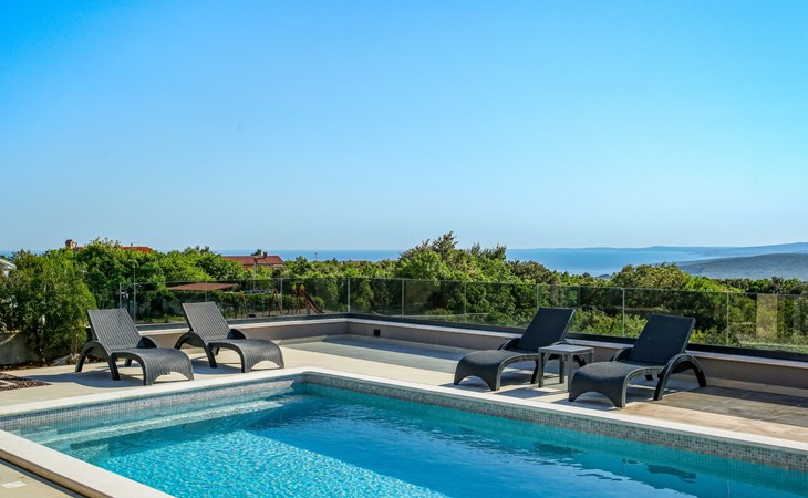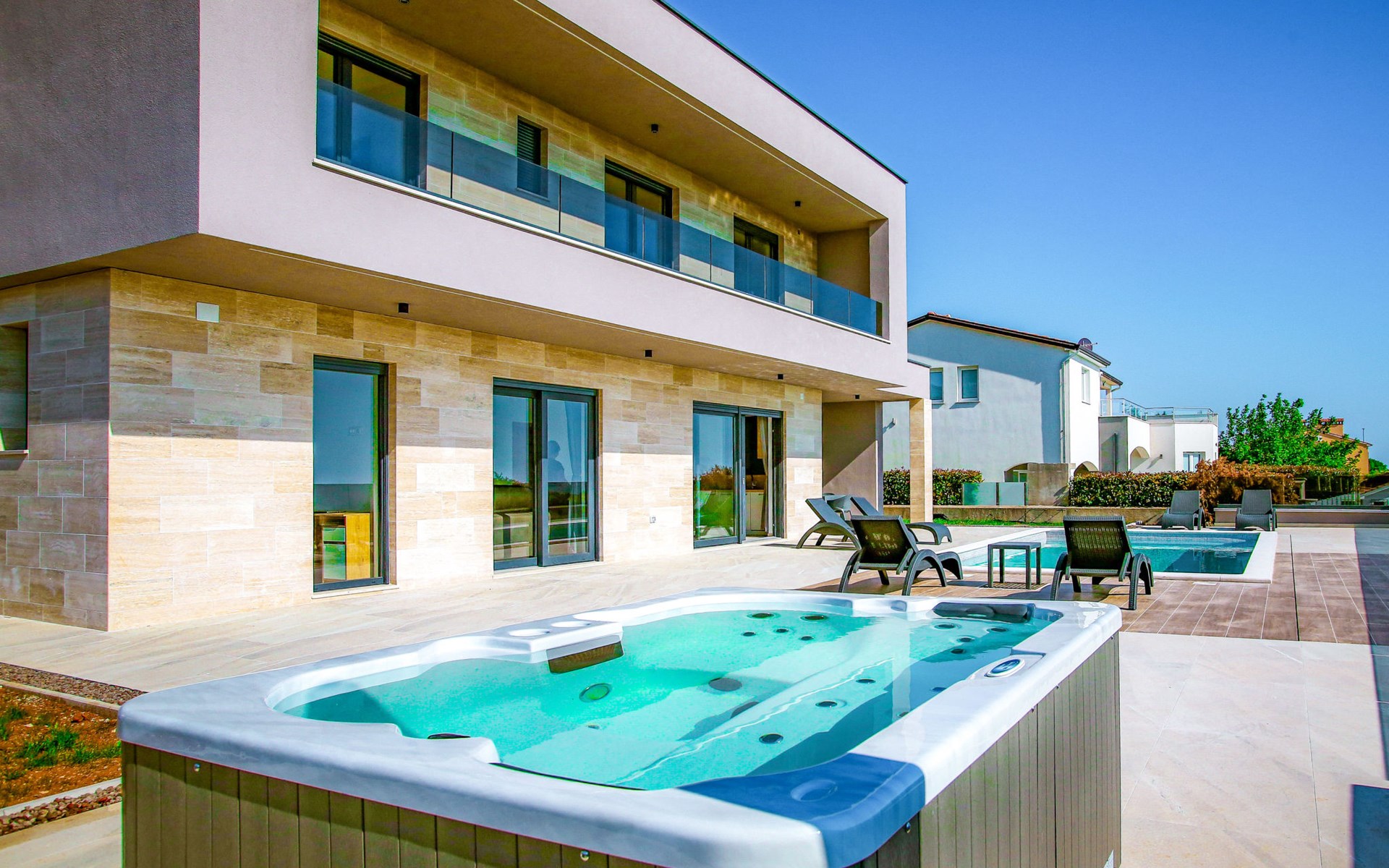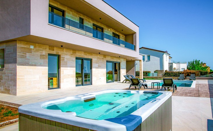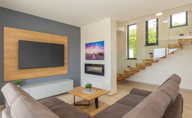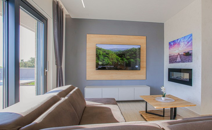Schöne Villa "Lejla", auf 2 Stockwerken. Im Weiler Viškovići, 15 km vom Zentrum von Labin, ruhige, sonnige Lage, 2 km vom Meer, 2 km vom Strand. Zur Alleinbenutzung: Grundstück 720 m2 (eingezäunt), Garten, Schwimmbad eckig (8 x 4 m, 140 cm tief, saisonale Verfügbarkeit: 01.Apr. - 02.Nov.) mit Innentreppe. Aussendusche, Gartenmöbel, Grill. Im Hause: Internetzugang, Sprudelbad, Waschmaschine. Parkplatz (für 3 Autos) beim Haus auf dem Grundstück. Einkaufsgeschäft 3 km, Restaurant 3 km, Bushaltestelle 16.6 km, Sandstrand 2 km, Kieselstrand 2 km. Jacht-Hafen 2 km, Wanderwege ab Haus 200 m, Radweg 250 m. Jugendgruppen nur auf Anfrage.