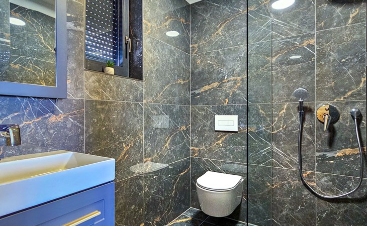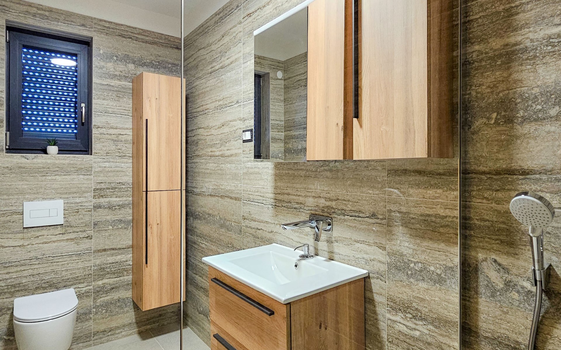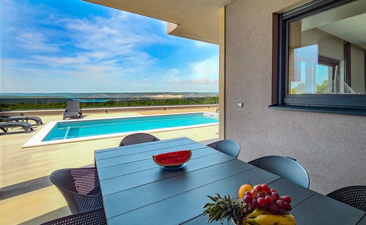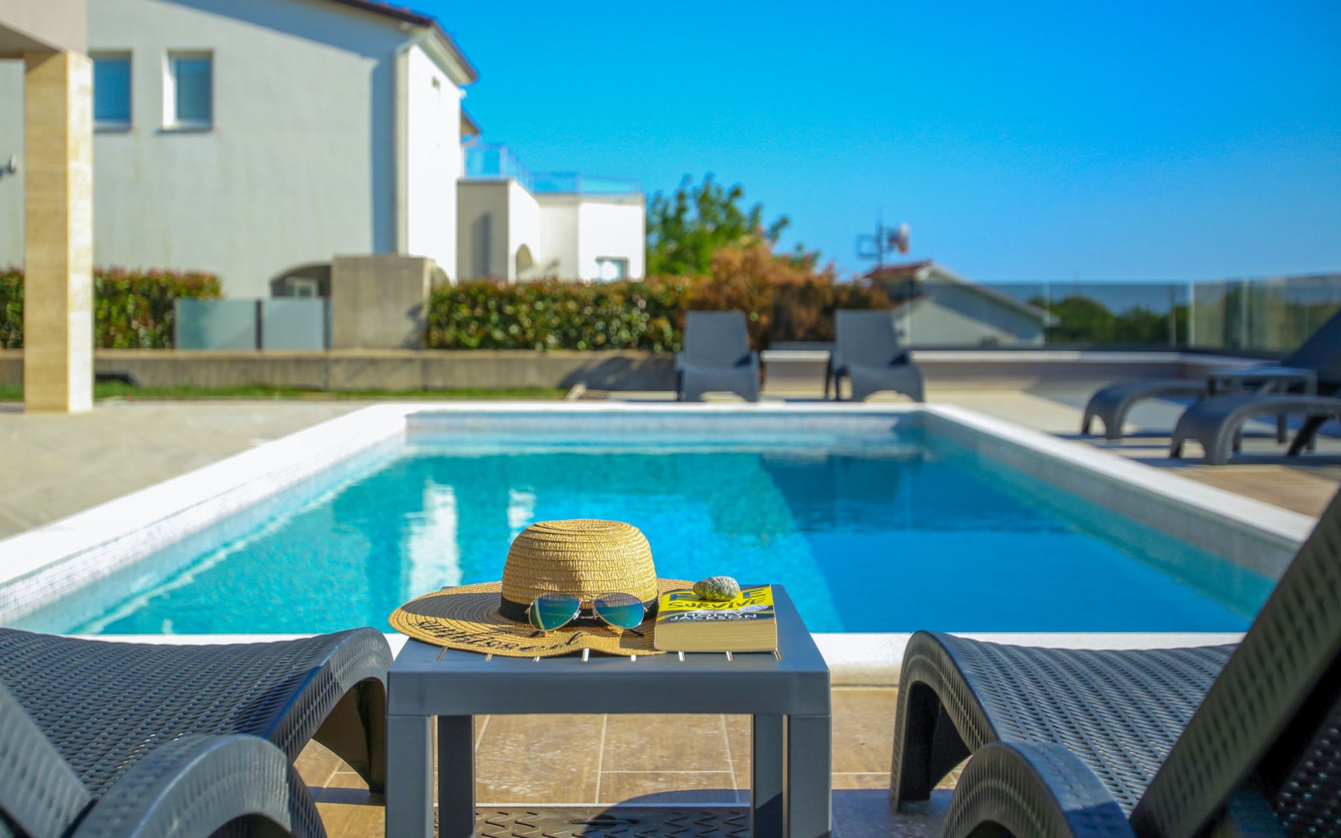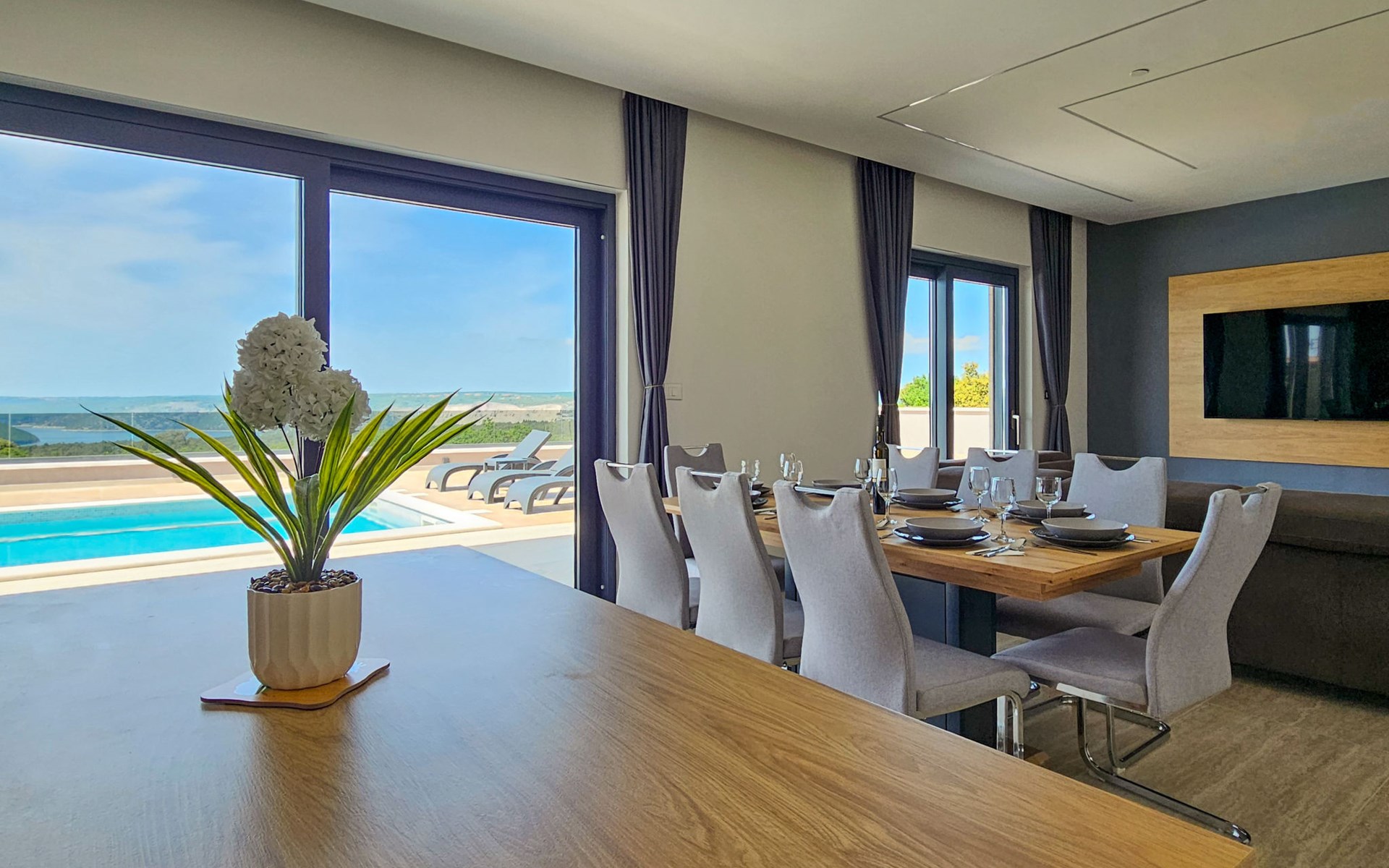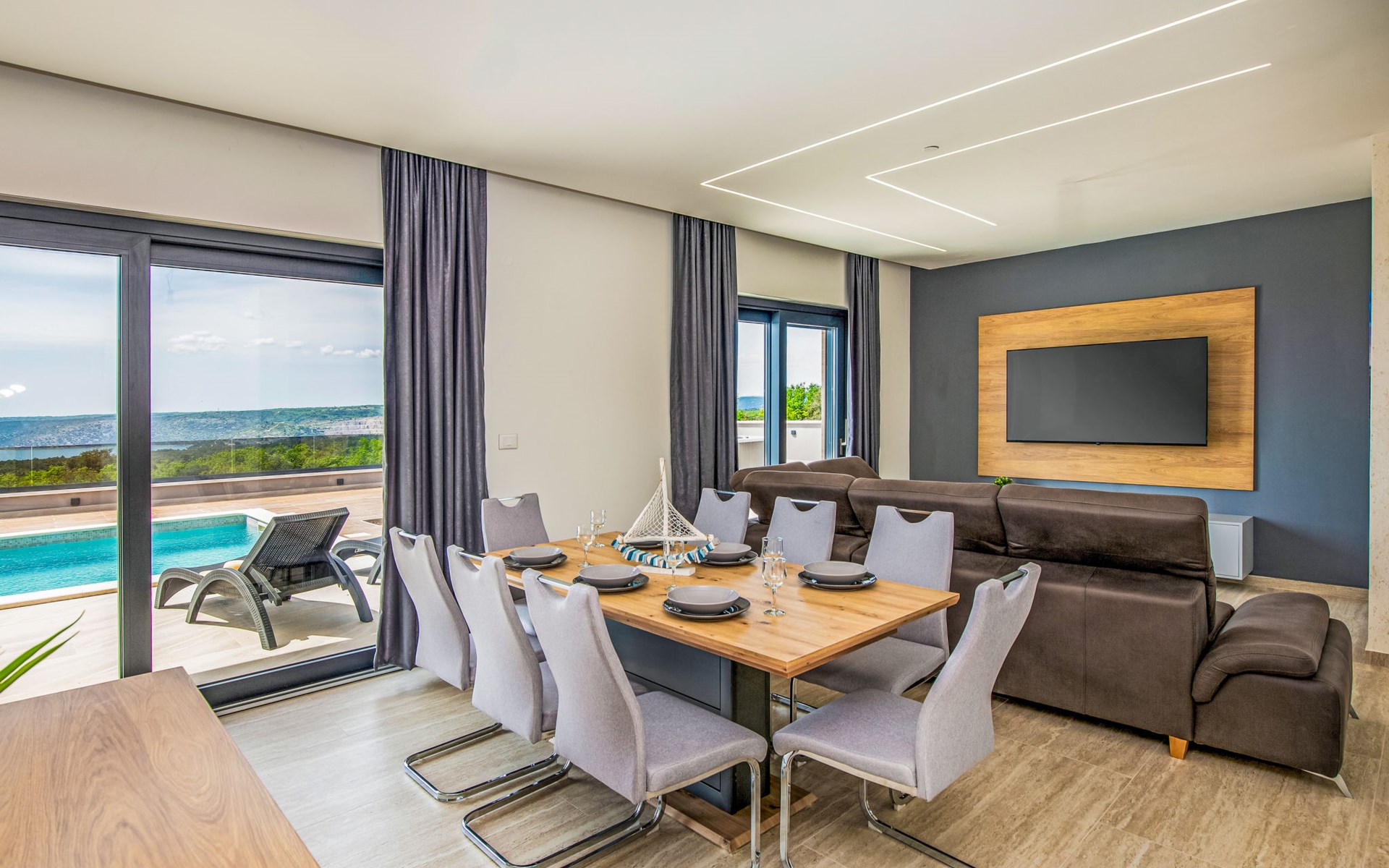 Schöne Villa "Lejla", auf 2 Stockwerken. Im Weiler Viškovići, 15 km vom Zentrum von Labin, ruhige, sonnige Lage, 2 km vom Meer, 2 km vom Strand. Zur Alleinbenutzung: Grundstück 720 m2 (eingezäunt), Garten, Schwimmbad eckig (8 x 4 m, 140 cm tief, saisonale Verfügbarkeit: 01.Apr. - 02.Nov.) mit Innentreppe. Aussendusche, Gartenmöbel, Grill. Im Hause: Internetzugang, Sprudelbad, Waschmaschine. Parkplatz (für 3 Autos) beim Haus auf dem Grundstück. Einkaufsgeschäft 3 km, Restaurant 3 km, Bushaltestelle 16.6 km, Sandstrand 2 km, Kieselstrand 2 km. Jacht-Hafen 2 km, Wanderwege ab Haus 200 m, Radweg 250 m. Jugendgruppen nur auf Anfrage.