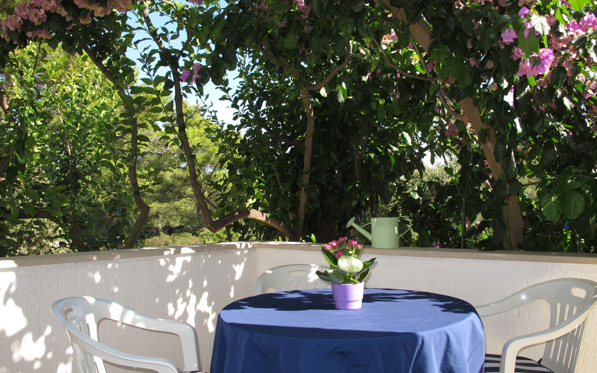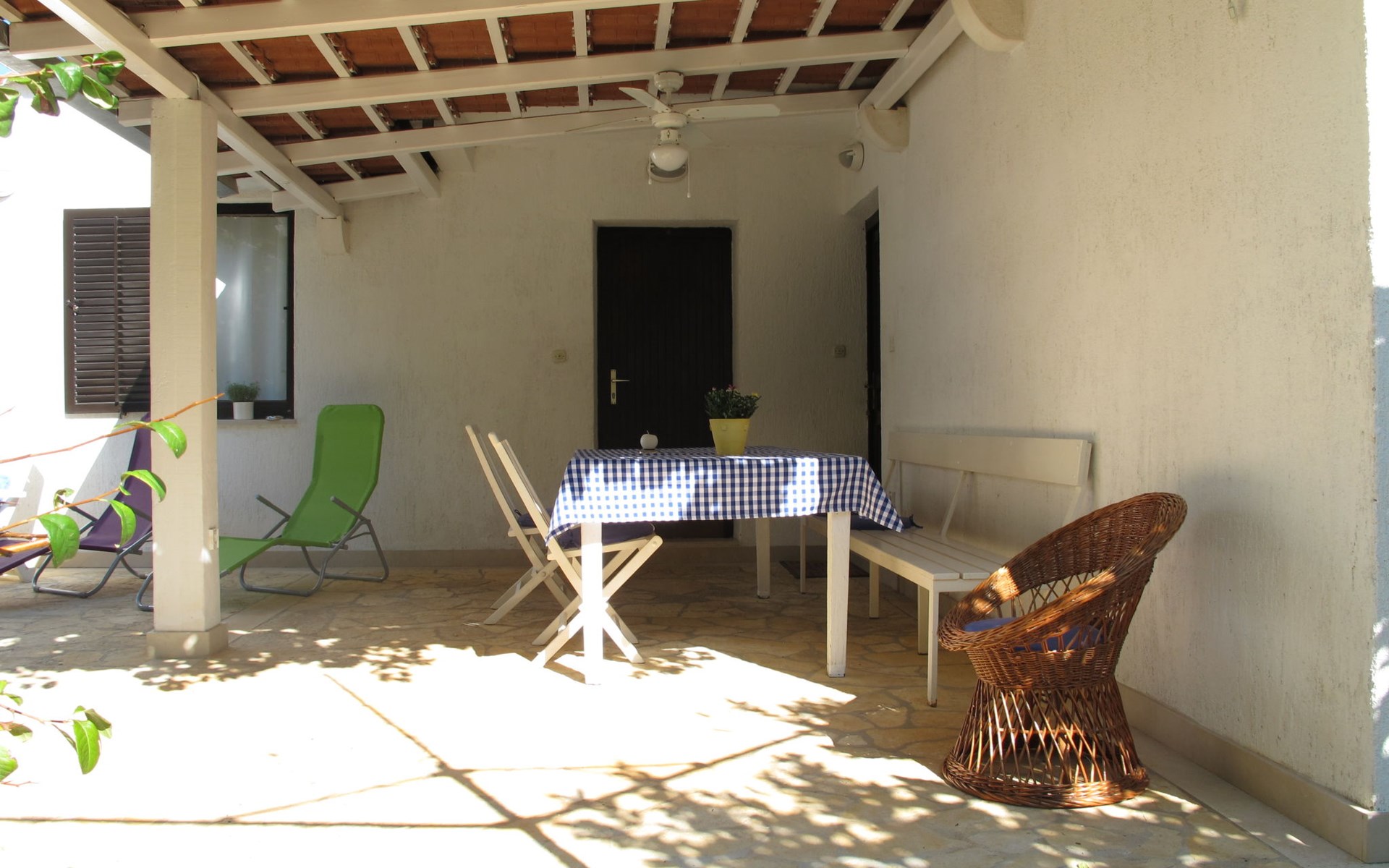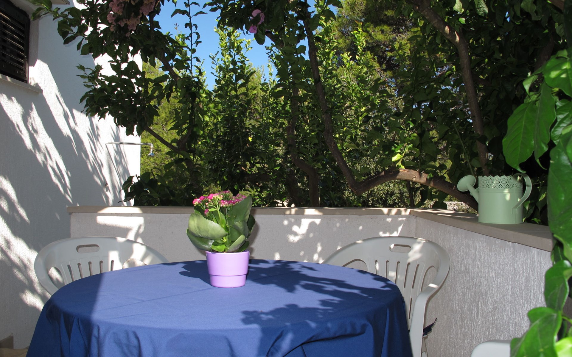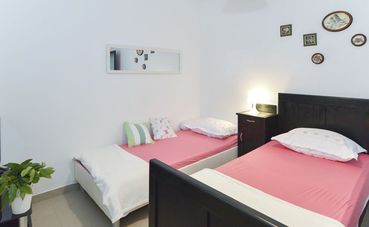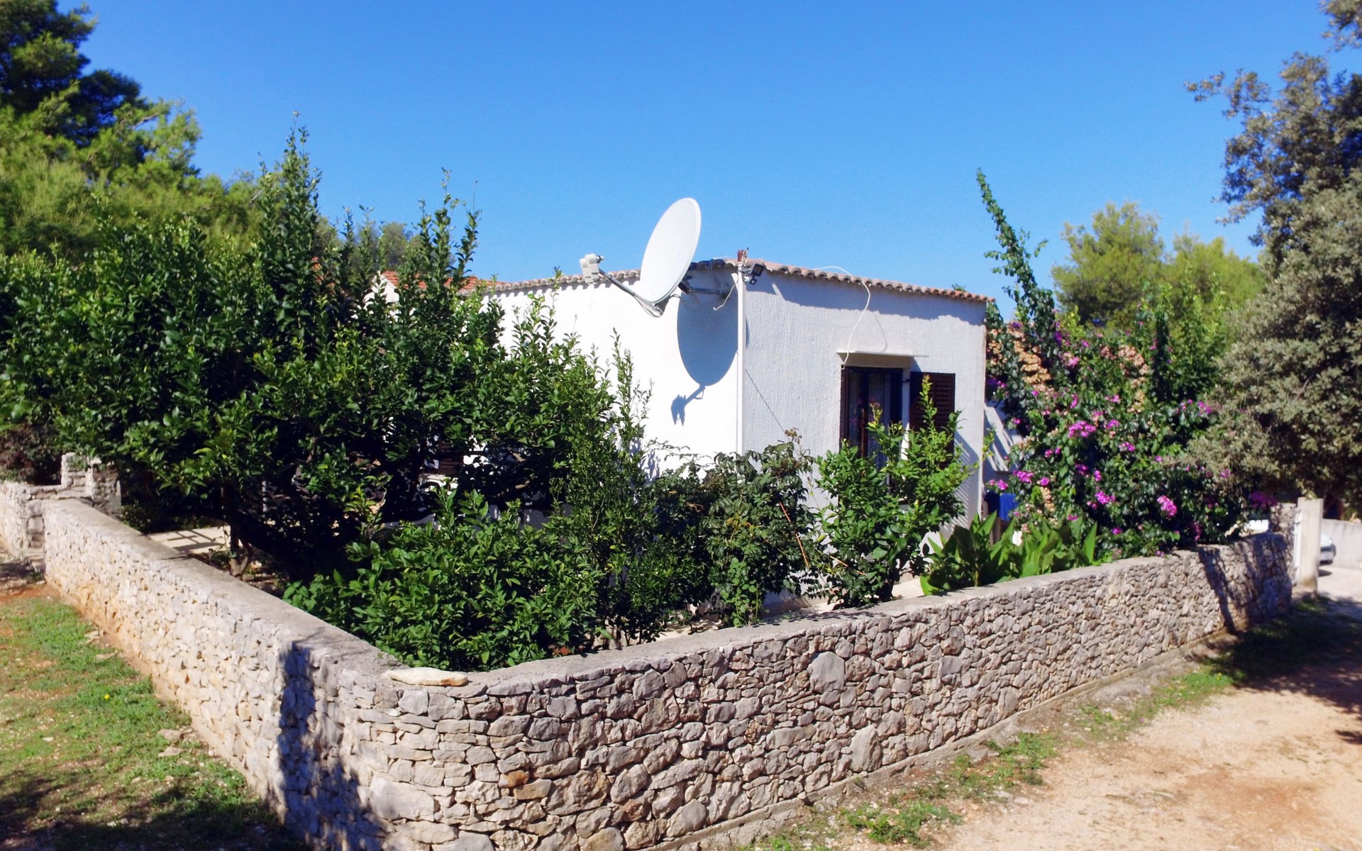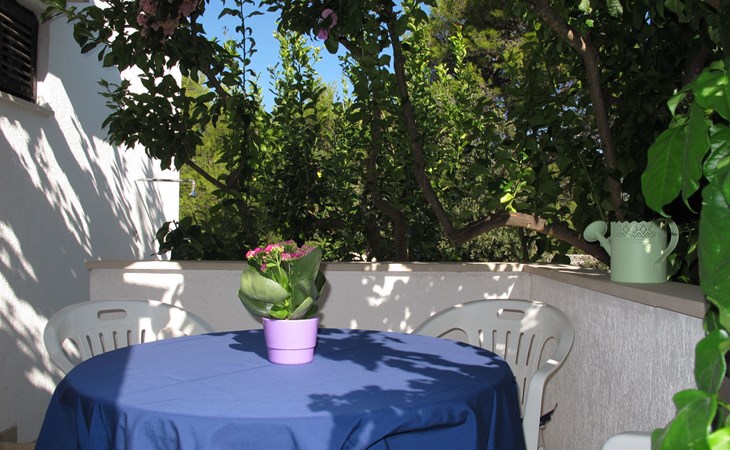Zweifamilienhaus "Lila". 300 m vom Zentrum von Mirca, 3 km vom Zentrum von Supetar, 200 m vom Meer, 200 m vom Strand. Zur Mitbenutzung: Grundstück 500 m2 (eingezäunt) mit Bäumen. Zur Alleinbenutzung: Aussendusche, Grill. Im Hause: Internetzugang. Parkplatz auf dem Grundstück. Einkaufsgeschäft 500 m, Supermarkt 1.5 km, Bushaltestelle 4.8 km, Fähre 4 km, Kieselstrand 200 m. Bitte beachten: Flugplatz 45 km vom Haus.