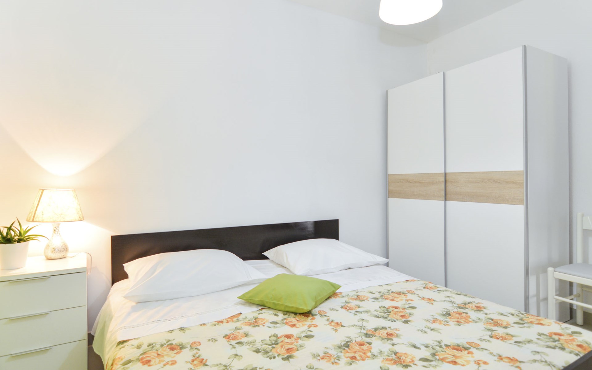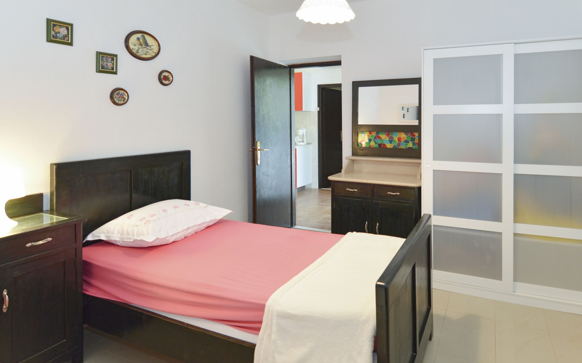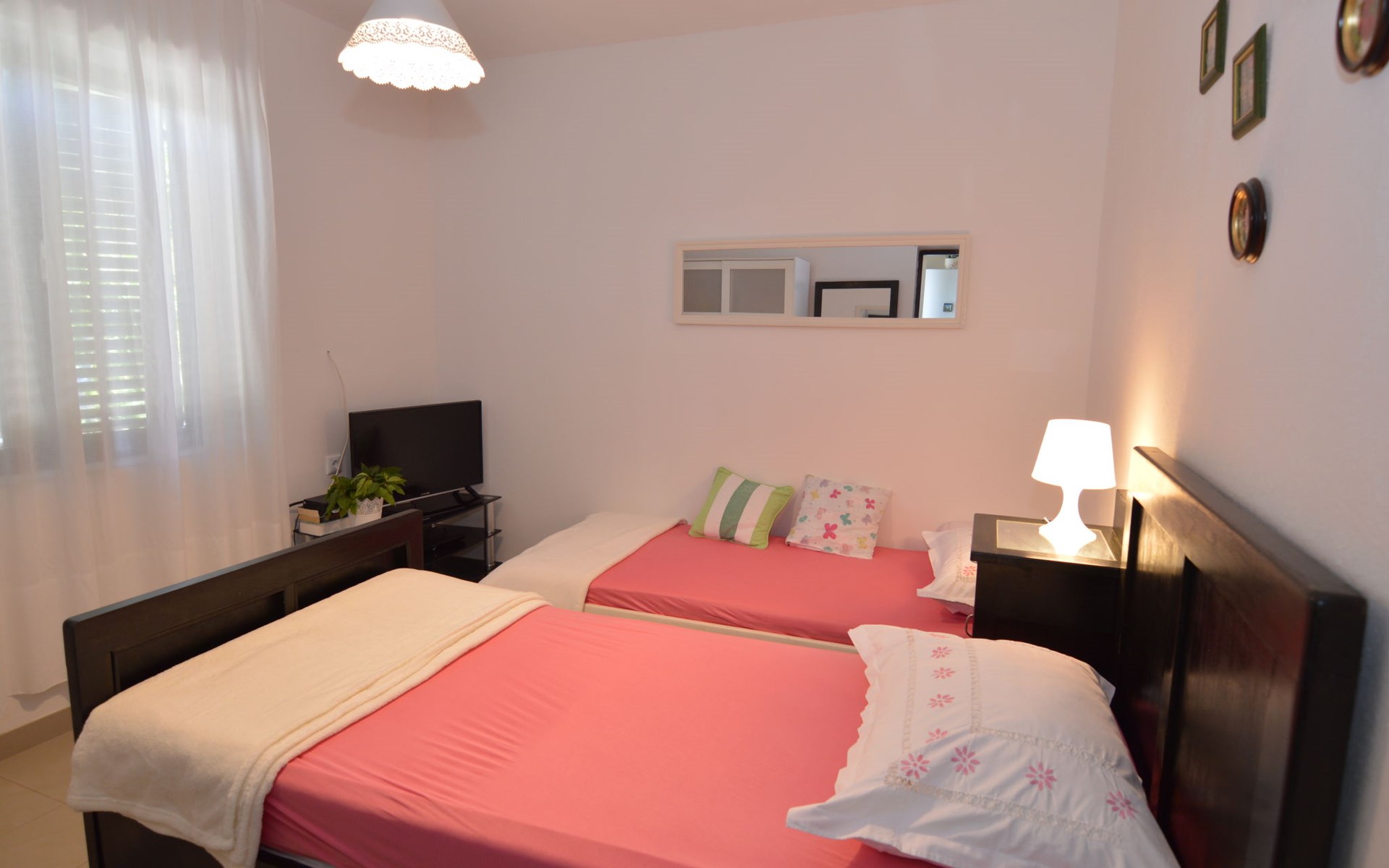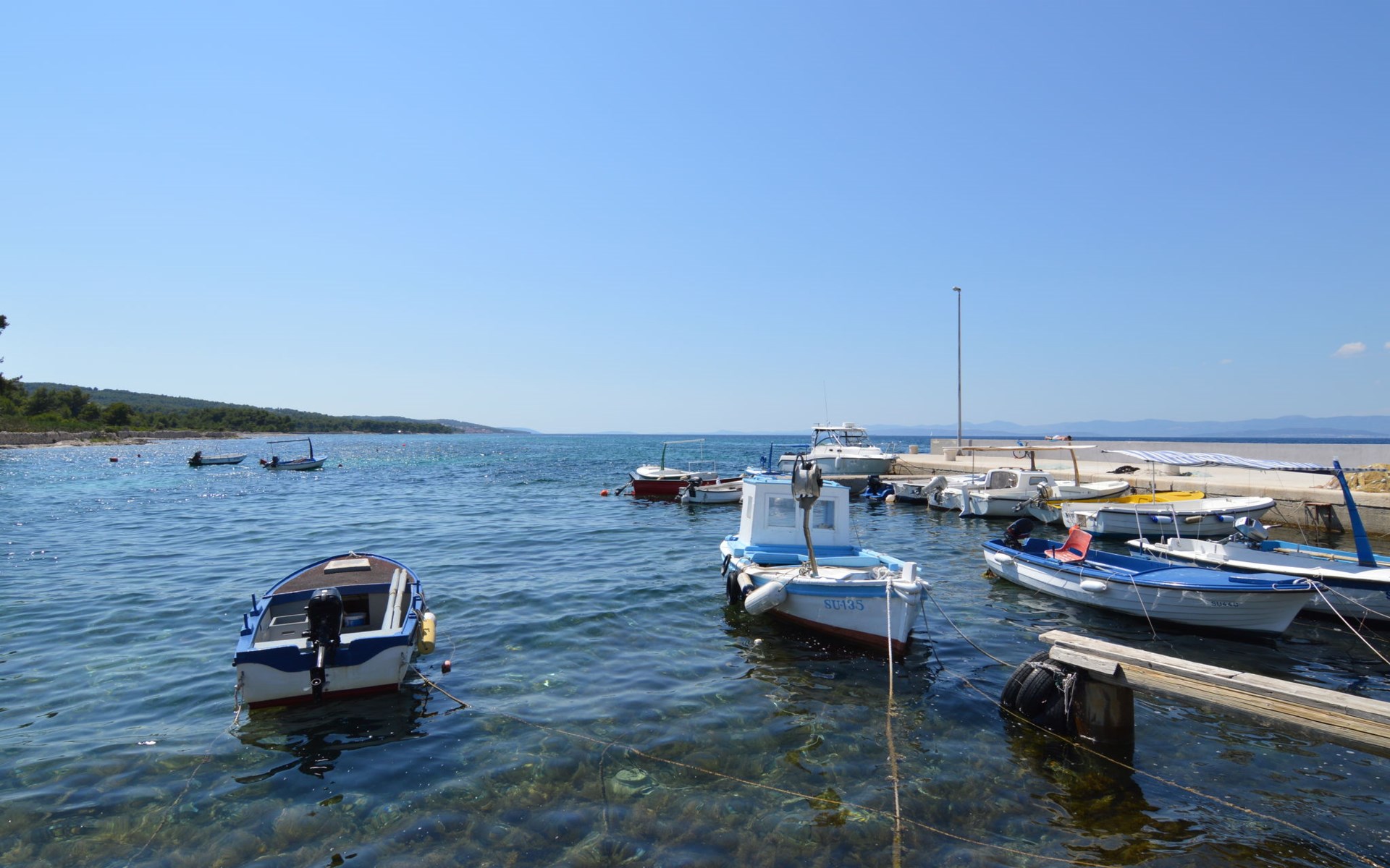 Zweifamilienhaus "Lila". 300 m vom Zentrum von Mirca, 3 km vom Zentrum von Supetar, 200 m vom Meer, 200 m vom Strand. Zur Mitbenutzung: Grundstück 500 m2 (eingezäunt) mit Bäumen. Zur Alleinbenutzung: Aussendusche, Grill. Im Hause: Internetzugang. Parkplatz auf dem Grundstück. Einkaufsgeschäft 500 m, Supermarkt 1.5 km, Bushaltestelle 4.8 km, Fähre 4 km, Kieselstrand 200 m. Bitte beachten: Flugplatz 45 km vom Haus.