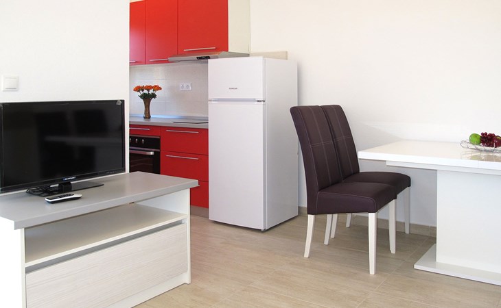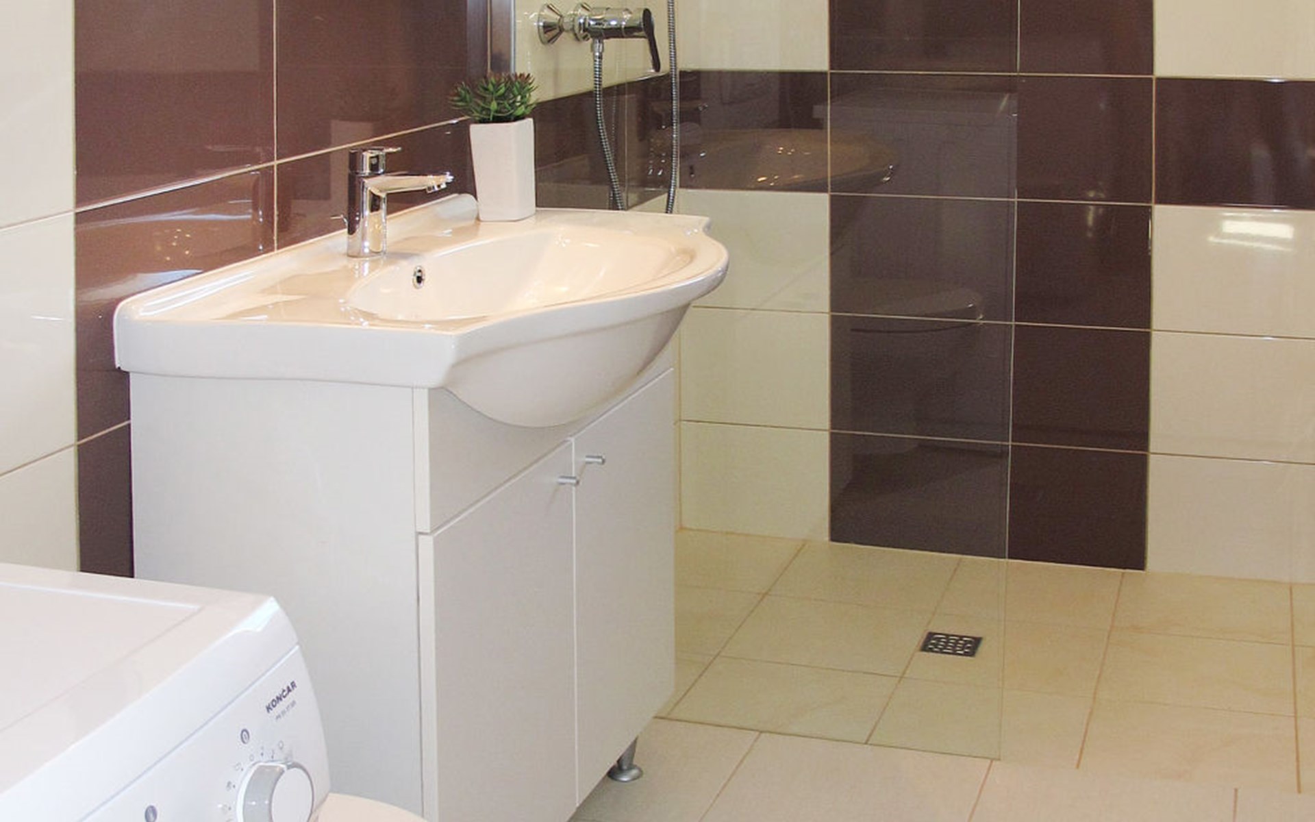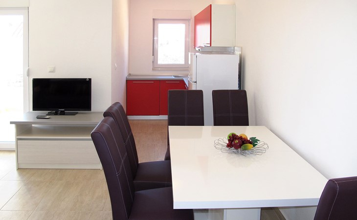 Okrug Gornji (Čiovo): Mehrfamilienhaus "Andjelka". 1 km vom Zentrum von Okrug Gornji, 5 km vom Zentrum von Trogir, am Hang, 200 m vom Meer, 200 m vom Strand. Zur Mitbenutzung: Grundstück 600 m2. Im Hause: Internetzugang. Parkplatz auf dem Grundstück. Einkaufsgeschäft 200 m, Supermarkt 1 km, Bushaltestelle 1.5 km, Kieselstrand, Felsstrand 200 m.