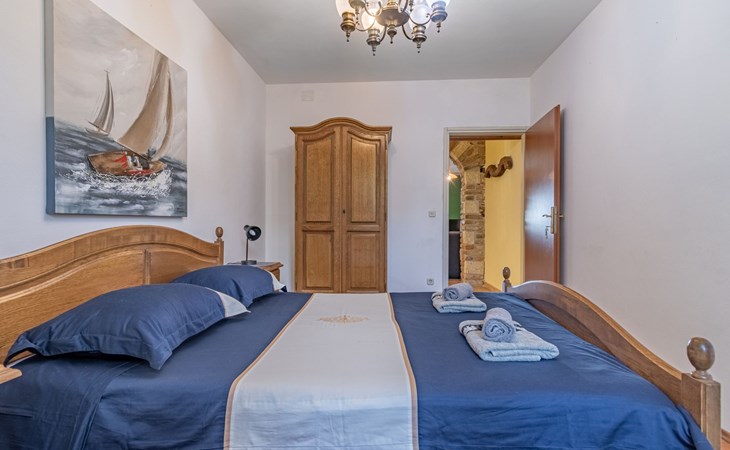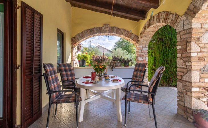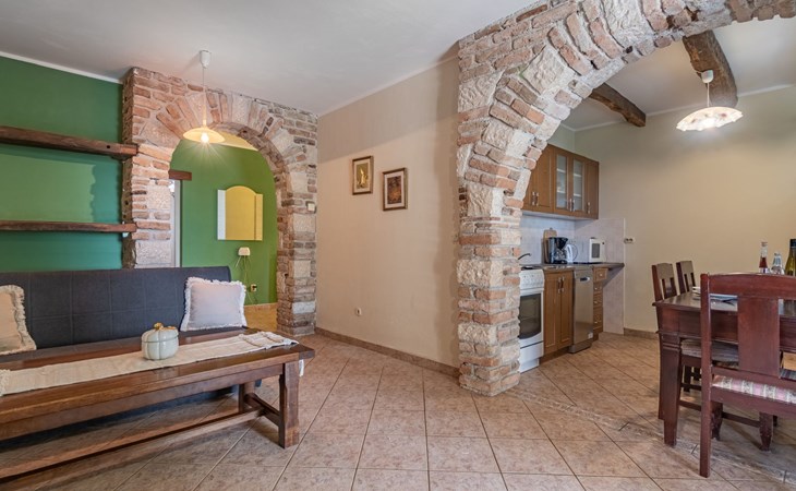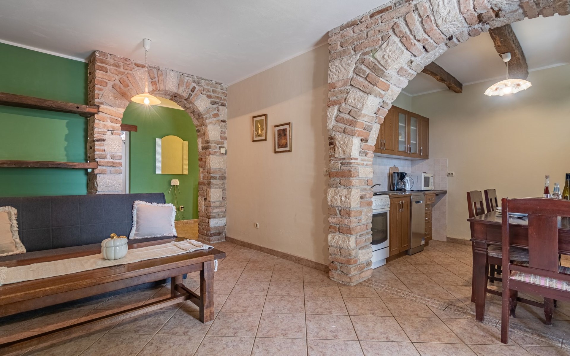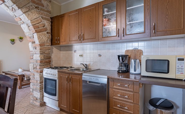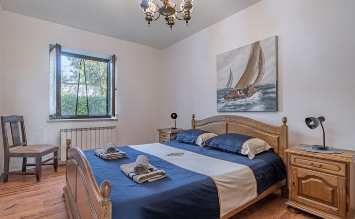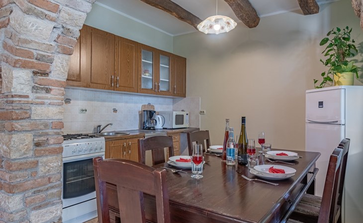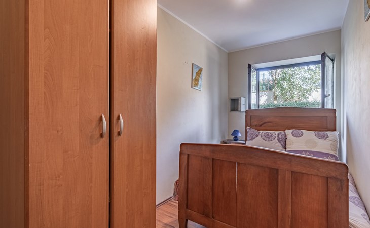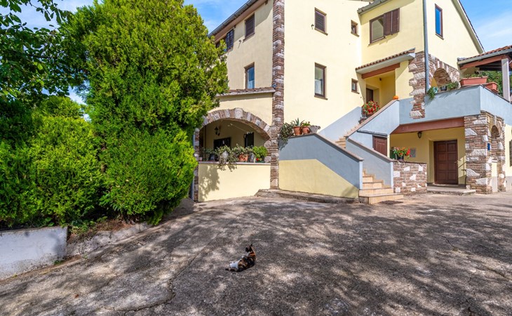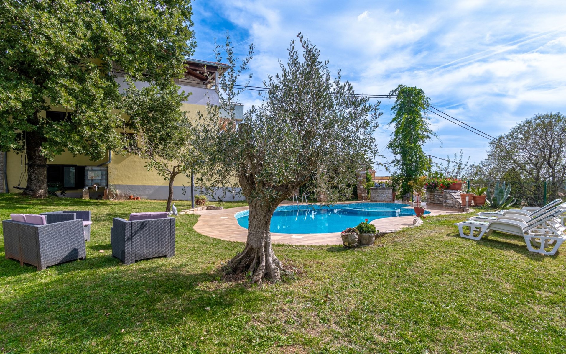 Mehrfamilienhaus "Lea". Im Weiler Veli Ježenj, 8 km vom Zentrum von Pazin, 30 km vom Meer. Zur Mitbenutzung: Grundstück 3'000 m2 mit Rasen und Bäumen, Schwimmbad (40 m2, 140 cm tief, saisonale Verfügbarkeit: 15.Mai. - 01.Nov.). Ungleichmässige Schwimmbadform, Kinderbecken, Aussendusche, Terrasse, Grill, Poolpflege durch den Besitzer/Gärtner. Im Hause: Internetzugang. Parkplatz auf dem Grundstück. Einkaufsgeschäft 4.5 km, Bushaltestelle 3.7 km, Kieselstrand 30 km.