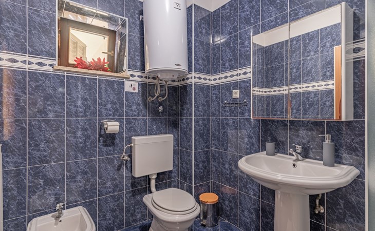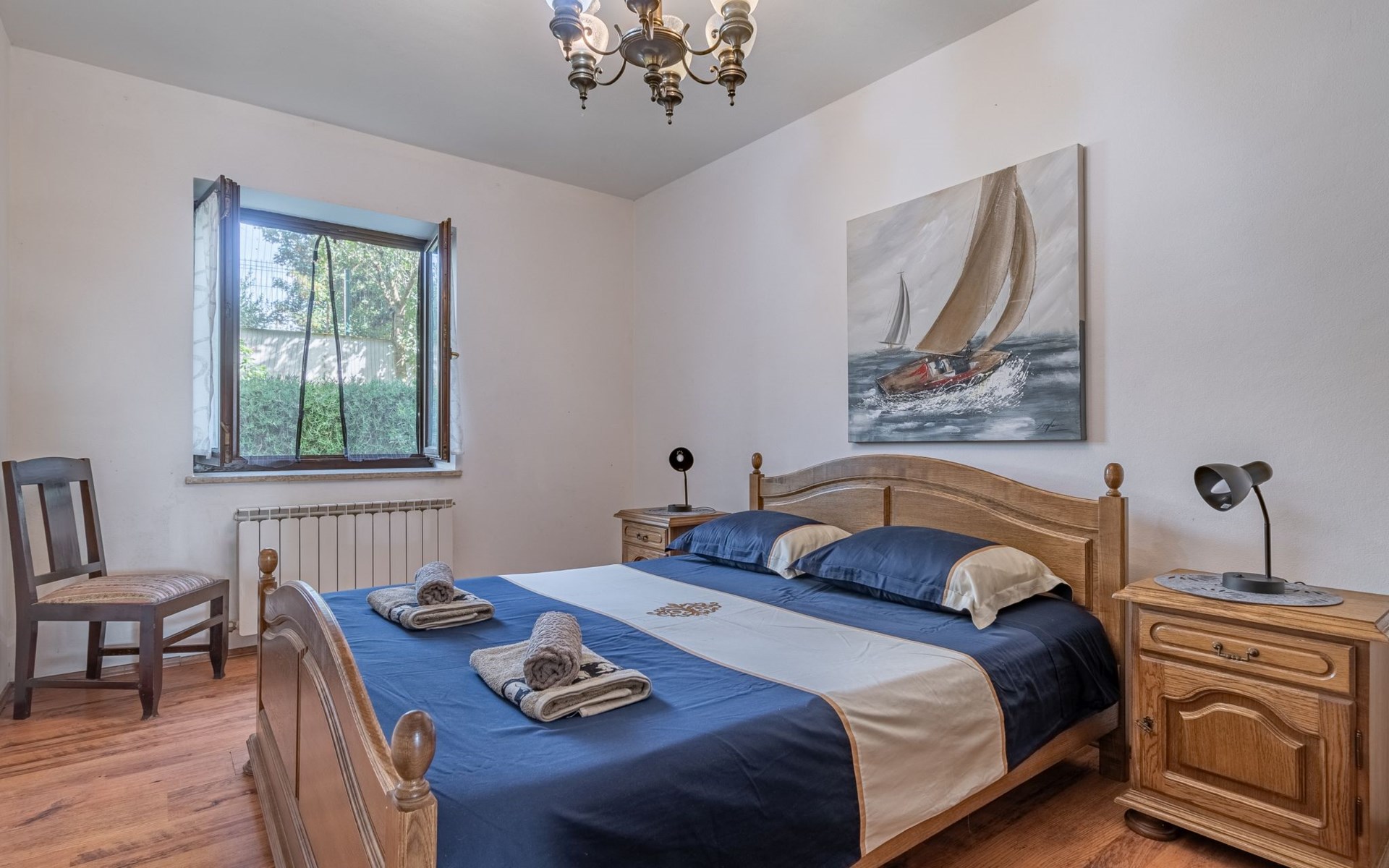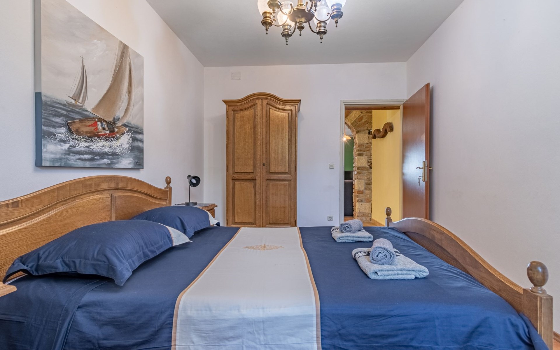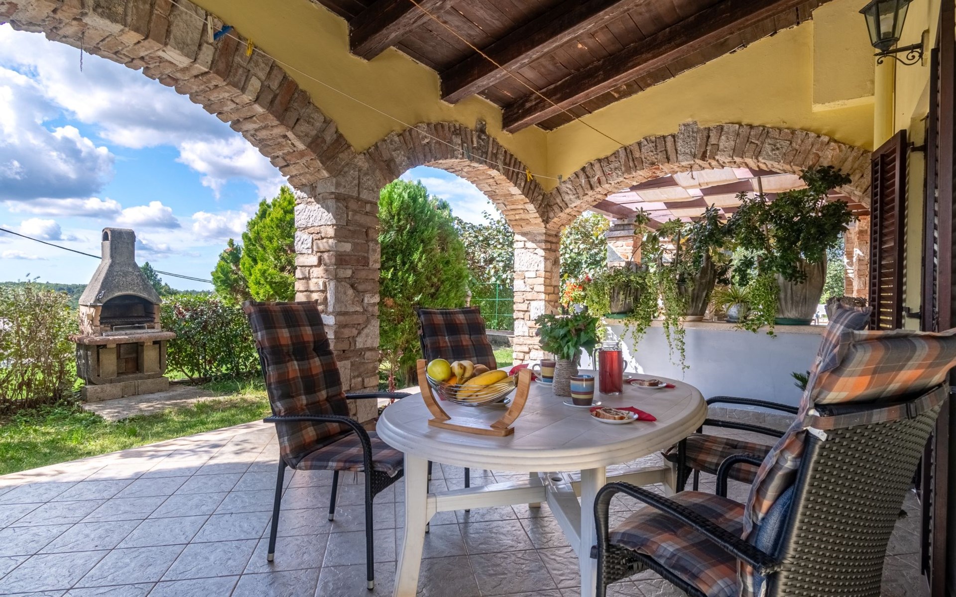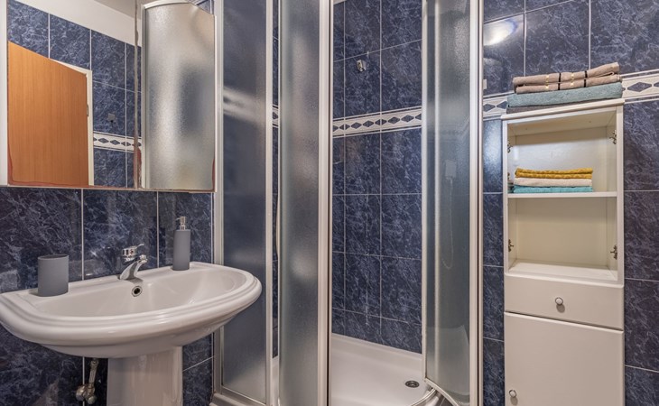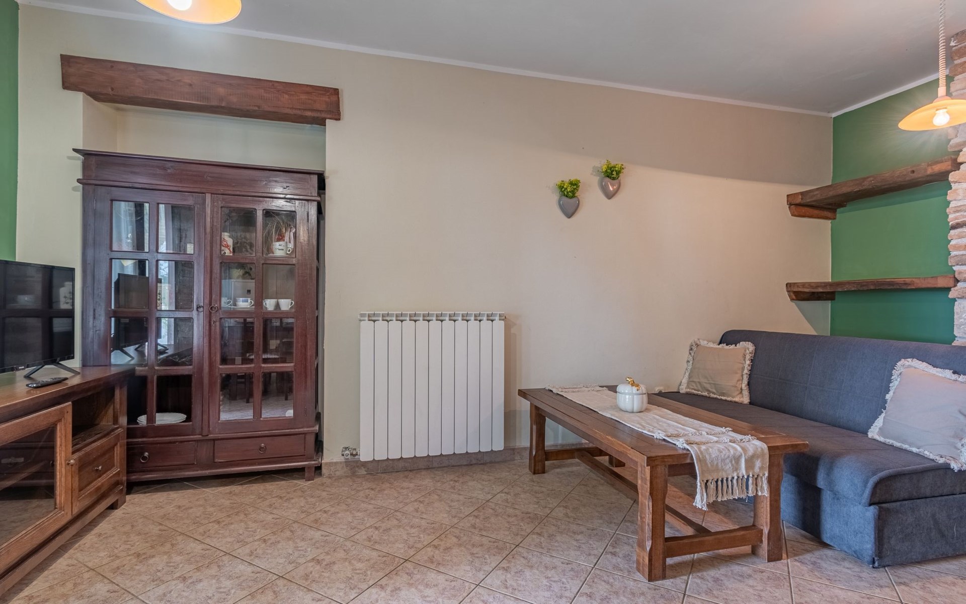 Mehrfamilienhaus "Lea". Im Weiler Veli Ježenj, 8 km vom Zentrum von Pazin, 30 km vom Meer. Zur Mitbenutzung: Grundstück 3'000 m2 mit Rasen und Bäumen, Schwimmbad (40 m2, 140 cm tief, saisonale Verfügbarkeit: 15.Mai. - 01.Nov.). Ungleichmässige Schwimmbadform, Kinderbecken, Aussendusche, Terrasse, Grill, Poolpflege durch den Besitzer/Gärtner. Im Hause: Internetzugang. Parkplatz auf dem Grundstück. Einkaufsgeschäft 4.5 km, Bushaltestelle 3.7 km, Kieselstrand 30 km.