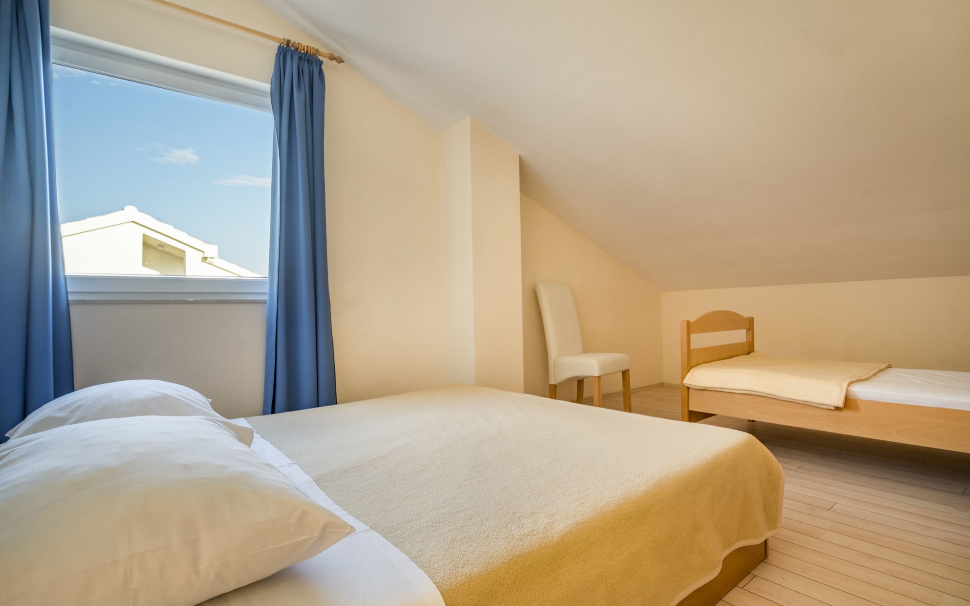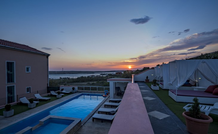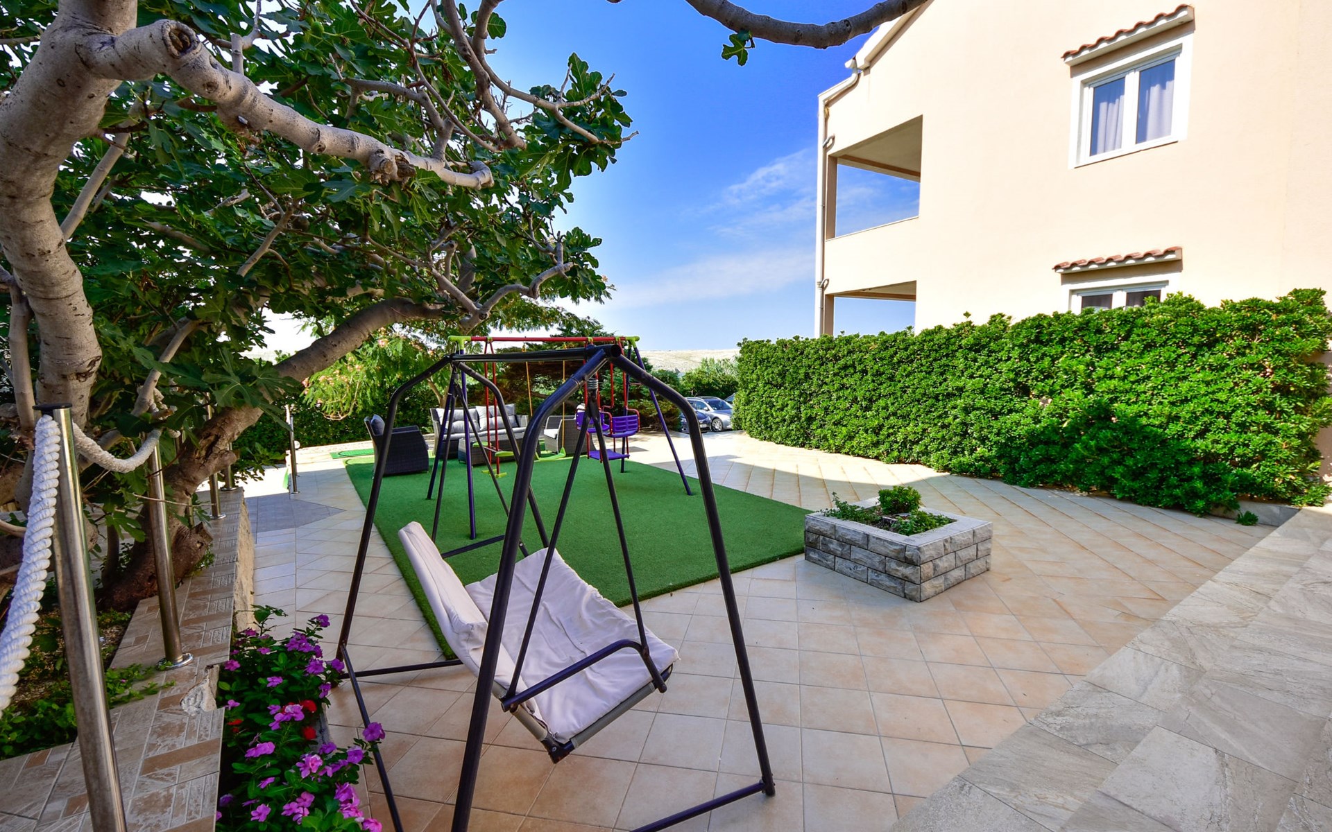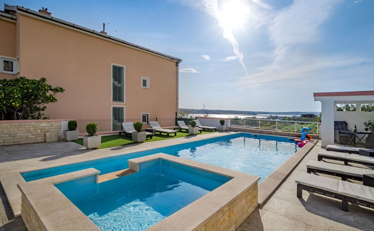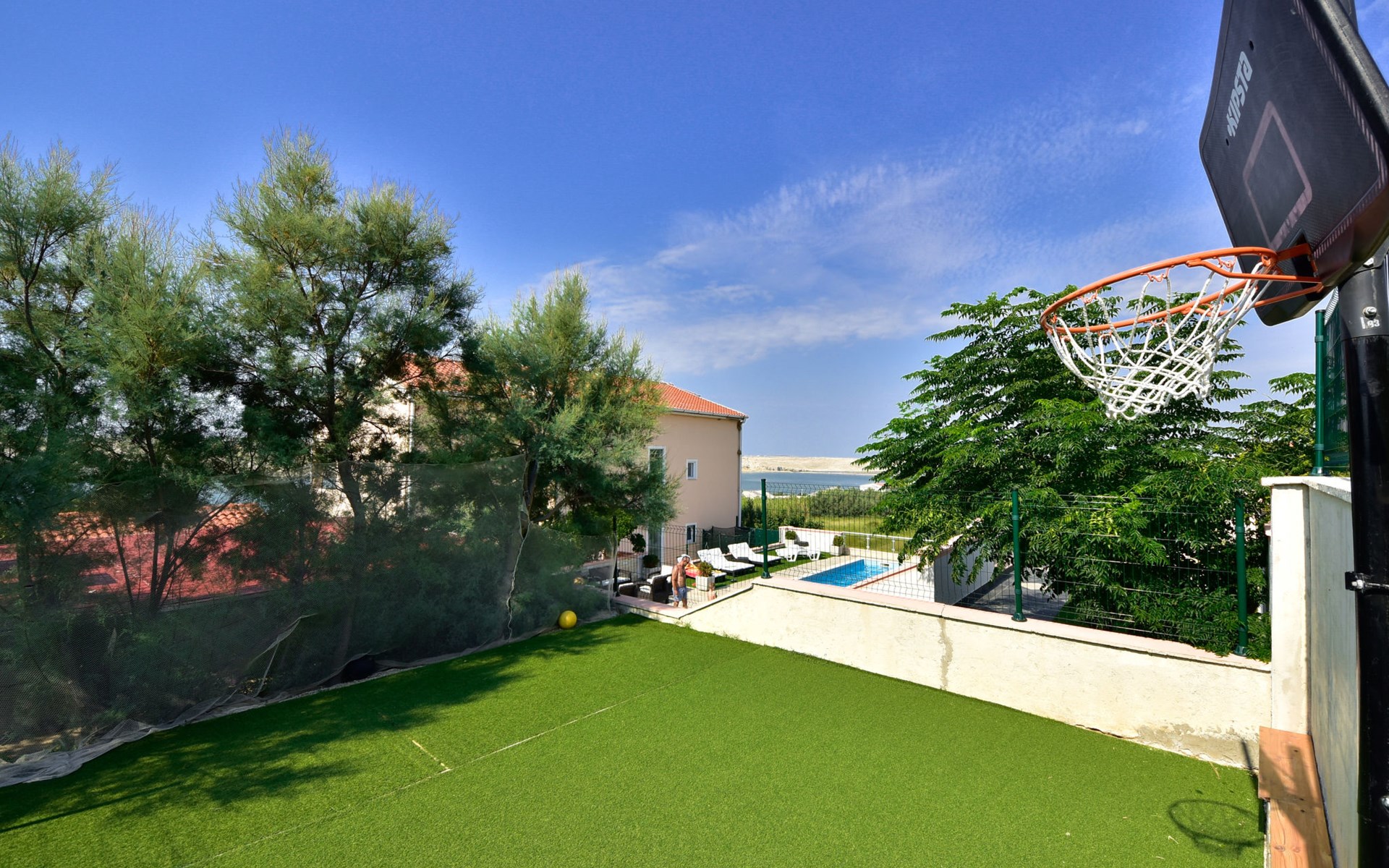 Schönes Mehrfamilienhaus "Melandura", auf 3 Stockwerken. 14 km vom Zentrum von Pag, ruhige, sonnige, erhöhte Lage, 130 m vom Meer, 130 m vom Strand, in einer Sackgasse, im Grünen. Zur Alleinbenutzung: Grundstück 500 m2, Schwimmbad (11 x 4 m, 80 - 150 cm tief, saisonale Verfügbarkeit: 25.Apr. - 26.Sep.) mit Innentreppe. Aussendusche, Tischtennis, Terrasse, Gartenmöbel, Grill. Im Hause: Internetzugang, Fitnessraum, Waschmaschine (extra). Zur Verfügung: Kanu (extra). Parkplatz beim Haus auf dem Grundstück. Einkaufsgeschäft 450 m, Restaurant 130 m, Bushaltestelle 16 km, Sandstrand, Kieselstrand 130 m. Nahe gelegene Sehenswürdigkeiten: NP Paklenica 50 km, NP Krka 90 km. Das Haus besteht aus 10 Apartments, die zusammen als eine Einheit gemietet werden. 4 Apartments sind im Erdgeschoss, 4 Apartments im 1. Stock, 2 Apartments im 2. Stock. Im Untergeschoss des Hauses gibt es eine Taverne mit offenem Feuer, Esstisch, Sitzgarnitur für die Terasse und Küche (4 Platten-Herd, Backofen, 2 Kühlschränke, Mikrowelle, elektrische Kaffeemaschine). Motorboot des Hausbesitzers kann gemietet werden (extra). Angelnmöglichkeit mit dem Hausbesitzer (extra).