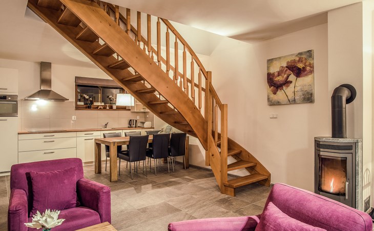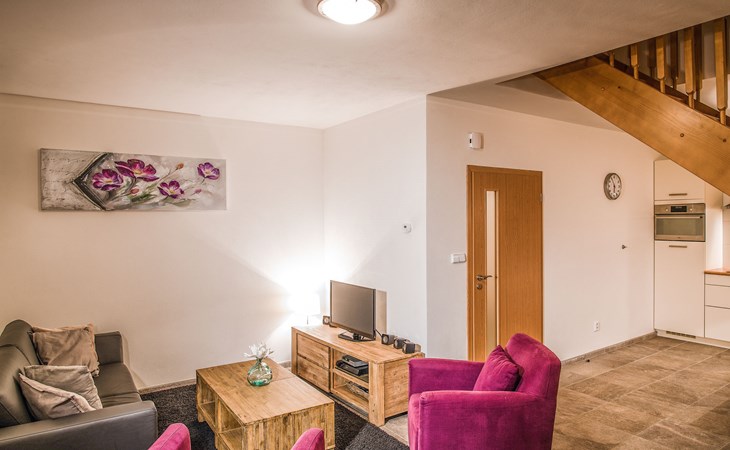 Kinderfreundliches, modernes Feriendorf "Residence Lipno". 40 Häuser im Ferienresort. Am Ortsrand, 1.5 km vom Zentrum von Lipno nad Vltavou, sonnige, erhöhte Lage, 250 m vom See, 2 km vom Skigebiet. Zur Mitbenutzung: Grundstück. Kinderspielplatz (Rutschbahn, Schaukel). Zur Alleinbenutzung: Garten. Terrasse, Gartenmöbel. In der Anlage: Empfang, Einstellraum für Fahrräder, Waschmaschine, Wäschetrockner (zur Mitbenutzung, extra). Parkplatz beim Haus. Lebensmittelgeschäft 1.2 km, Restaurant 200 m, Bushaltestelle "Lipno nad Vltavou, Kobylnice" 200 m, Grasstrand 250 m, Hallenbad 2 km. Sporthafen 1.5 km, Wanderwege ab Haus 10 m, Radweg, Sessellift 2 km, Skisportanlagen 2 km, Skibushaltestelle 200 m, Skischule 2 km. Nahe gelegene Sehenswürdigkeiten: Aquaworld Lipno 2 km, Hopsárium 2 km, Bobová dráha 2.5 km, Stezka korunami stromů 3.5 km, Království Lesa 3.5 km. Bekannte Skigebiete sind gut erreichbar: Skiareál Lipno 2 km. Alle Häuser/Wohnungen sind individuell eingerichtet. Marina Lipno (1,5 km) mit Yachthafen und Indoor-Wasserwelt (nicht in Betrieb vom 1.11.-30.11.). Golfplatz und Sessellift zum Skizentrum Kramolin 1 km (5 Skipisten, Snowboardpark, 50 km Langlaufloipen). Yacht-, Ski- und Fahrradverleih.
