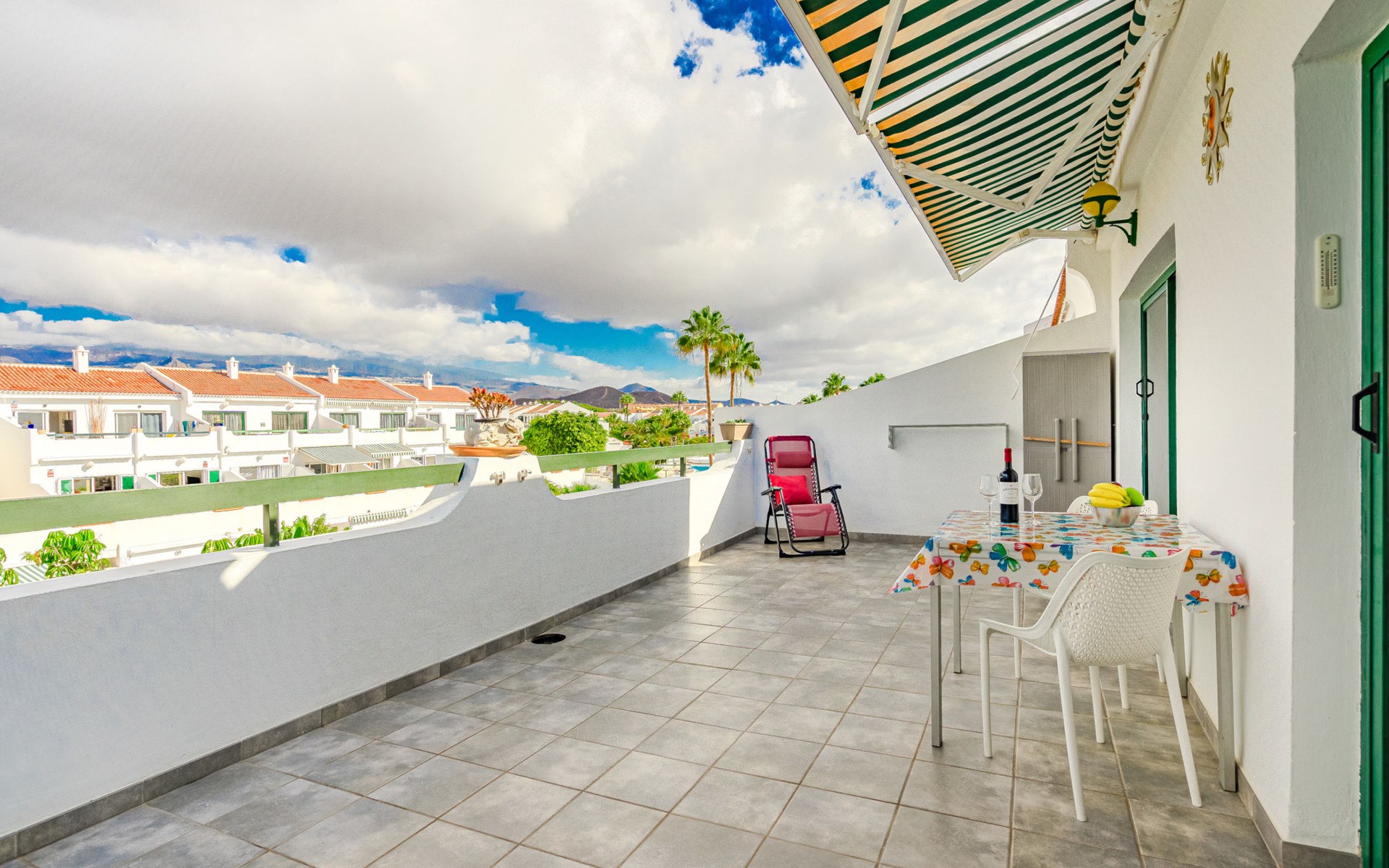 Grosses Appartementhaus "Parque Don Jose", auf 3 Stockwerken. Im Ortszentrum von Costa del Silencio, ruhige, sonnige Lage, exzellente Lage: Absolut zentral und dennoch ruhig, 550 m vom Meer, 600 m vom Strand. Zur Mitbenutzung: schöner, gepflegter terrassierter Garten, Teich, 2 Schwimmbäder (100 - 180 cm tief, saisonale Verfügbarkeit: 01.Jan. - 31.Dez.). Ungleichmässige Schwimmbadform Dusche/WC im Poolbereich, Kinderbecken, Boccia. Supermarkt 550 m, Restaurant, Bar 25 m, Bäckerei 300 m, Café 25 m, Bushaltestelle "Jose Antonio Tavio" 450 m, Kieselstrand "Playa de Montaña Amarilla" 550 m. Golfplatz (9 Loch) 10 km. Nahe gelegene Sehenswürdigkeiten: Siam Park 17 km, Playa de Las Americas 18 km, Masca 50 km, Teide 52 km. Bitte beachten: Babyausstattung auf Anfrage. Der Besitzer akzeptiert keine Jugendgruppen. Die Anlage wird nachts überwacht. Die Residenz wird durch elektrische Tore geschlossen. Die Nachbarschaft ist sehr lärmempfindlich. Ruhe und gutes Benehmen wird erwartet.