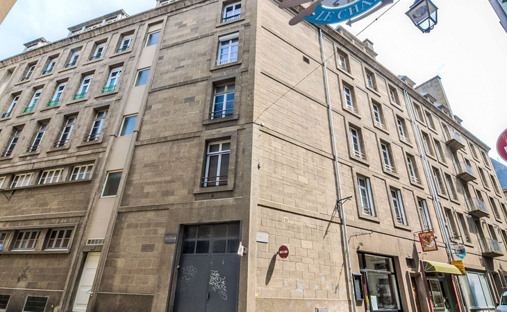 Intra Muros: Rustikales Mehrfamilienhaus "Merbonne", auf 5 Stockwerken. Im Ortszentrum von Saint Malo Intramuros, belebte Lage, 250 m vom Meer, 250 m vom Strand. In der Anlage: Fahrstuhl. Öffentliche Parkplätze auf der Strasse. Gebührenpflichtige Kurzparkzone, Zeit: 09:00 - 19:00. Einkaufsgeschäft 50 m, Supermarkt 10 m, Restaurant 10 m, Bushaltestelle "Intramuros" 100 m, Bahnstation "gare TGV de Saint Malo" 1.7 km, Fähre "Gare maritime du Naye" 1.6 km, Sandstrand "de l'eventail" 250 m, Hallenbad 1.8 km, Thermalbad "Thermes marins de Saint Malo" 2.2 km. Tennis 1.7 km, Reitstall 4 km. Nahe gelegene Sehenswürdigkeiten: Grand aquarium de Saint Malo 5 km, Cancale 15 km, Dinan 28 km, Dinard 11 km, Le Mont Saint Michel 45 km, Casino Saint-Malo 1 km.