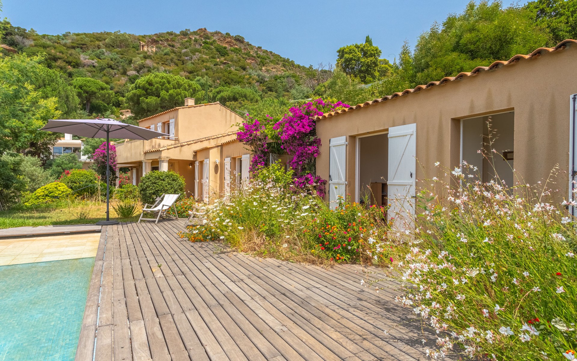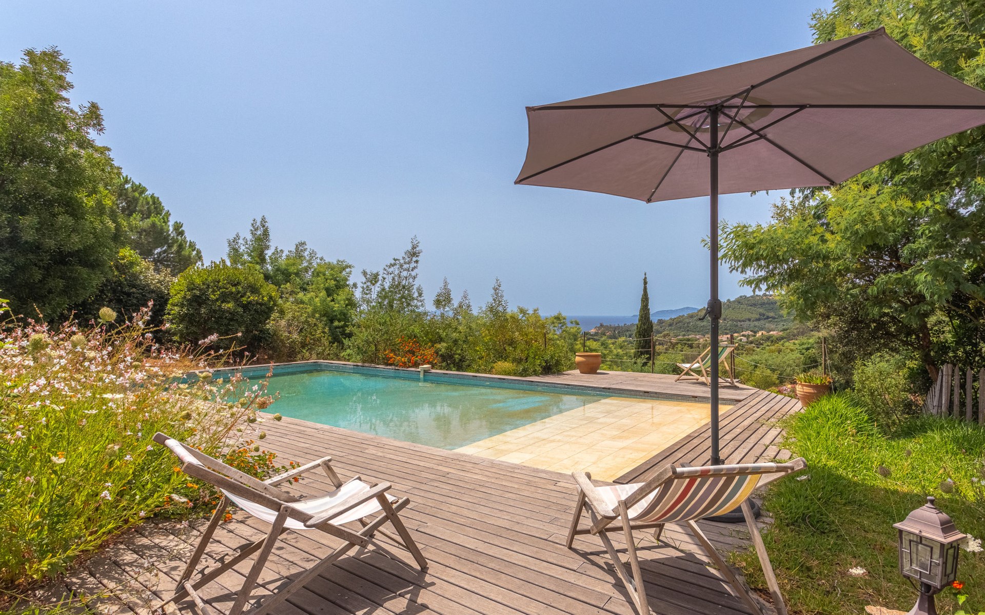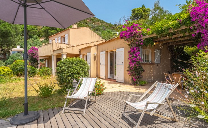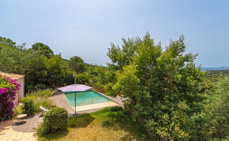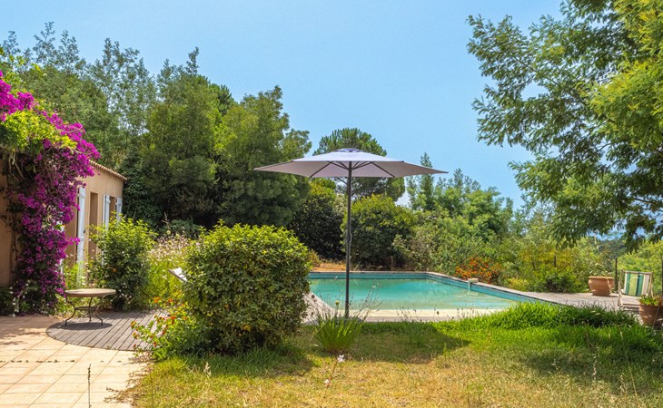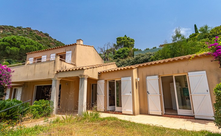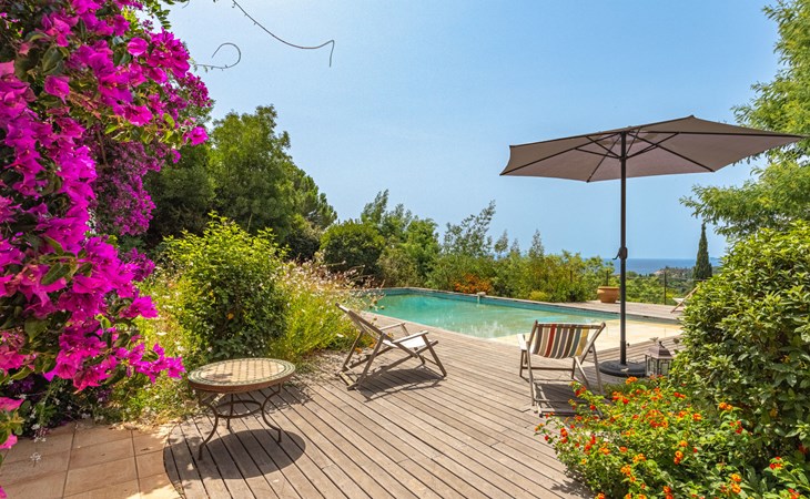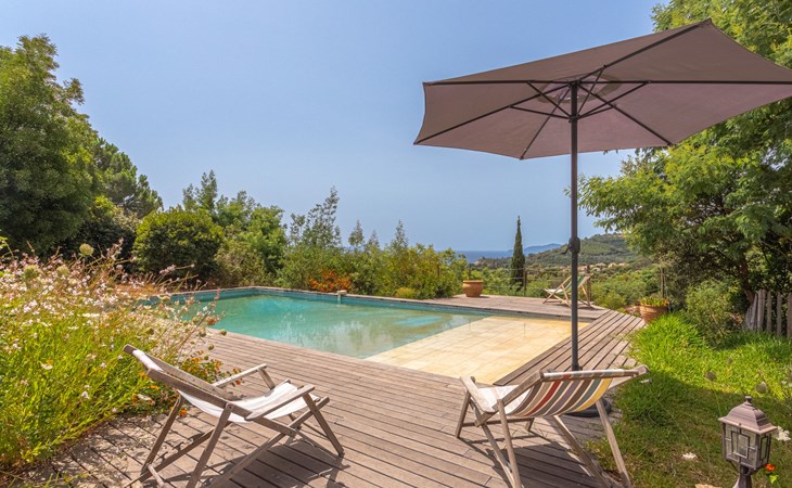 Cavalière 8 km von Le Lavandou: Grosse Villa "Villa du Temple", auf 2 Stockwerken. Mietobjekt bestehend aus Haupt- und Nebengebäude, ruhige Lage am Hang, 1 km vom Meer, 1 km vom Strand, Richtung Südwesten. Zur Alleinbenutzung: Naturgarten, Schwimmbad eckig (80 - 180 cm tief, saisonale Verfügbarkeit: 15.Mai. - 15.Okt.) mit Alarmanlage. Poolpflege durch den Besitzer/Gärtner. Treppenweg (40 Stufen) bis zum Haus. Parkplatz (für 2 Autos). Lebensmittelgeschäft 1 km, Restaurant 800 m, Bushaltestelle "Mairie de Cavalière" 1.3 km, Sandstrand "Cavalière" 1 km. Nahe gelegene Sehenswürdigkeiten: Saint Tropez 35 km, Magic World 32 km, Parc Olbius Riquier 30 km, Le Jardin des Méditerranées 8 km. Wandergebiete: Sentiers du Littoral. Bitte beachten: Fahrzeug empfohlen. Die Schlüsselübergabe findet bei der Agentur Interhome in Le Lavandou statt, 8 km.