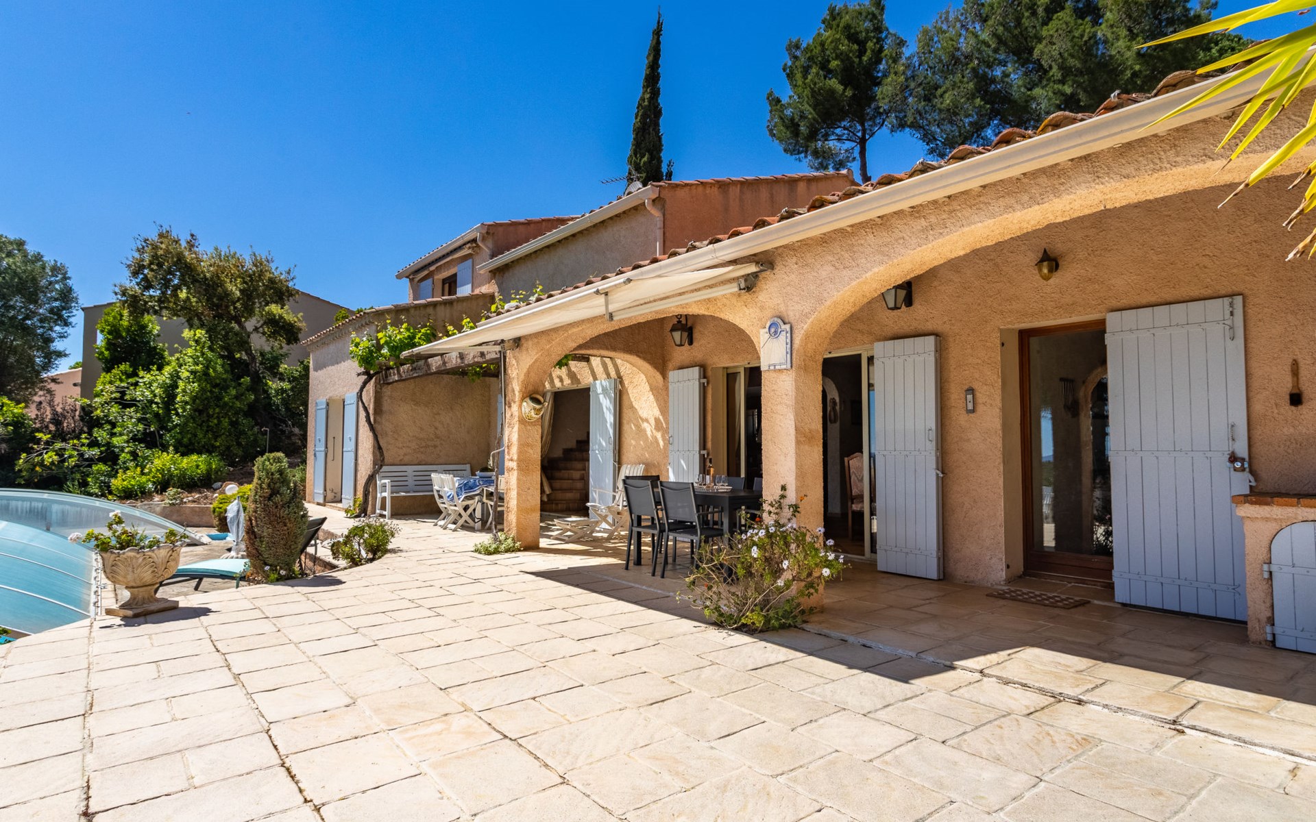 Cavalière 8 km von Le Lavandou: Einfache, komfortable Villa "Maison de l'Hubac Bleu", auf 2 Stockwerken, Baujahr 1985. Ruhige Lage am Hang, 1.5 km vom Meer, 1.5 km vom Strand, Richtung Süden. Poolpflege durch den Besitzer/Gärtner. Zur Alleinbenutzung: naturbelassenes Grundstück 1'000 m2, Hof, Hallenbad eckig, geschützt (11 x 5 m, 80 - 200 cm tief, saisonale Verfügbarkeit: 15.Mai. - 30.Sep.). Parkplatz. Lebensmittelgeschäft 1 km, Restaurant 800 m, Bushaltestelle "Mairie de Cavalière" 1.4 km, Sandstrand "Cavalière" 1.1 km. Nahe gelegene Sehenswürdigkeiten: St Tropez 35 km, Magic World 32 km, Le Jardin des Méditerranées 8 km. Wandergebiete: Sentiers du Littoral. Die Schlüsselübergabe findet bei der Agentur Interhome in Le Lavandou statt, 8 km.