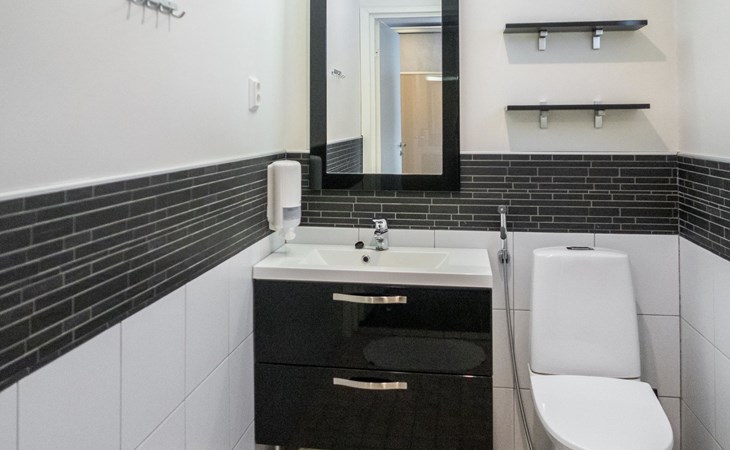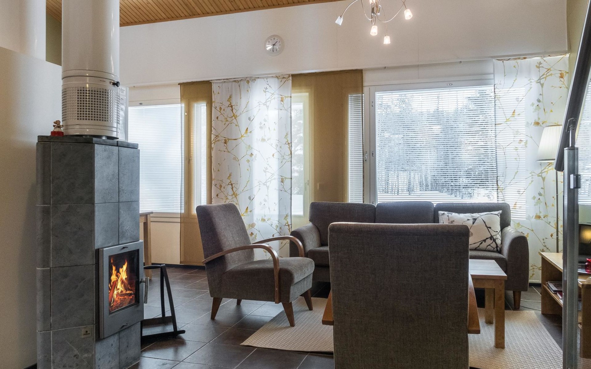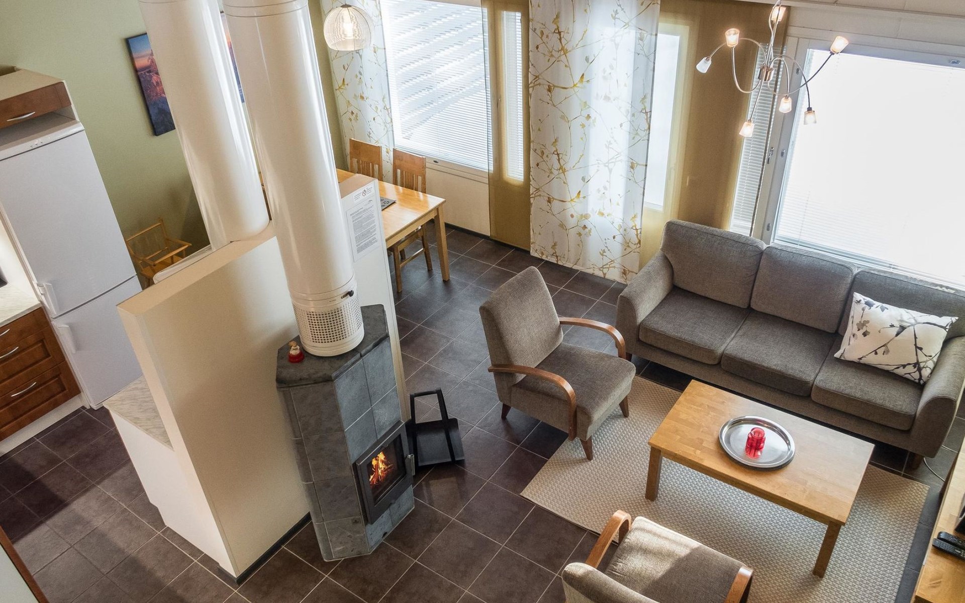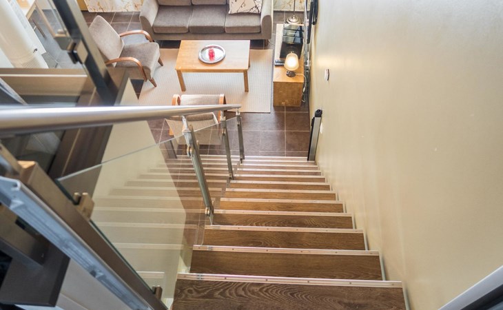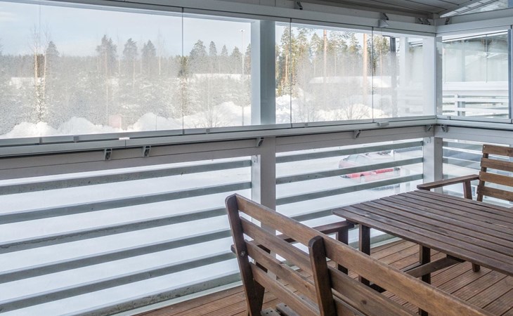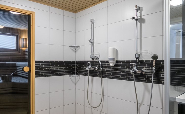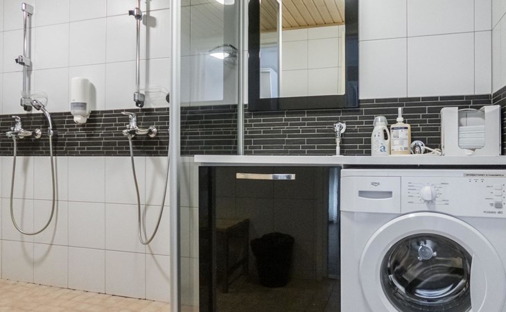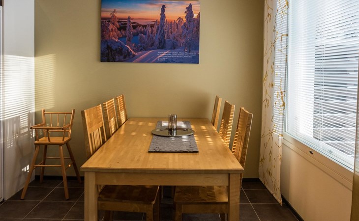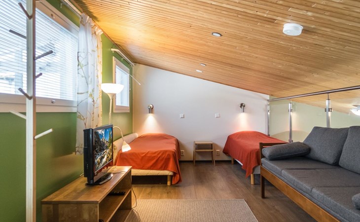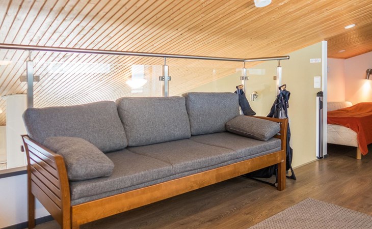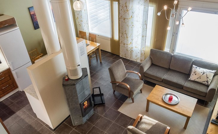 The Vuokatinranta Suite holiday apartment is 92 m², on two floors. Downstairs, a bright and spacious living room kitchen with a cozy fireplace, a dining table for 6-8 people (extra chairs). Bedroom with beds for 2. From the living room, easy and sturdy stairs lead up to the loft, where there are separate beds for 4. A sofa bed that can be spread out as an extra bed in the loft for 1-2 guests. Access from the loft to a glazed balcony with wooden outdoor furniture. Relaxation and a cottage holiday are crowned by an atmospheric sauna with a Harvia -electric stove, two showers in the washroom. Access to a separate toilet space from the hall. A drying cabinet in the air cupboard.