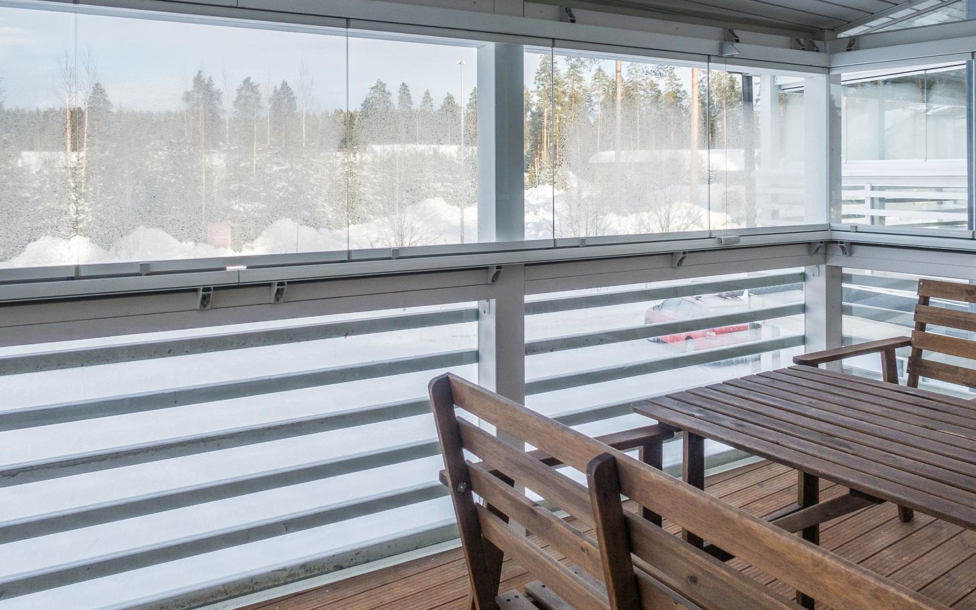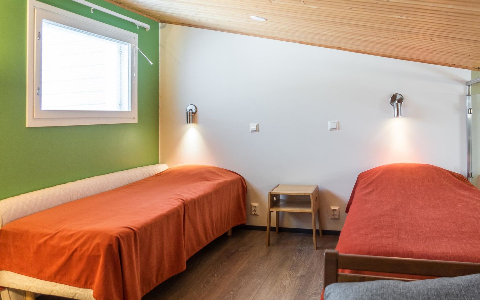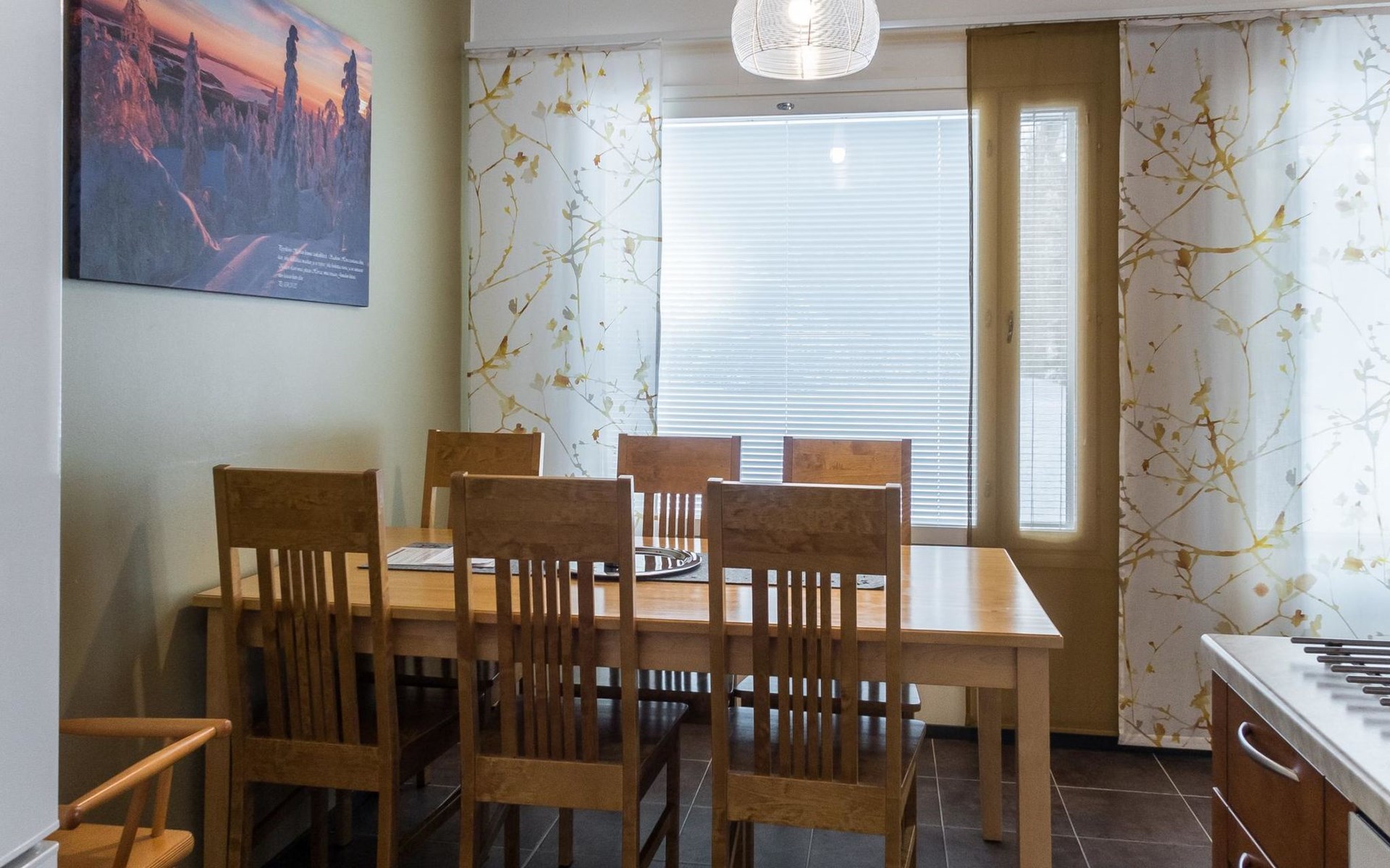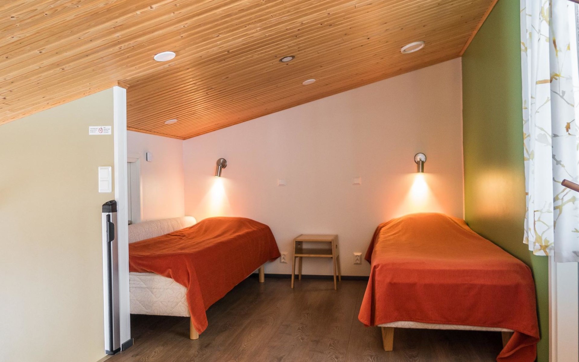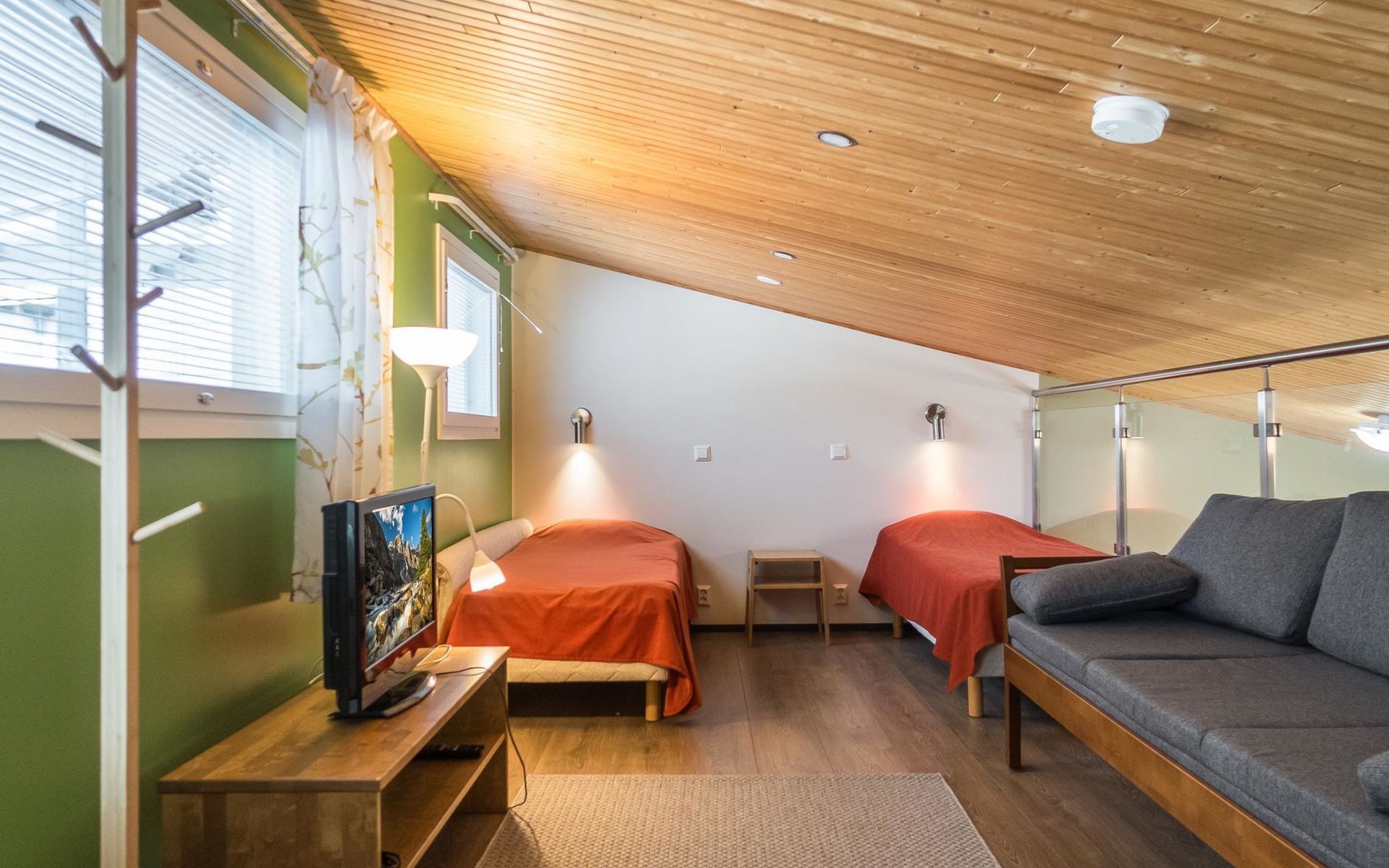 The Vuokatinranta Suite holiday apartment is 92 m², on two floors. Downstairs, a bright and spacious living room kitchen with a cozy fireplace, a dining table for 6-8 people (extra chairs). Bedroom with beds for 2. From the living room, easy and sturdy stairs lead up to the loft, where there are separate beds for 4. A sofa bed that can be spread out as an extra bed in the loft for 1-2 guests. Access from the loft to a glazed balcony with wooden outdoor furniture. Relaxation and a cottage holiday are crowned by an atmospheric sauna with a Harvia -electric stove, two showers in the washroom. Access to a separate toilet space from the hall. A drying cabinet in the air cupboard.