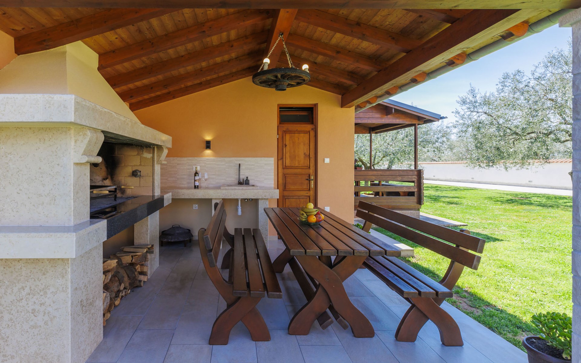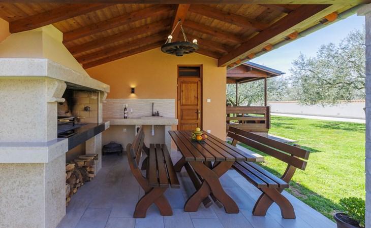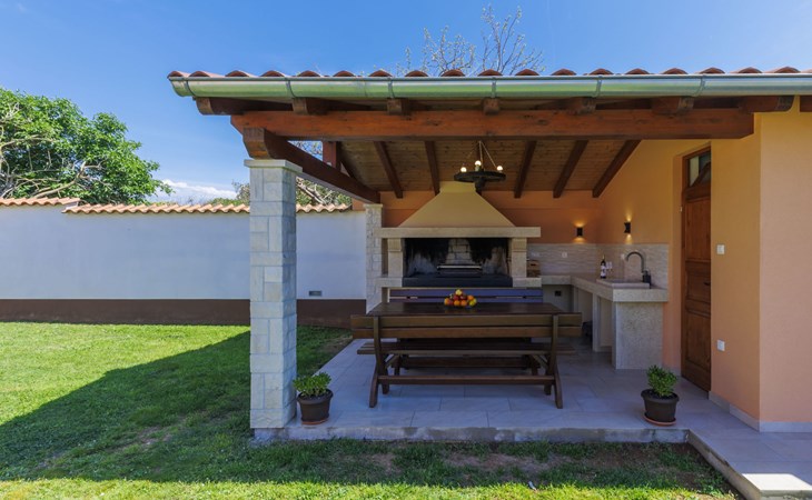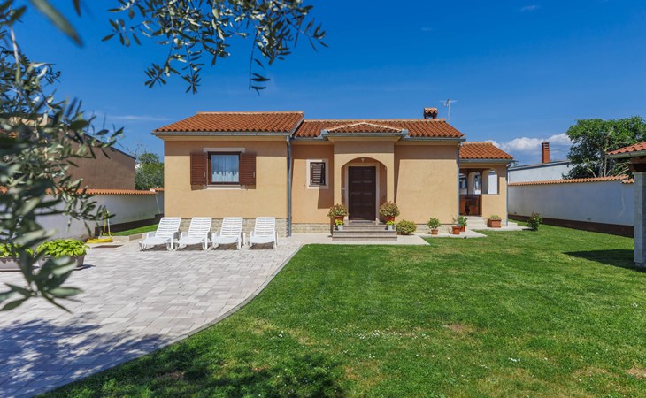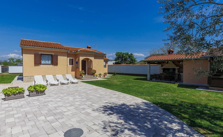 Einfamilienhaus "Nina". 500 m vom Zentrum von Fažana, 8 km vom Zentrum von Pula, in einem Wohnquartier, 500 m vom Meer, 500 m vom Strand. Zur Alleinbenutzung: Grundstück 1'200 m2, Bäumen. Terrasse, Gartenmöbel, Grill. Im Hause: Internetzugang, Waschmaschine. Zufahrt bis zum Haus (300 m Naturweg). Parkplatz (für 2 Autos) auf dem Grundstück. Einkaufsgeschäft 350 m, Supermarkt 700 m, Bushaltestelle 750 m, Kieselstrand, Felsstrand 500 m.