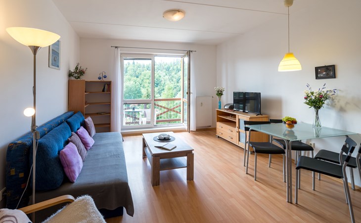 Freistehendes, komfortables Appartementhaus. Im Ort, 500 m vom Zentrum, sonnige Lage, 100 m vom Skigebiet. Im Hause: Skiraum, Zentralheizung. Wäschewechsel (zusätzlich extra). Handtuchwechsel (zusätzlich extra). Wohnungsreinigung möglich (extra). Parkplatz beim Haus, öffentliche Parkplätze extra. Lebensmittelgeschäft 300 m, Restaurant 50 m, Bushaltestelle "Janské Lázně - Lanovka" 300 m, Bahnstation "Svoboda nad Úpou" 3.8 km, Park "Farmapark Muchomůrka" 1 km, Freibad 7 km, Hallenbad 300 m. Golfplatz (18 Loch) 7.5 km, Tennis 1 km, Minigolf 4.5 km, Wanderwege ab Haus, Radweg 100 m, Sessellift 1 km, Gondelbahn, Skipisten, Skiverleih, Skischule, Kinderskischule, Schlittelbahn 100 m, Langlaufloipe 300 m. Nahe gelegene Sehenswürdigkeiten: Lanovka na Černou horu 100 m, Janské Lázně Spa, Stezka korunami stromů 700 m, bobová dráha 5 km, Pec pod Sněžkou, Relaxpark, bobová dráha 15 km, Vrchlabí 10 km, Trutnov 12 km, Malá Úpa 20 km, Zoo Dvůr Králové, Adršpach 35, Karpacz 40 km. Bekannte Skigebiete sind gut erreichbar: SkiResort ČERNÁ HORA - PEC, Mladé Buky 5 km, Horní Malá Úpa 16 km, Špindlerův Mlýn 30 km. Wandergebiete: krkonošské naučné stezky.