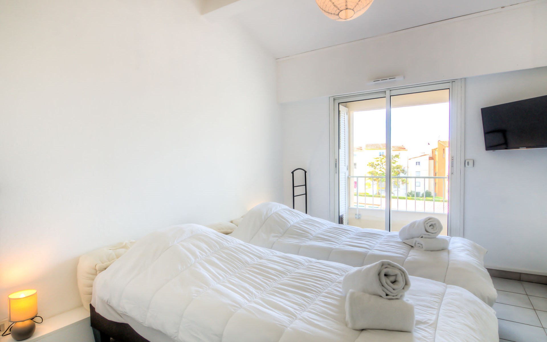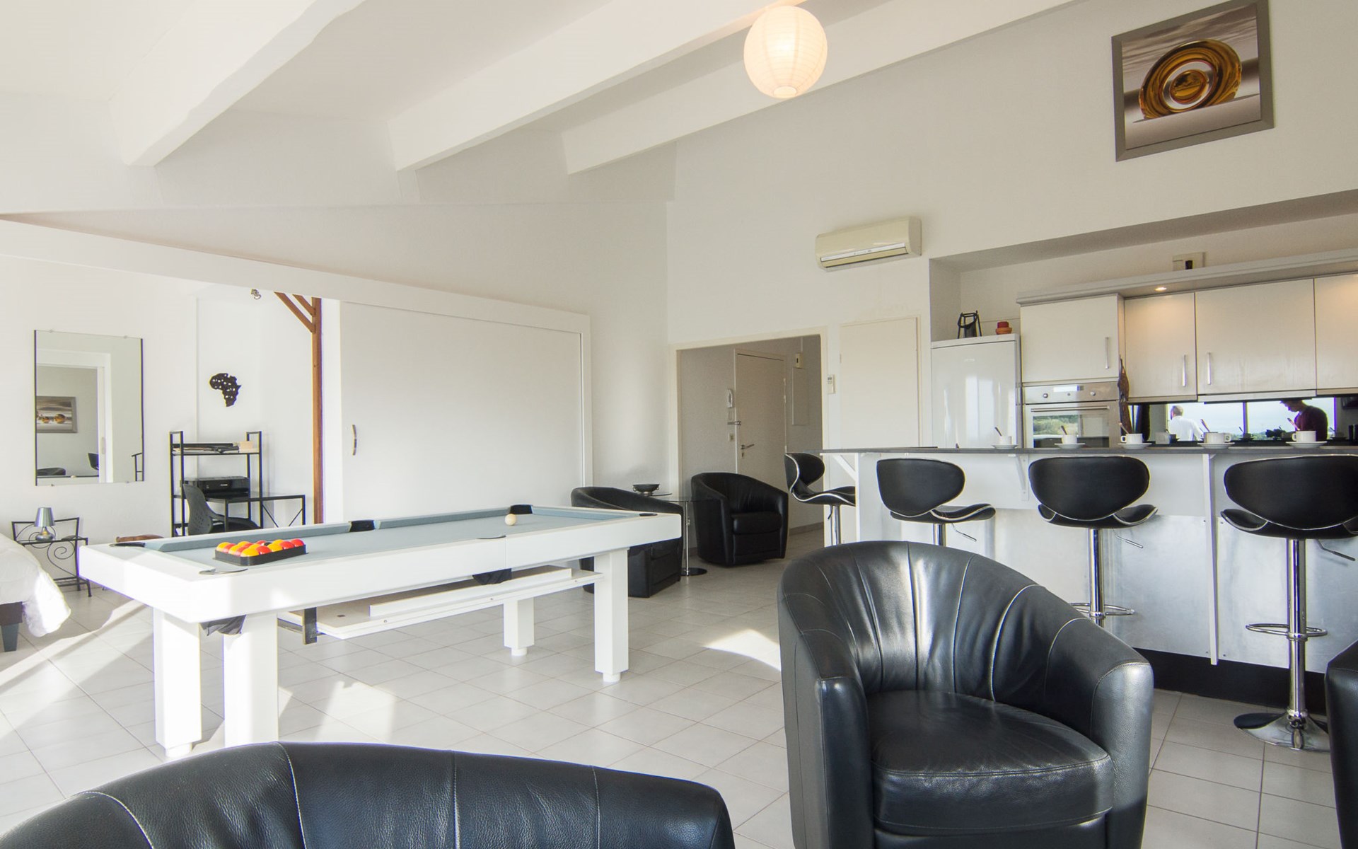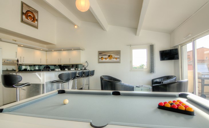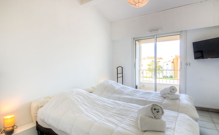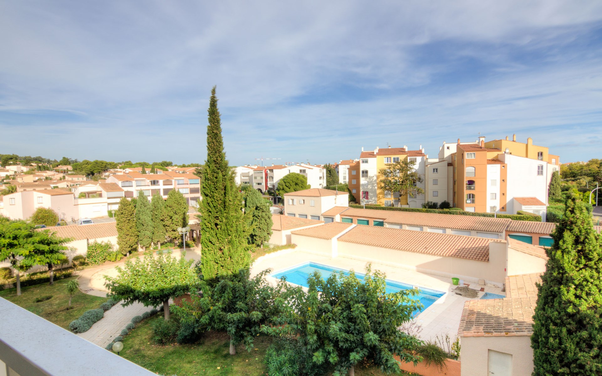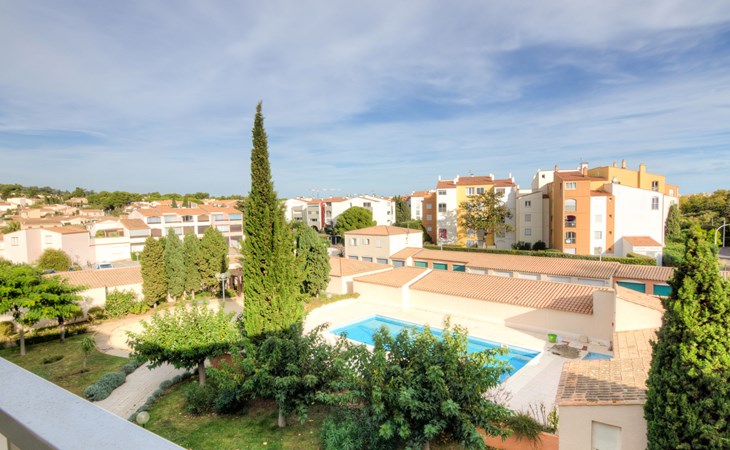 Schöne Residenz "Bella Vista", auf 3 Stockwerken. Im Ortsteil Saint Martin, am Ortsrand, 1 km vom Zentrum, in einem Wohnquartier, 1.2 km vom Meer, 1.2 km vom Strand, 500 m von der Lagune. Zur Mitbenutzung: Schwimmbad (15 x 7 m, 160 cm tief, saisonale Verfügbarkeit: 01.Jun. - 15.Okt.). Im Hause: Fahrstuhl. Lebensmittelgeschäft 100 m, Supermarkt 400 m, Einkaufszentrum 200 m, Restaurant 400 m, Bäckerei 100 m, Bushaltestelle "Golf International" 270 m. Sporthafen 400 m, Golfplatz (27 Loch) 500 m, Segelschule 1 km. Nahe gelegene Sehenswürdigkeiten: Aqualand 500 m, Ile des Loisirs 1.2 km.