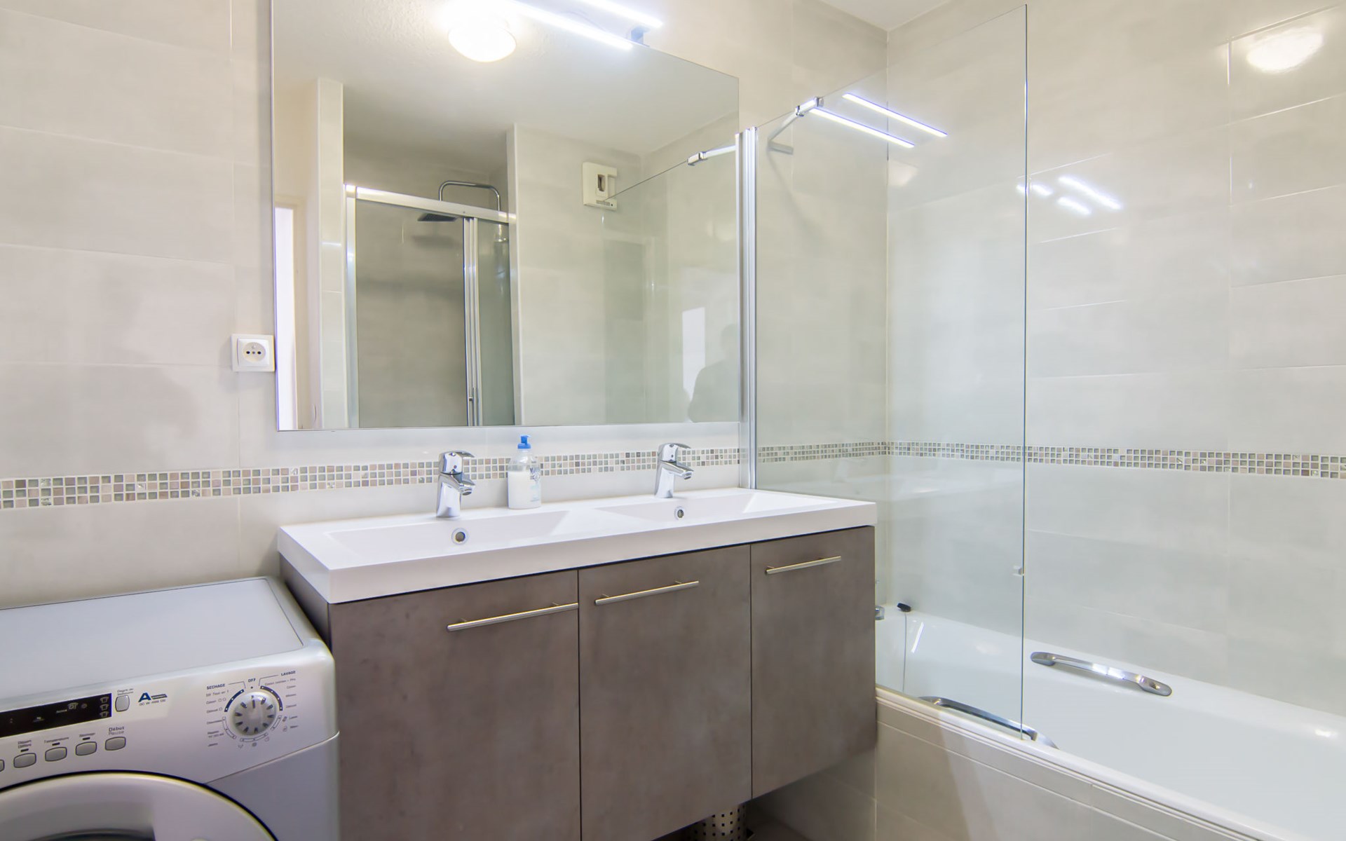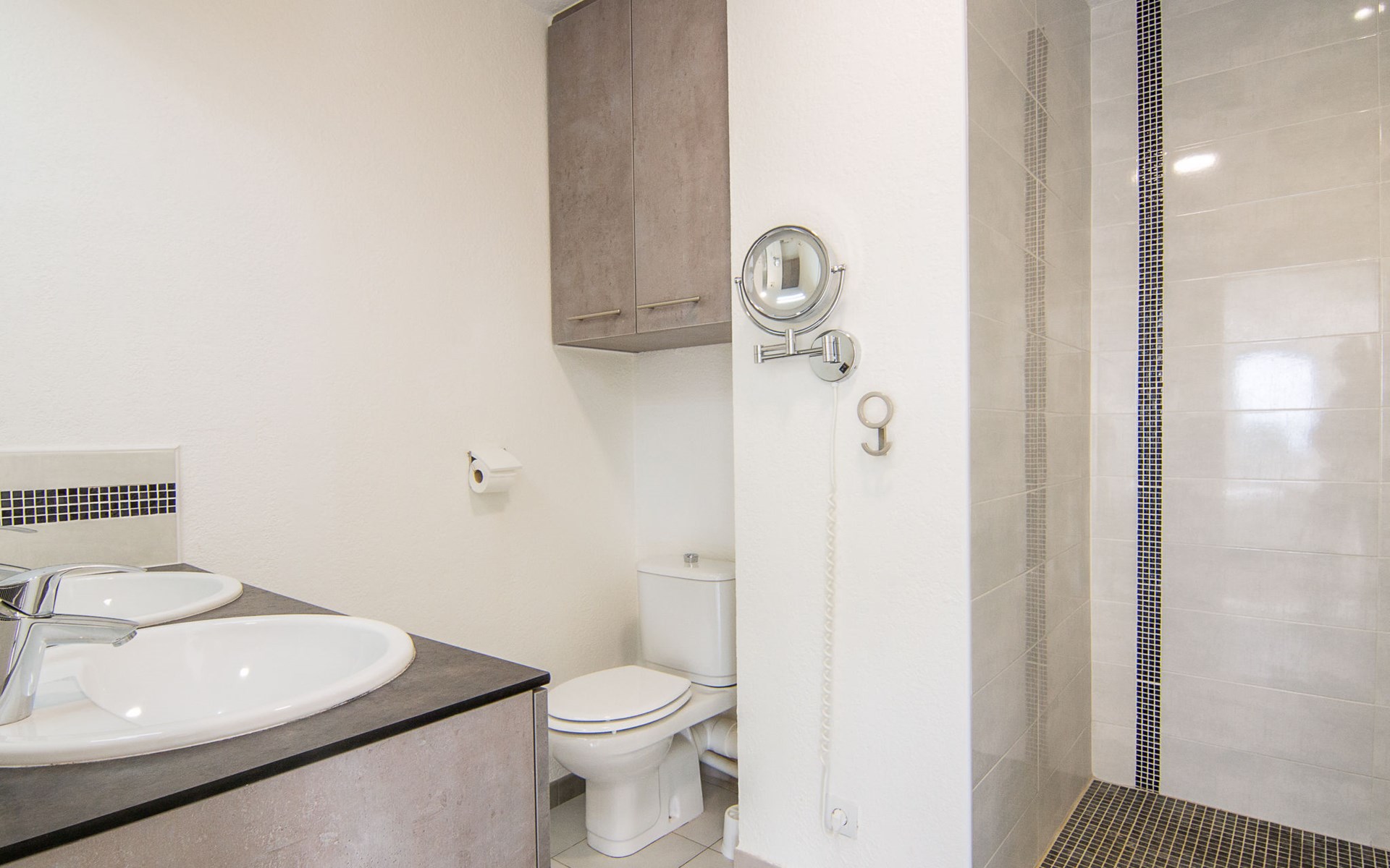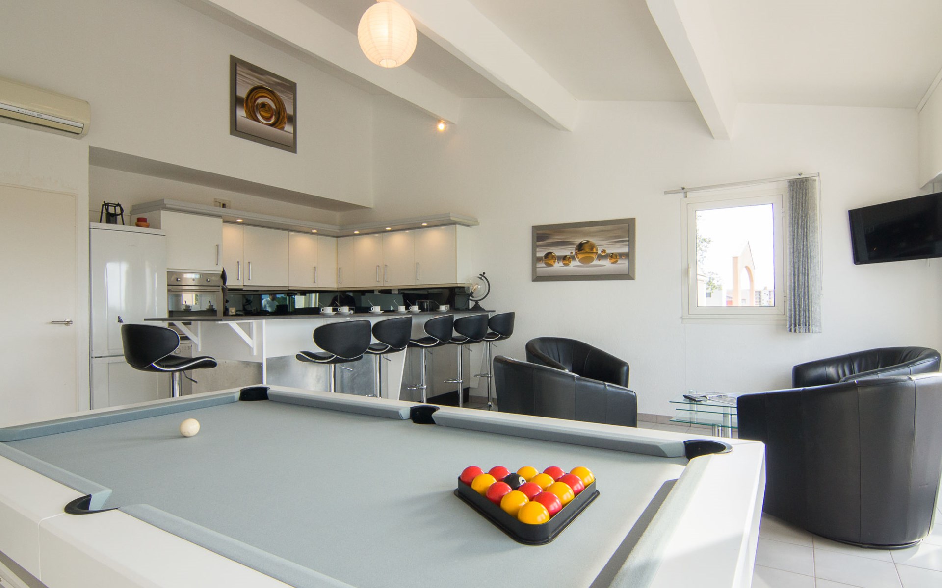 Schöne Residenz "Bella Vista", auf 3 Stockwerken. Im Ortsteil Saint Martin, am Ortsrand, 1 km vom Zentrum, in einem Wohnquartier, 1.2 km vom Meer, 1.2 km vom Strand, 500 m von der Lagune. Zur Mitbenutzung: Schwimmbad (15 x 7 m, 160 cm tief, saisonale Verfügbarkeit: 01.Jun. - 15.Okt.). Im Hause: Fahrstuhl. Lebensmittelgeschäft 100 m, Supermarkt 400 m, Einkaufszentrum 200 m, Restaurant 400 m, Bäckerei 100 m, Bushaltestelle "Golf International" 270 m. Sporthafen 400 m, Golfplatz (27 Loch) 500 m, Segelschule 1 km. Nahe gelegene Sehenswürdigkeiten: Aqualand 500 m, Ile des Loisirs 1.2 km.