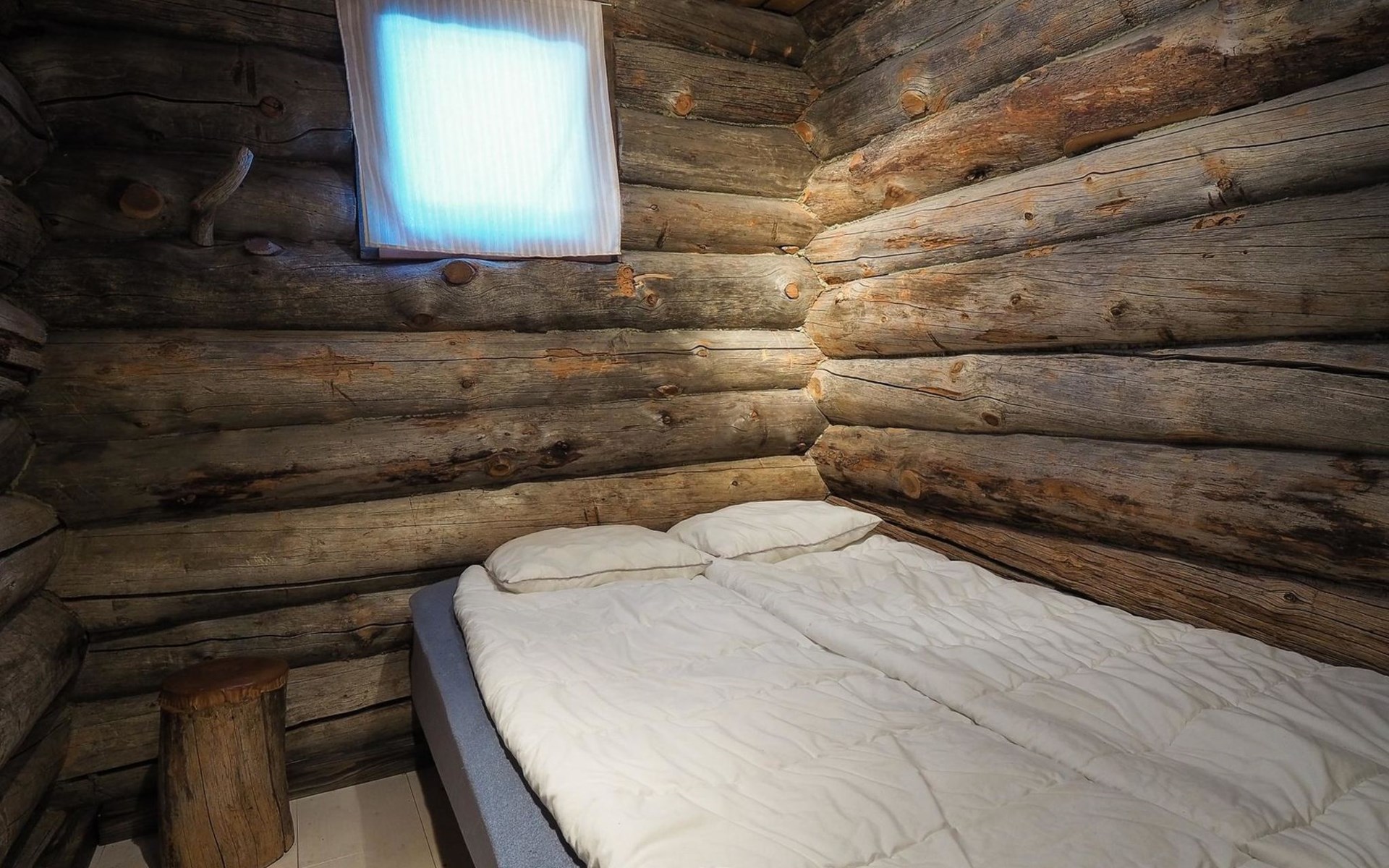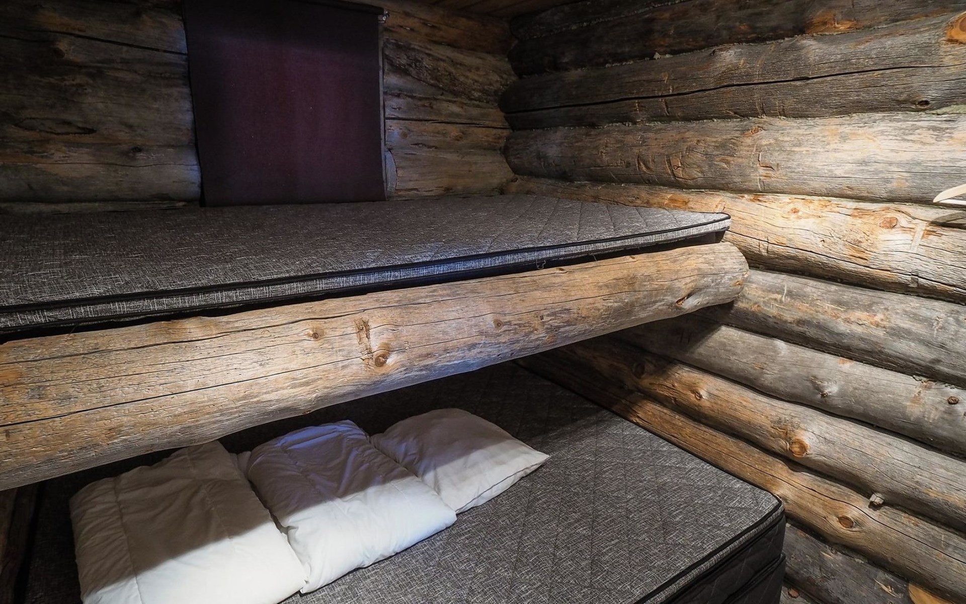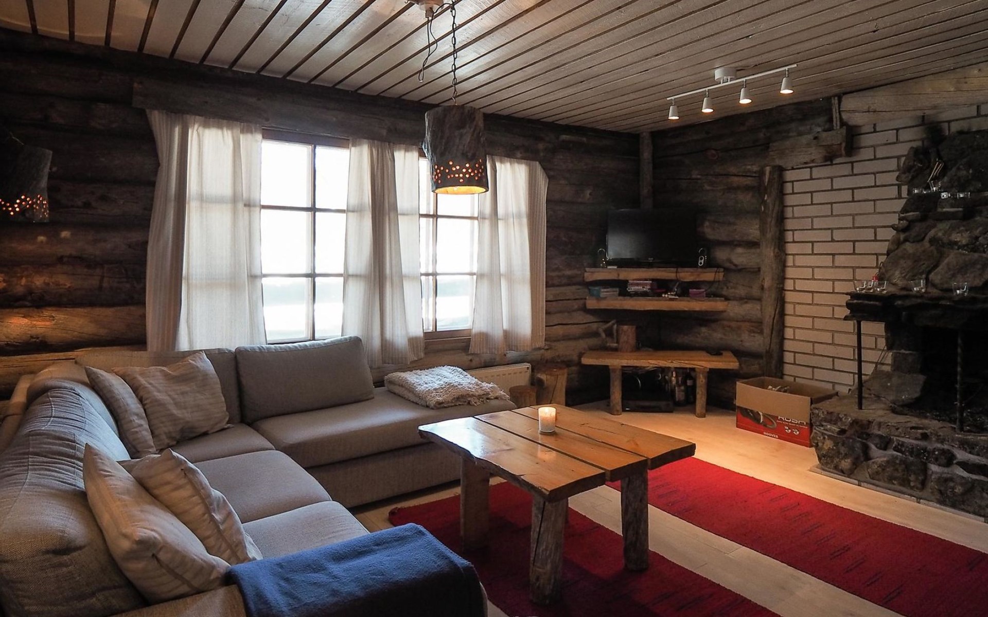Kelo log cabin, built in 1990. The cabin has three bedrooms, two of them with a bunk bed (lower bed 160 cm, upper bed 140 cm wide), the third with a double bed (140 cm). Living room kitchen, sauna (wood sauna stove), washroom/WC and covered terrace.