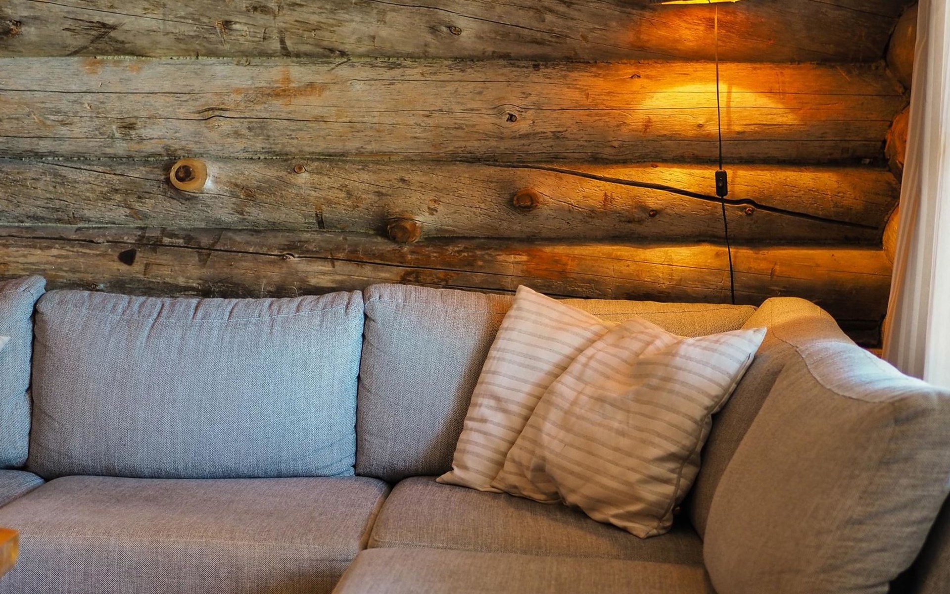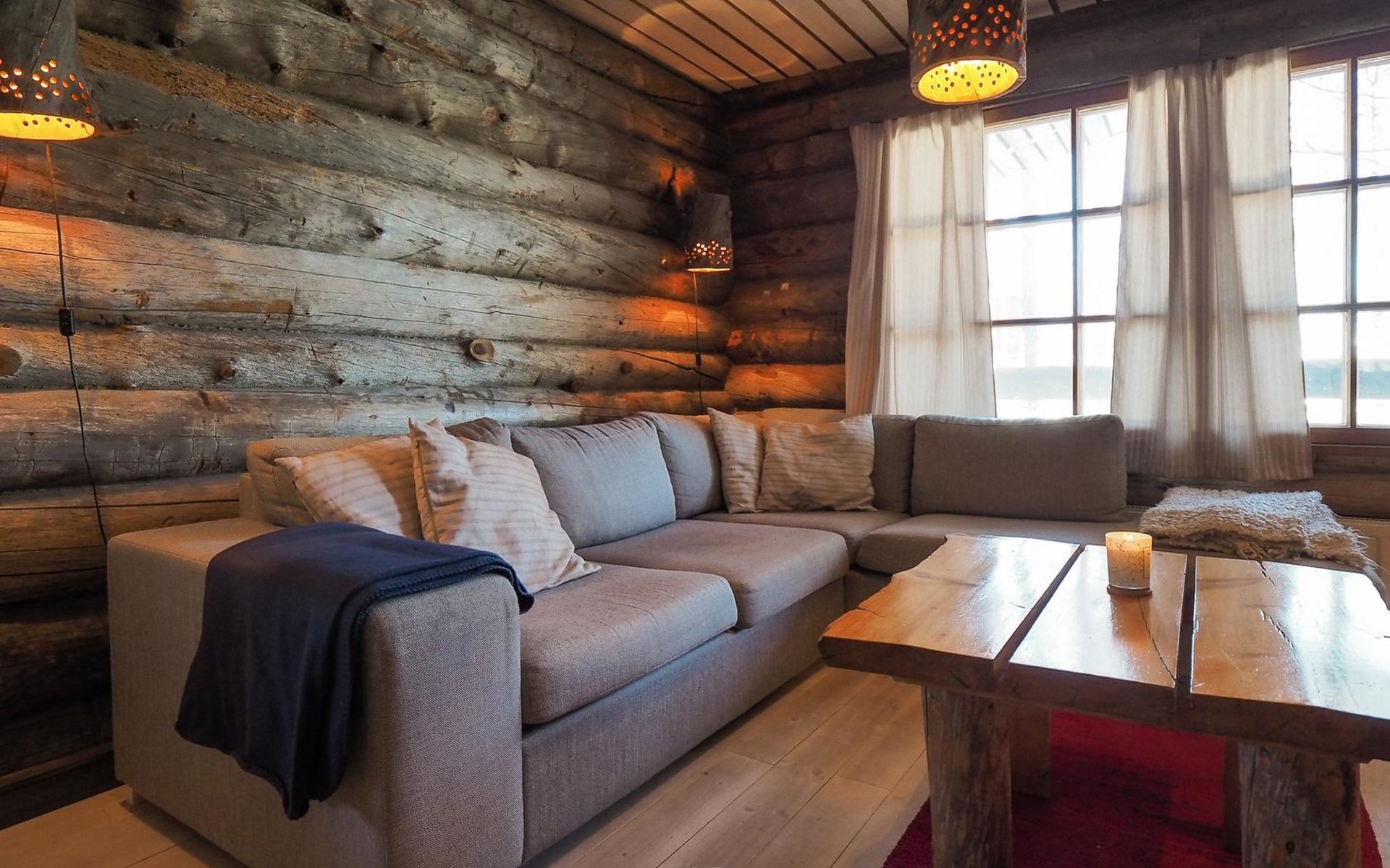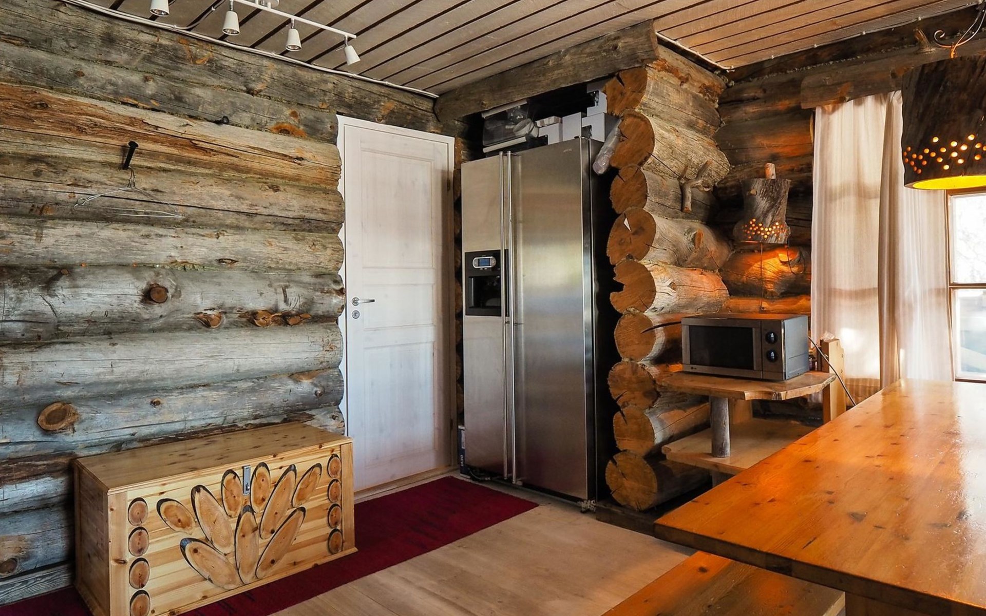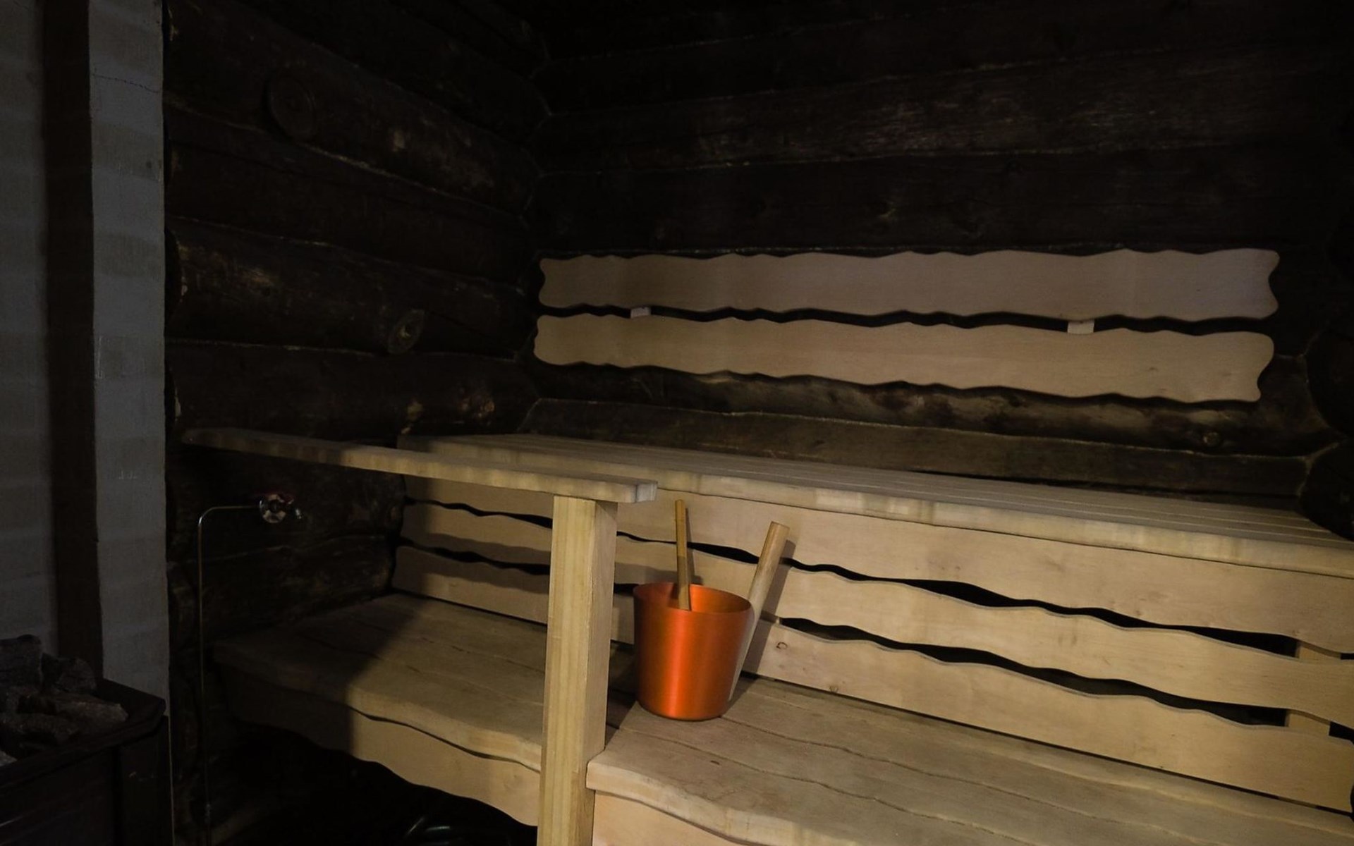 Kelo log cabin, built in 1990. The cabin has three bedrooms, two of them with a bunk bed (lower bed 160 cm, upper bed 140 cm wide), the third with a double bed (140 cm). Living room kitchen, sauna (wood sauna stove), washroom/WC and covered terrace.